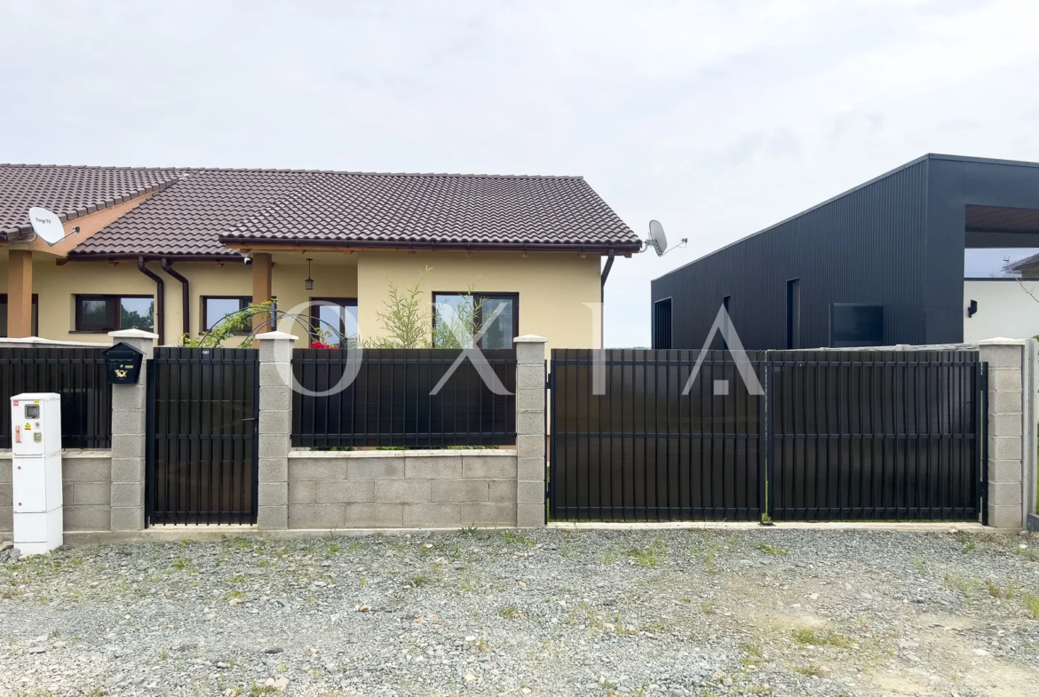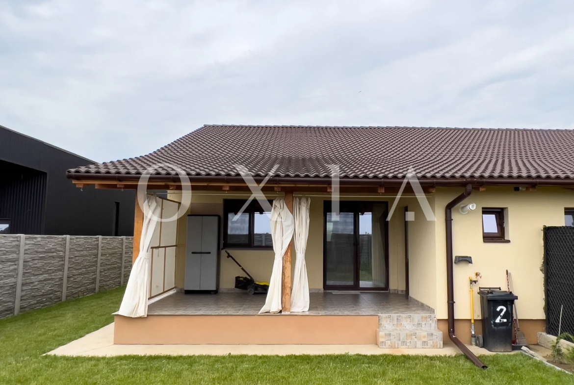 OXIA prezinta in exclusivitate spre vanzare 1/2 duplex pe un singur nivel, in Sag ( zona Manastire ), cu suprafata terenului de 333 mp, suprafata construita de 90 mp, suprafata utila de 73 mp + terasa acoperita de 15 mp, compartimentat astfel: