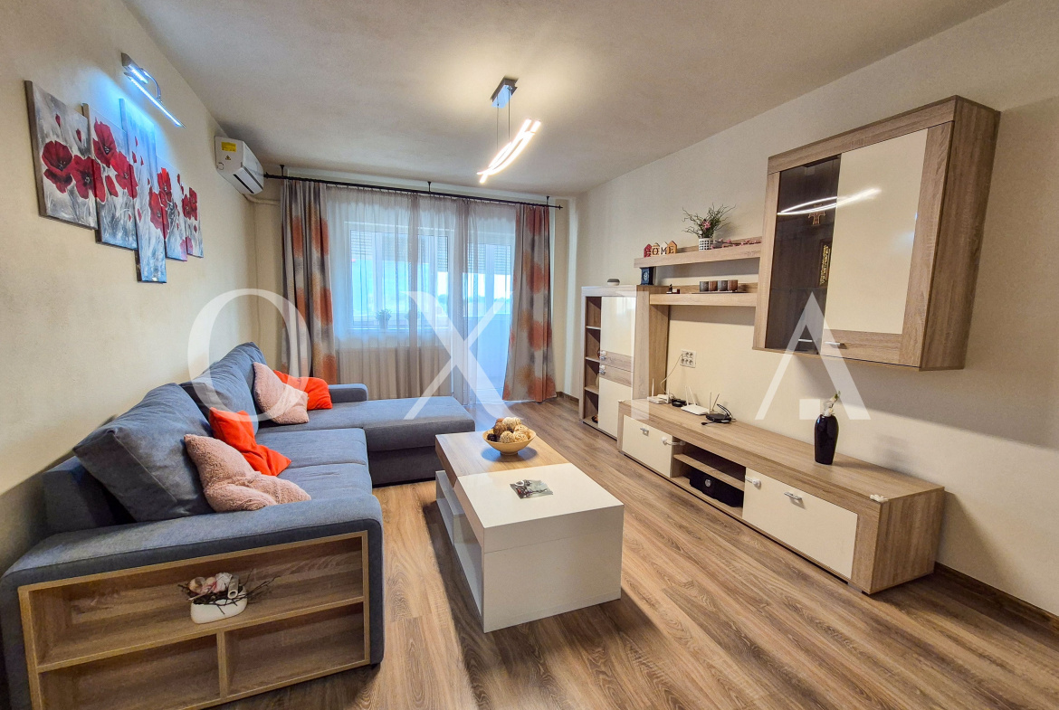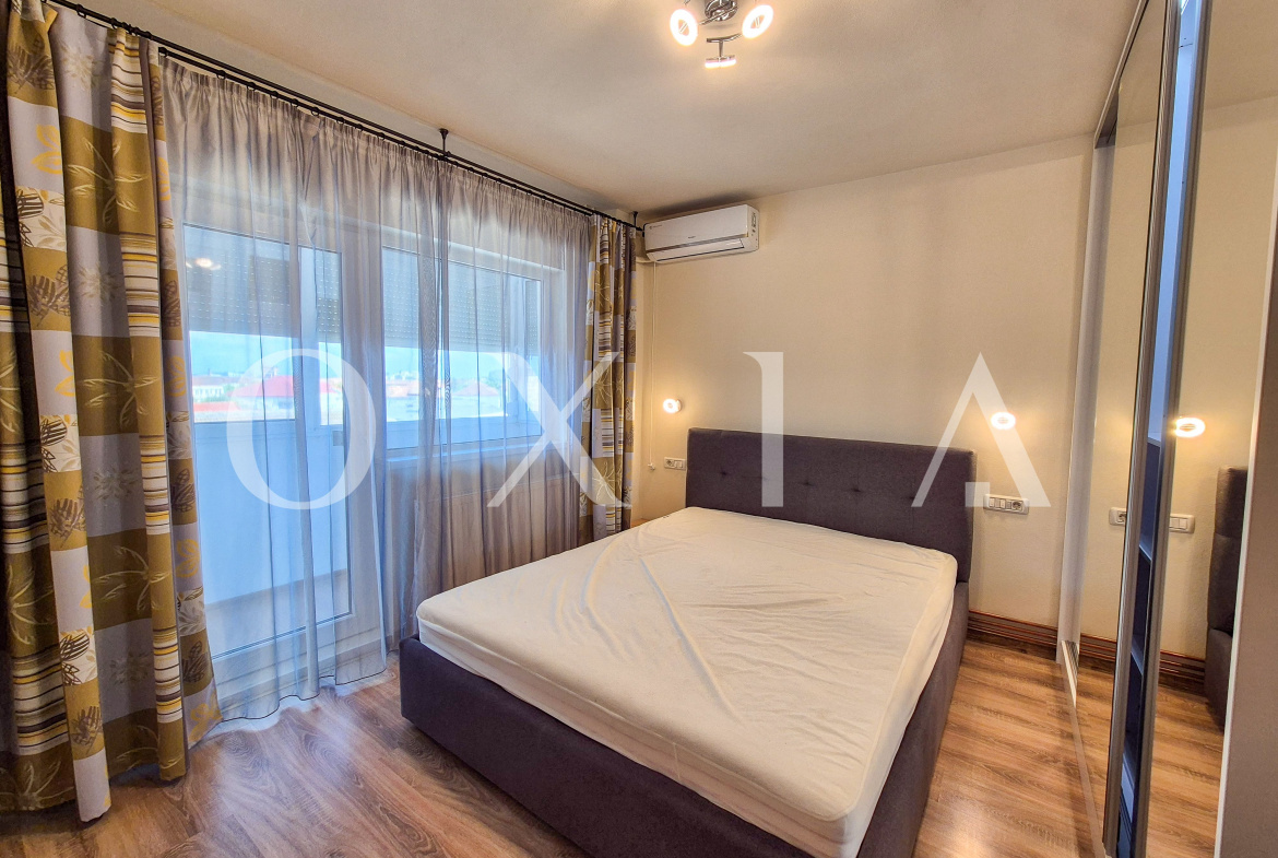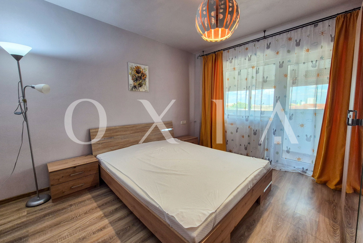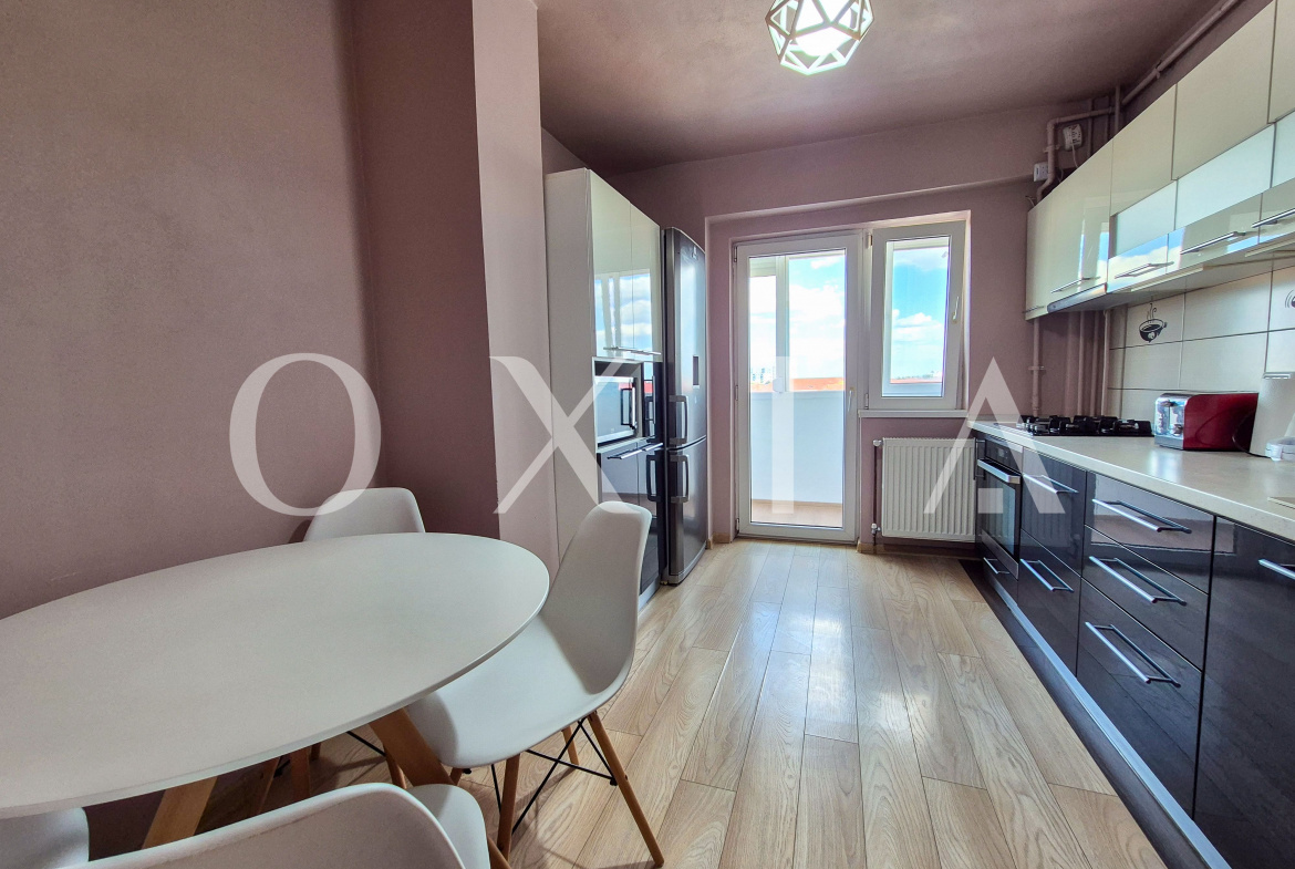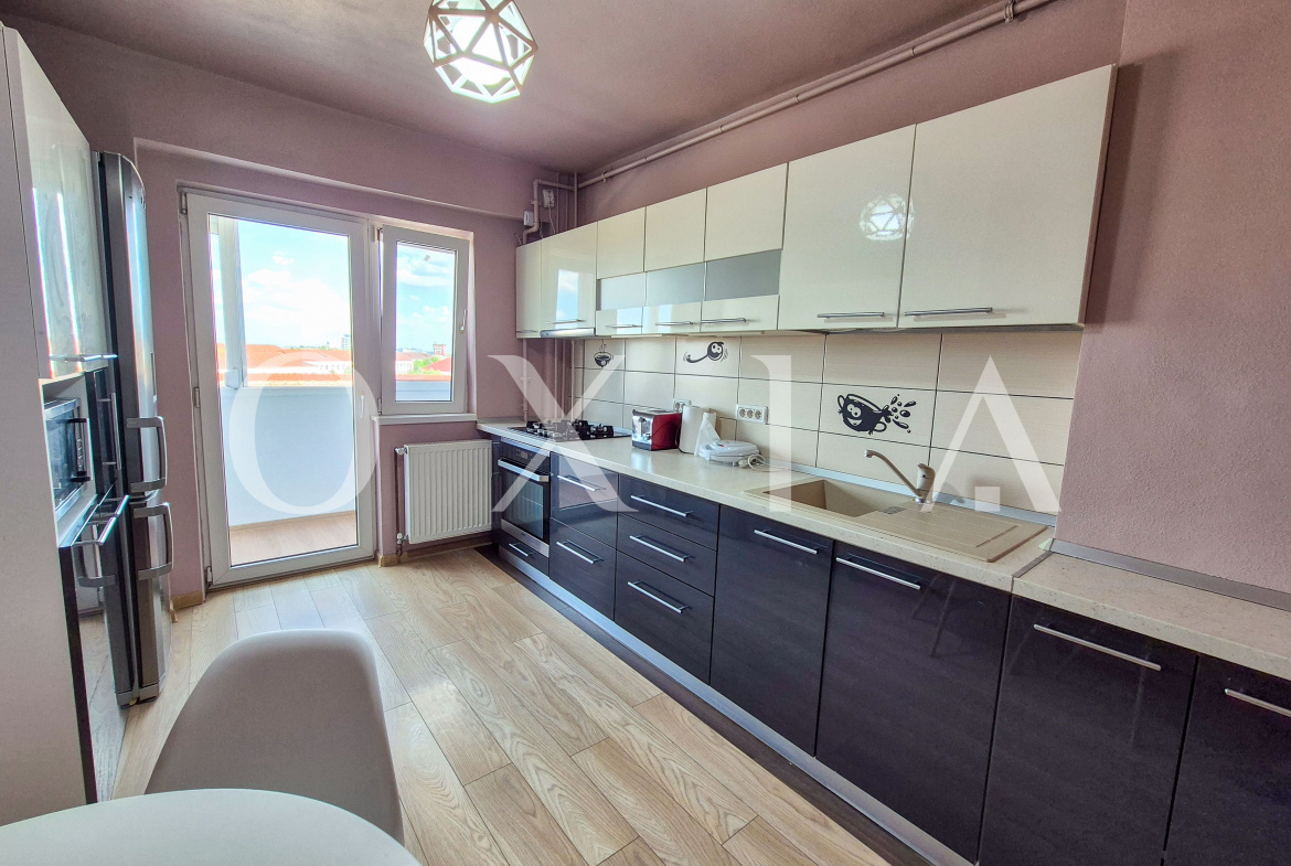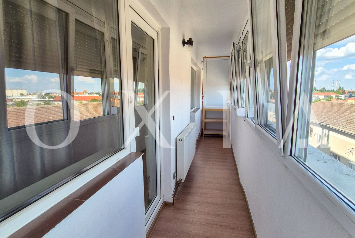 OXIA prezinta spre inchiriere apartament cu 3 camere, situat in Timisoara, zona Complexul Studentesc, strada Corneliu Coposu, la etajul 6/8 cu ascensor, decomandat, cu suprafata de 75 mp utili + balcon accesibil din toate incaperile de 12 mp, compartimentat astfel: