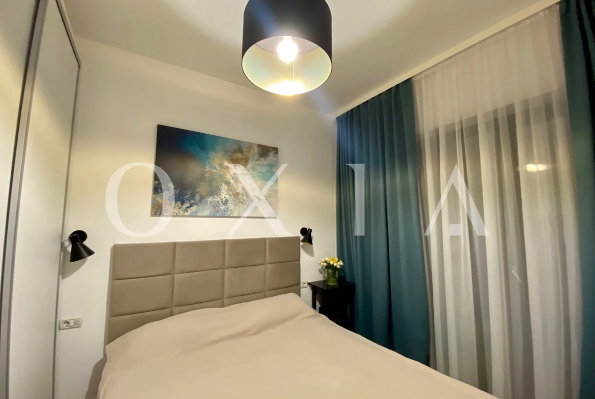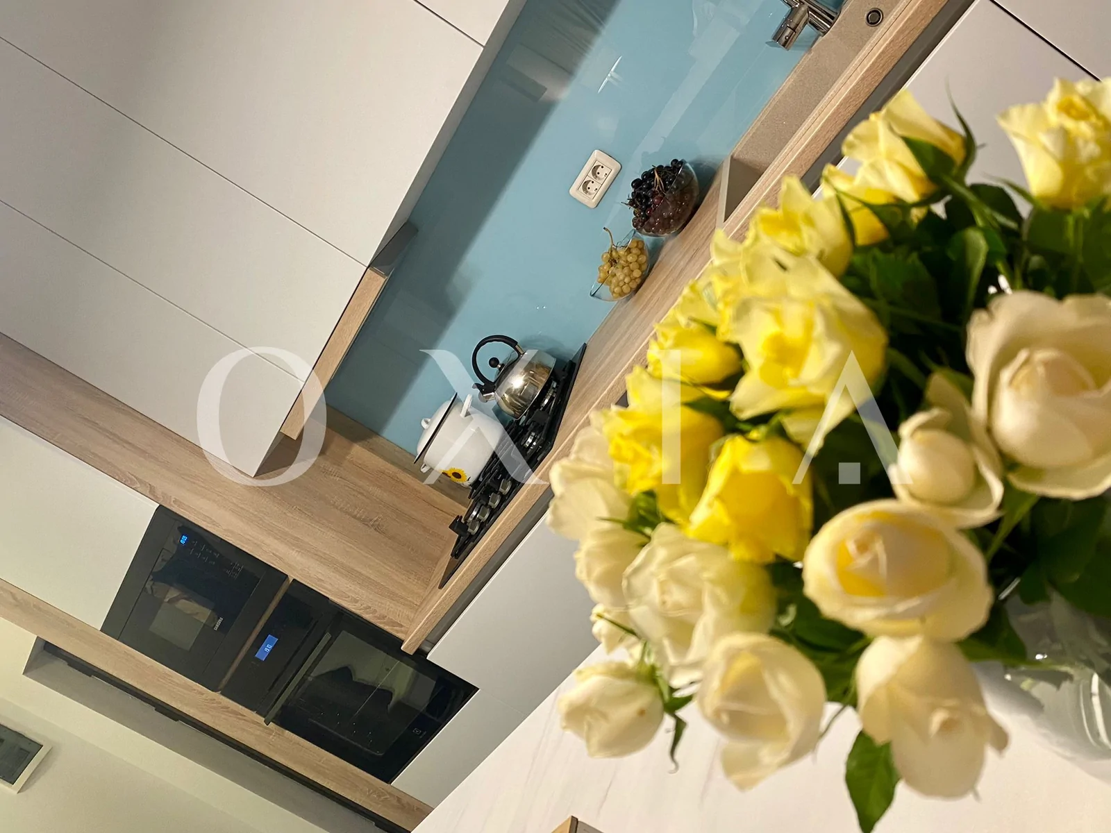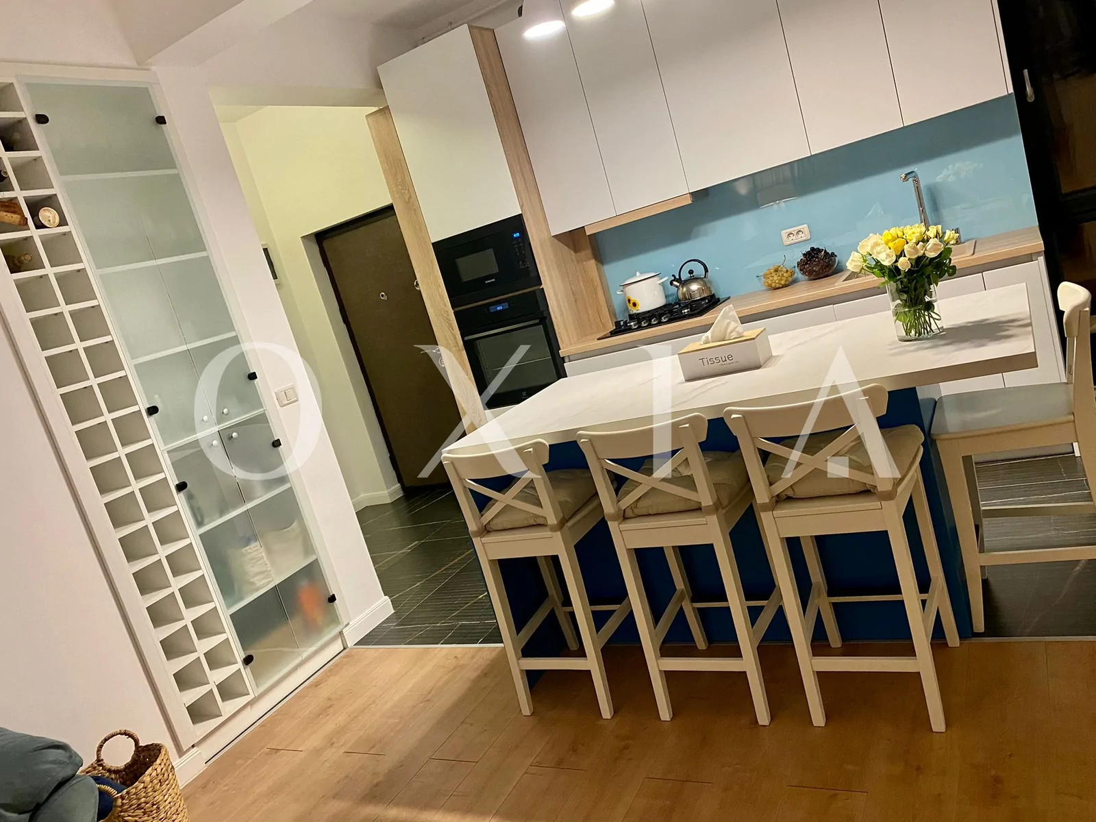 Aceasta proprietate se afla la prima inchiriere si impresioneaza prin amenajarile moderne, mobilierul realizat la comanda din MDF vopsit si dotarile de inalta calitate, inclusiv electrocasnice din gama premium.