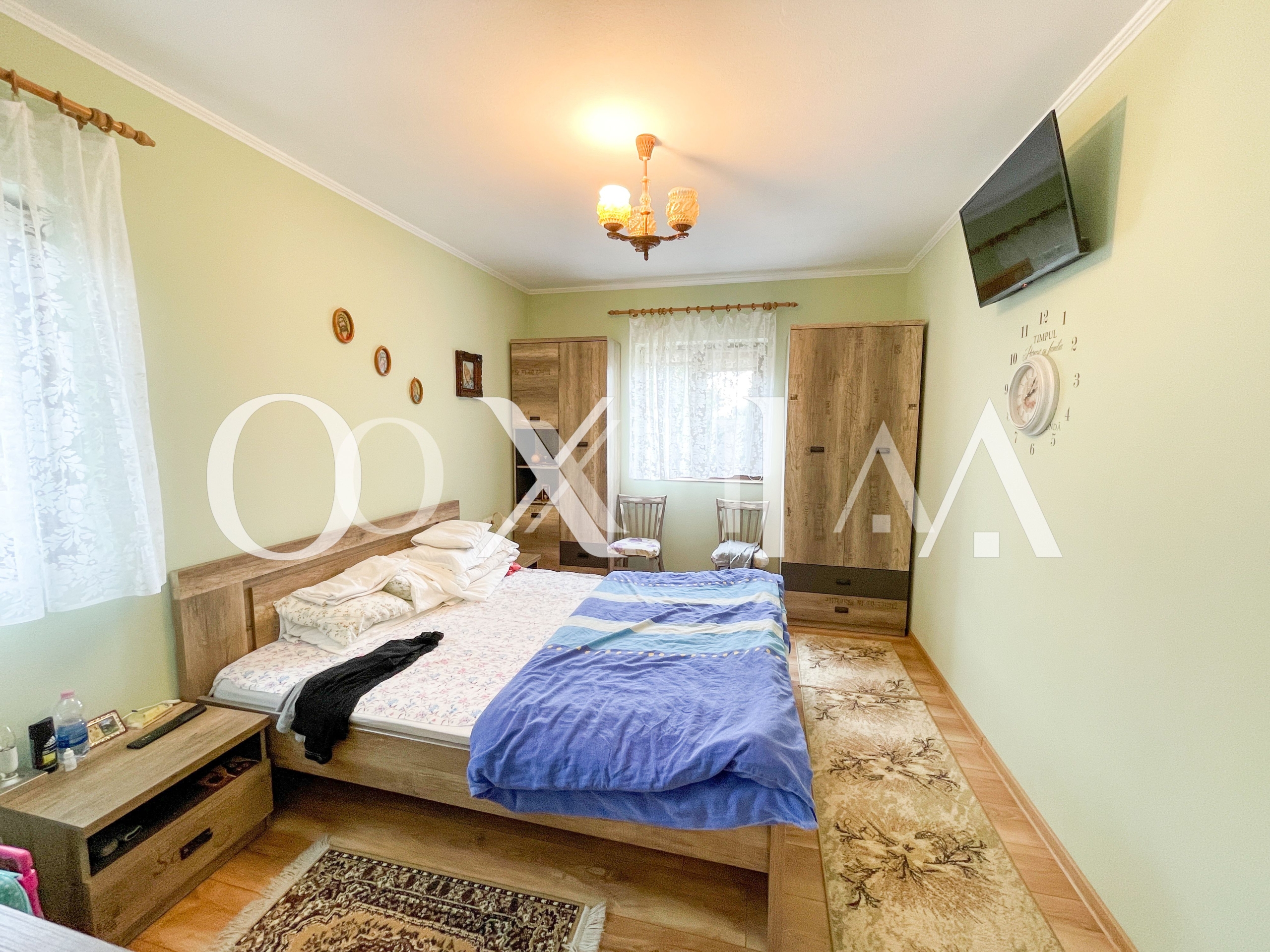 PARTER: 1 dormitor, bucatarie, living foarte mare, baie, camara, terasa acoperita.