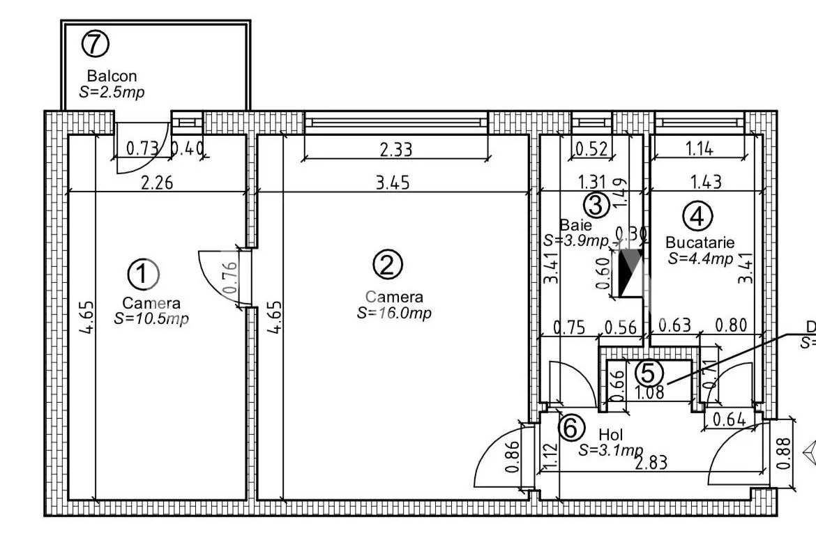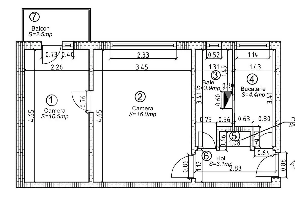 - Suprafata balcoane 2.5 mp