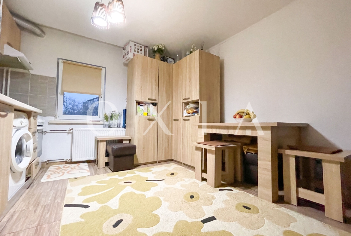 OXIA prezinta spre vanzare apartament cu 2 camere in Timisoara, zona Dambovita, strada Transilvania, situat la parterul inalt al unui imobil cu 4 etaje + Mansarda, semidecomandat, cu suprafata de aproximativ 55 MP utili, compartimentat astfel: