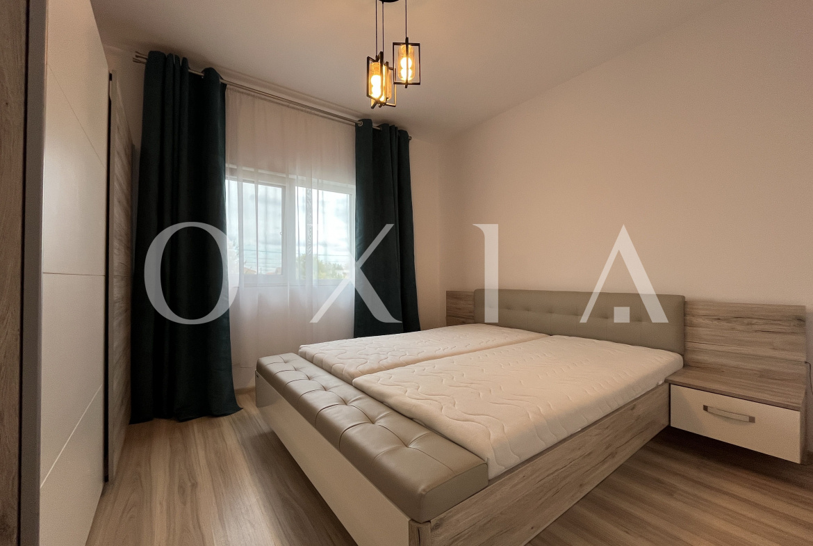 OXIA prezinta spre inchiriere apartament cu 3 camere, situat in Dumbravita, la etajul 1 in imobil cu regim P+E, decomandat, cu suprafata de 65 mp utili+6mp balcon, compartimentat astfel: