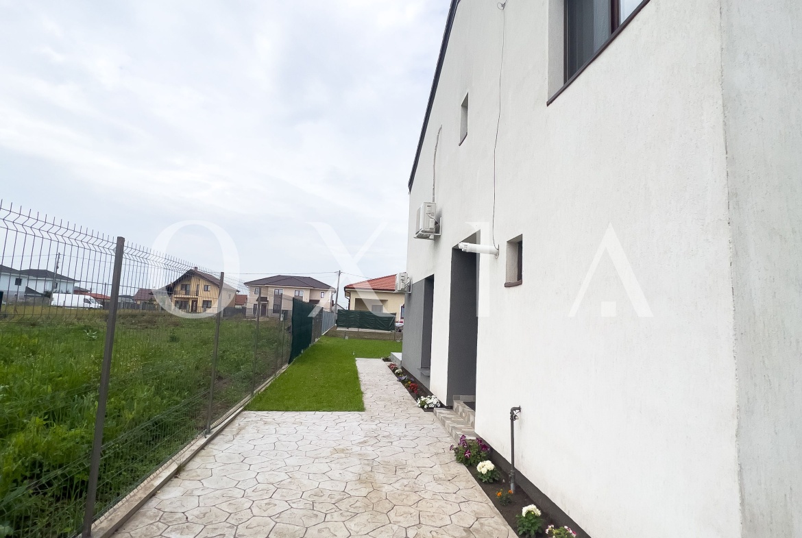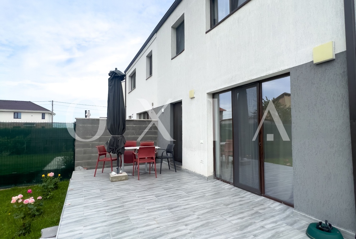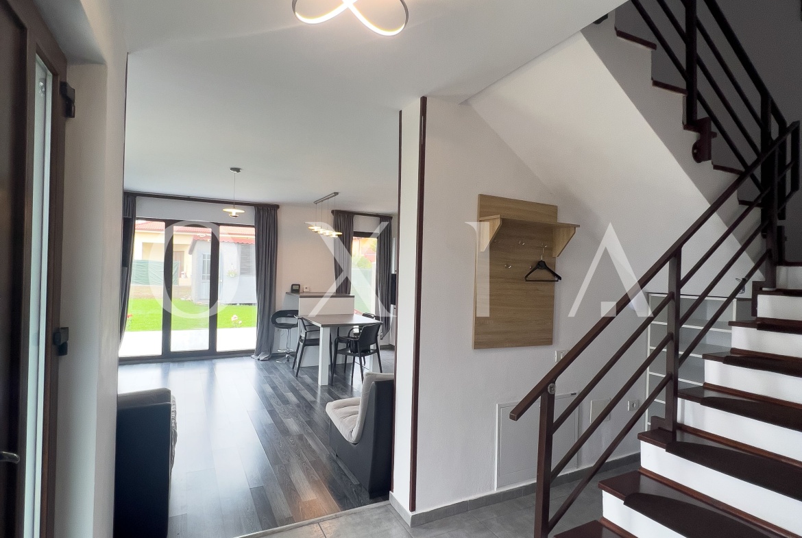 OXIA prezinta spre inchiriere 1/2 Duplex situat in Dumbravita, zona Cora, imobil P+M, cu suprafata de 107 MP utili, cea a terenului de 360 MP, compartimentat astfel: