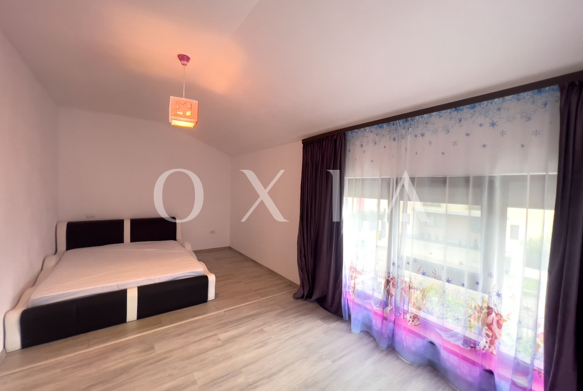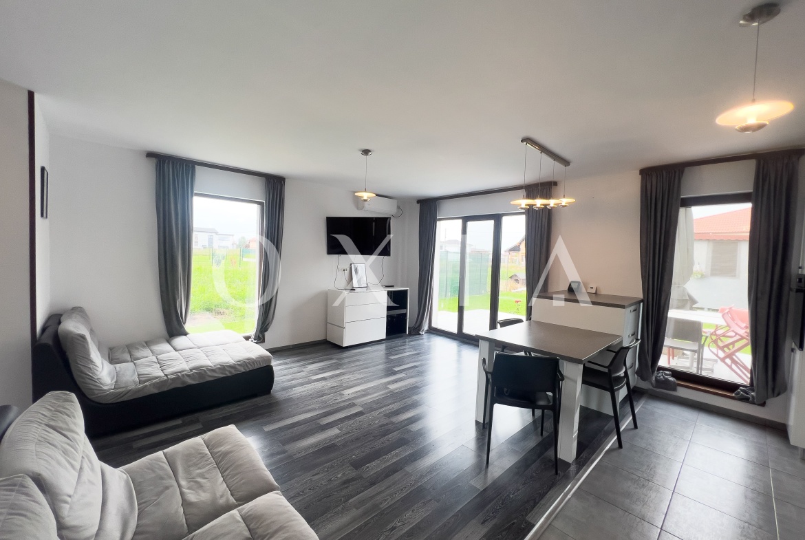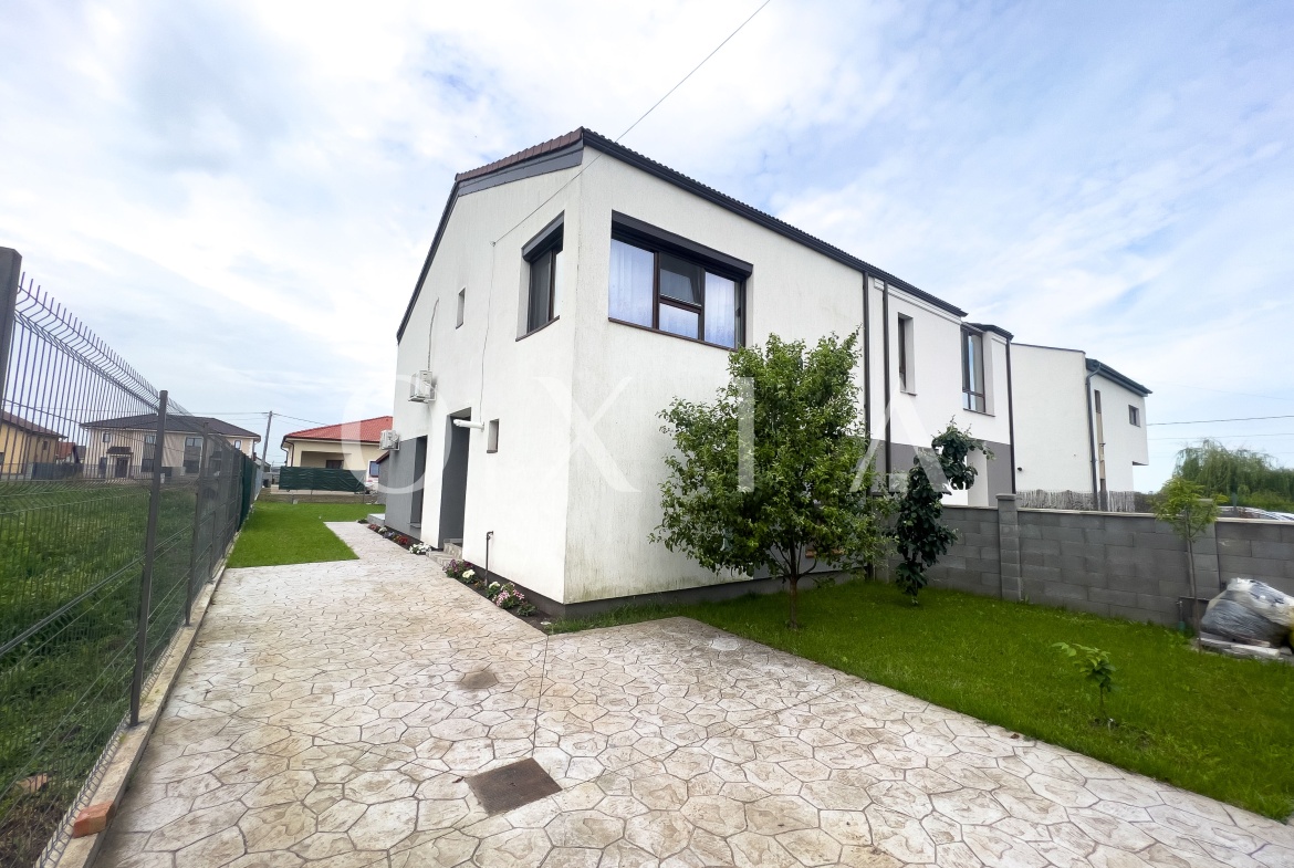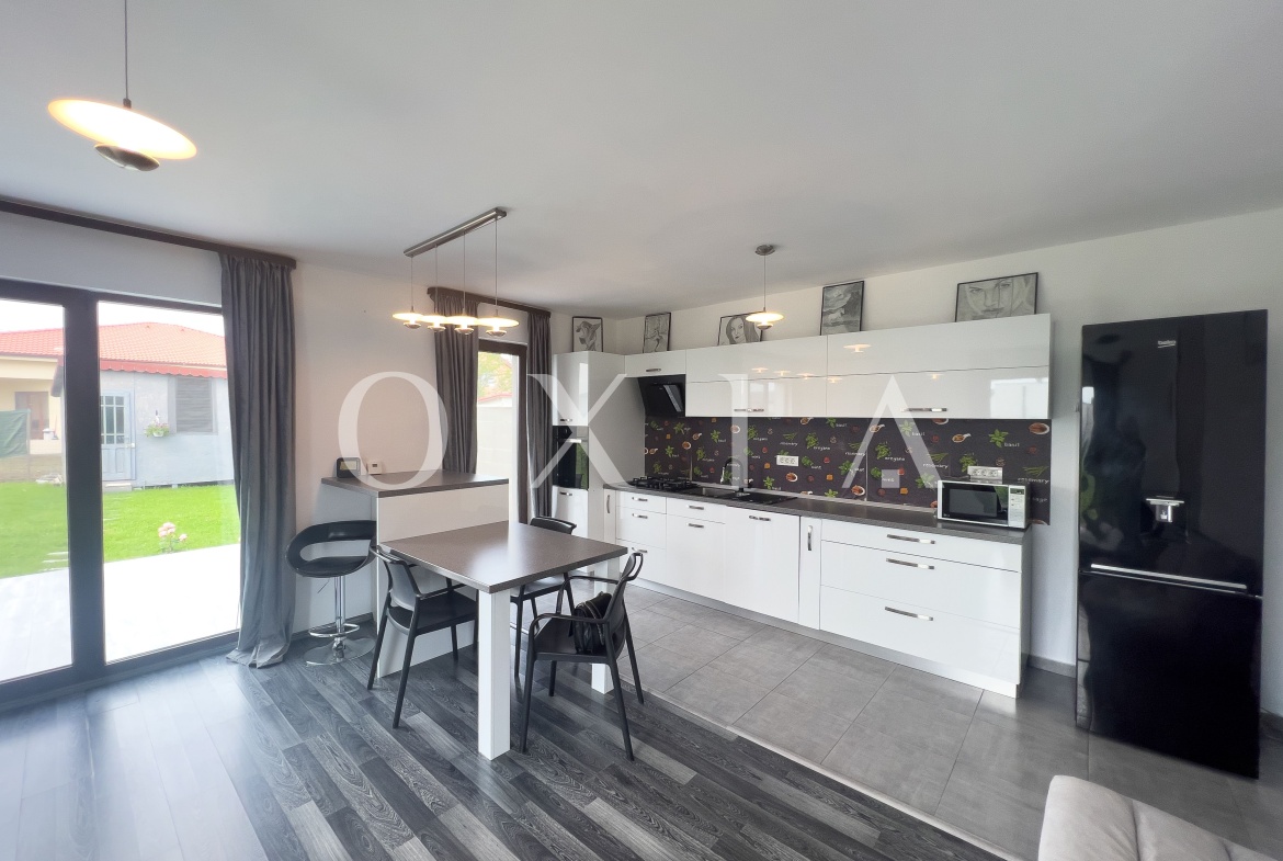 OXIA prezinta spre inchiriere 1/2 Duplex situat in Dumbravita, zona Cora, imobil P+M, cu suprafata de 107 MP utili, cea a terenului de 360 MP, compartimentat astfel: