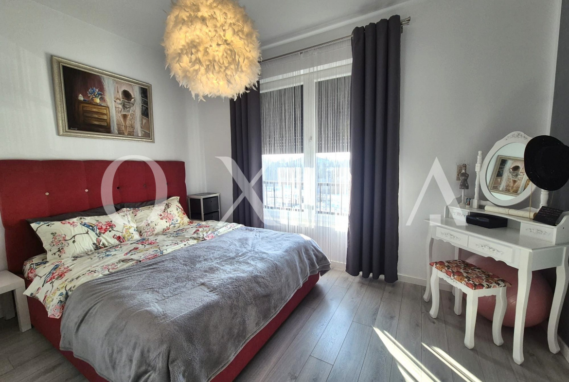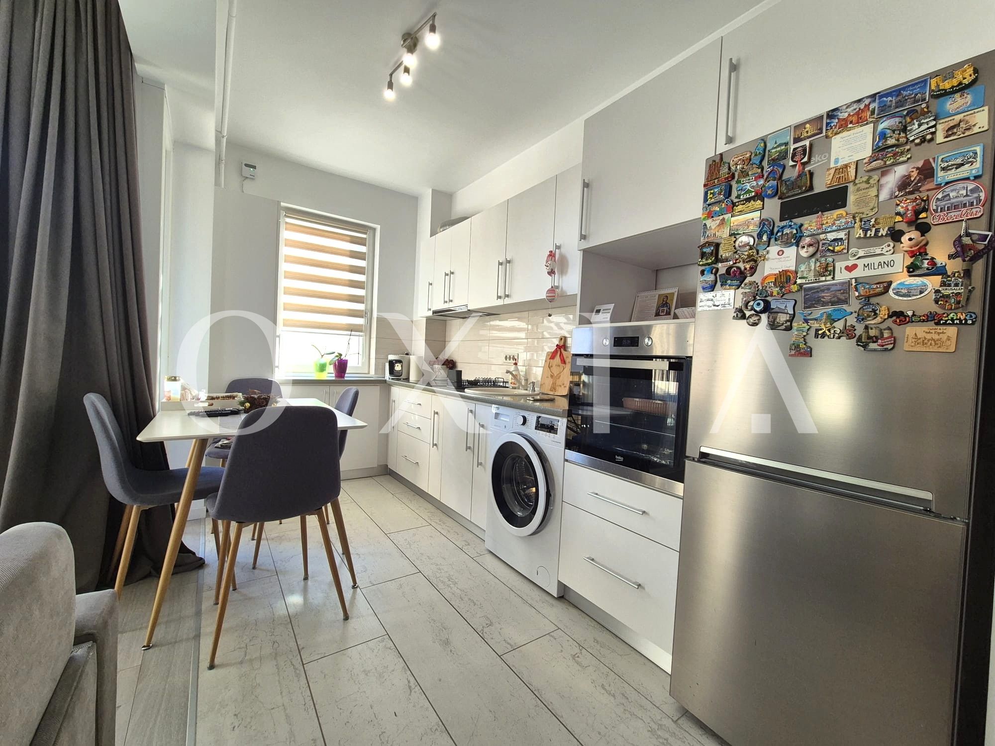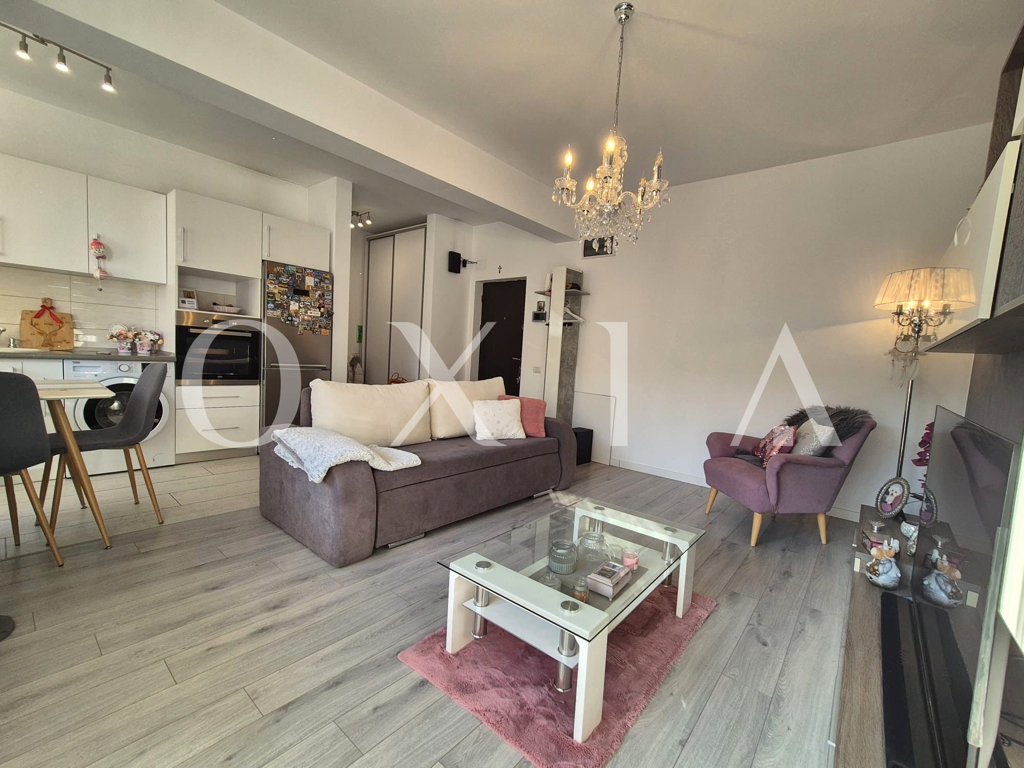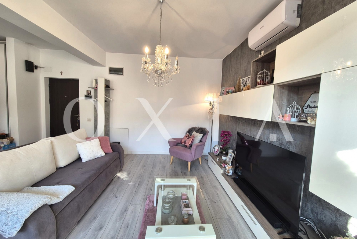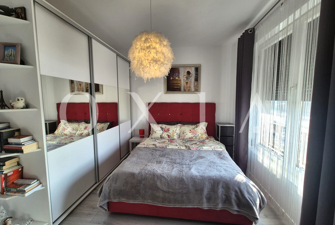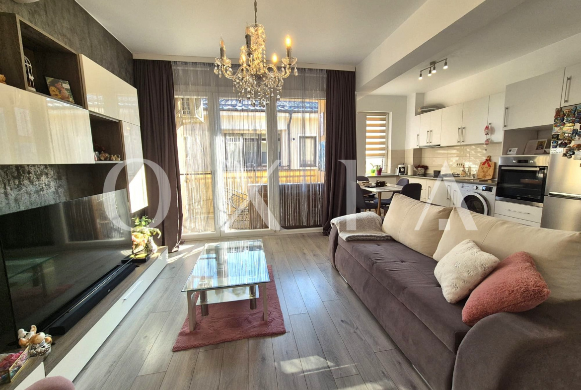 OXIA The Real Estate Agency prezinta spre vanzare apartament cu 2 camere, situat in Dumbravita, zona Decathlon, la etajul 2/2 + Pod, imobil din 2019, semidecomandat, cu suprafata de 42 mp utili + balcon de 6 mp, compartimentat astfel: