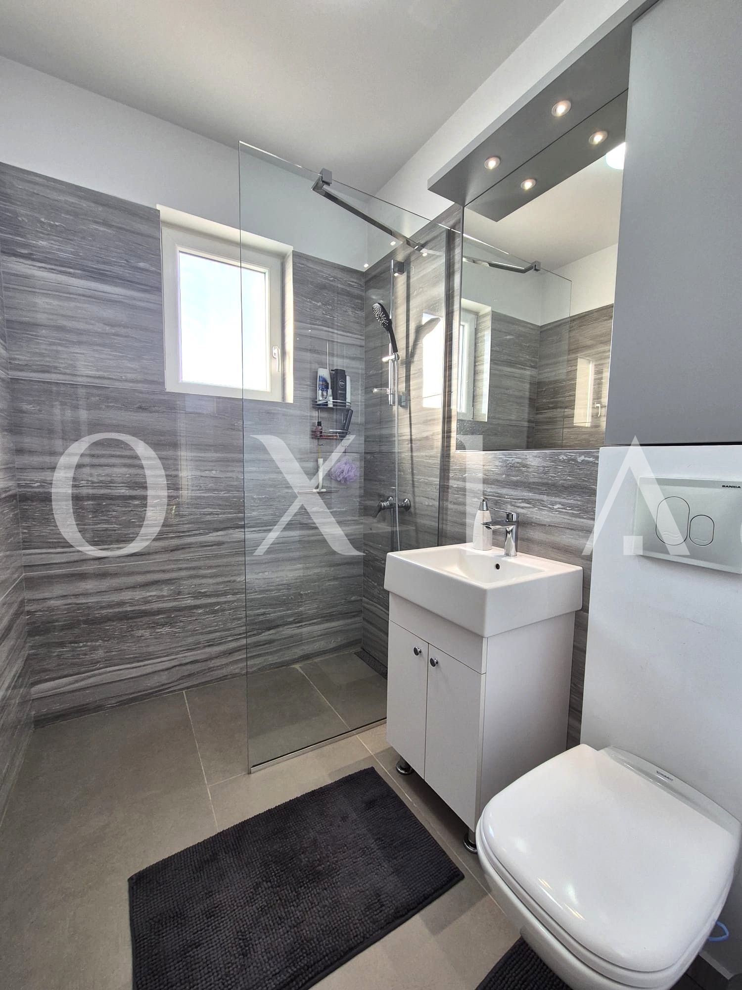 – Baie cu cabina de dus si geam pentru aerisire naturala