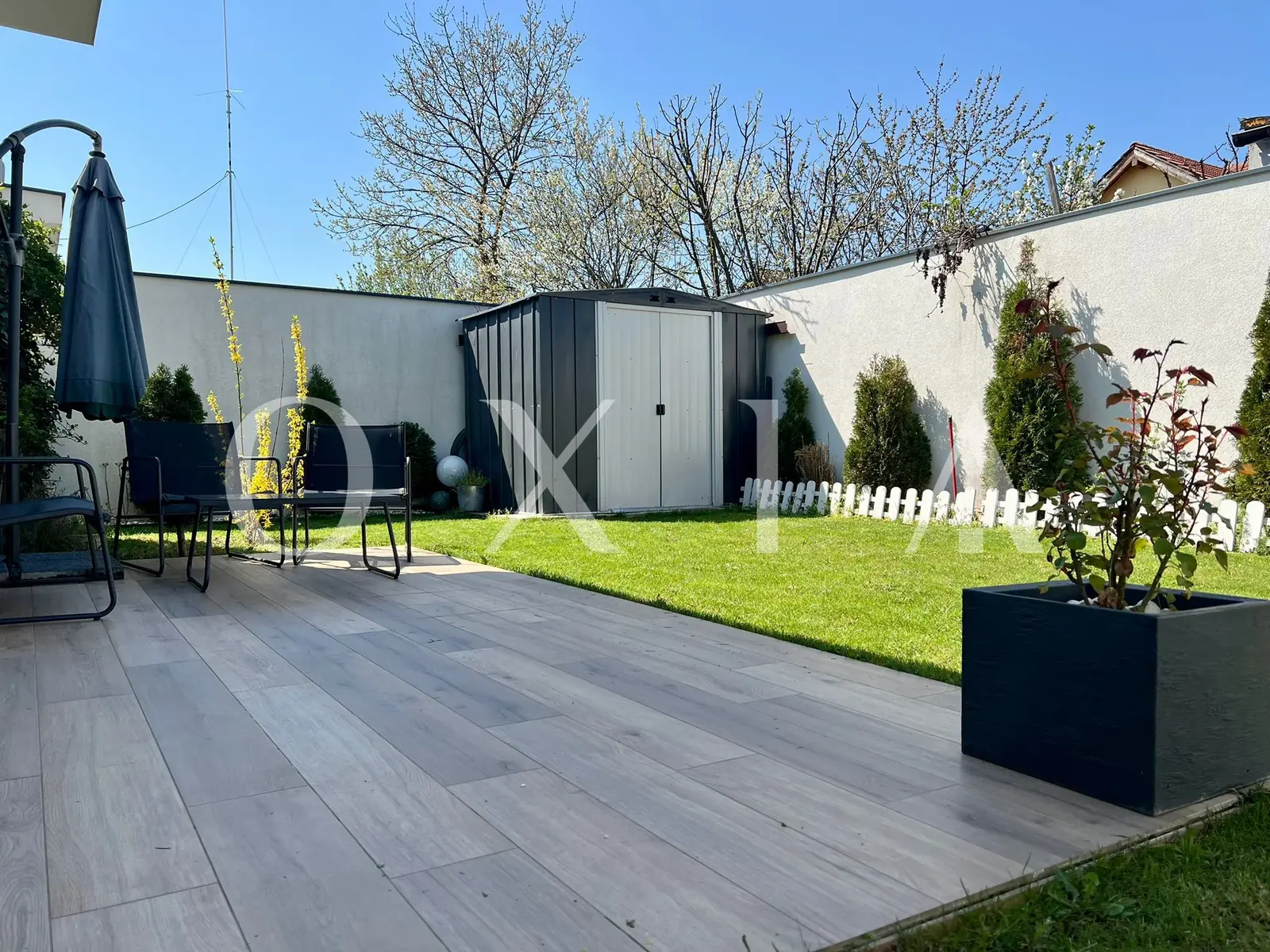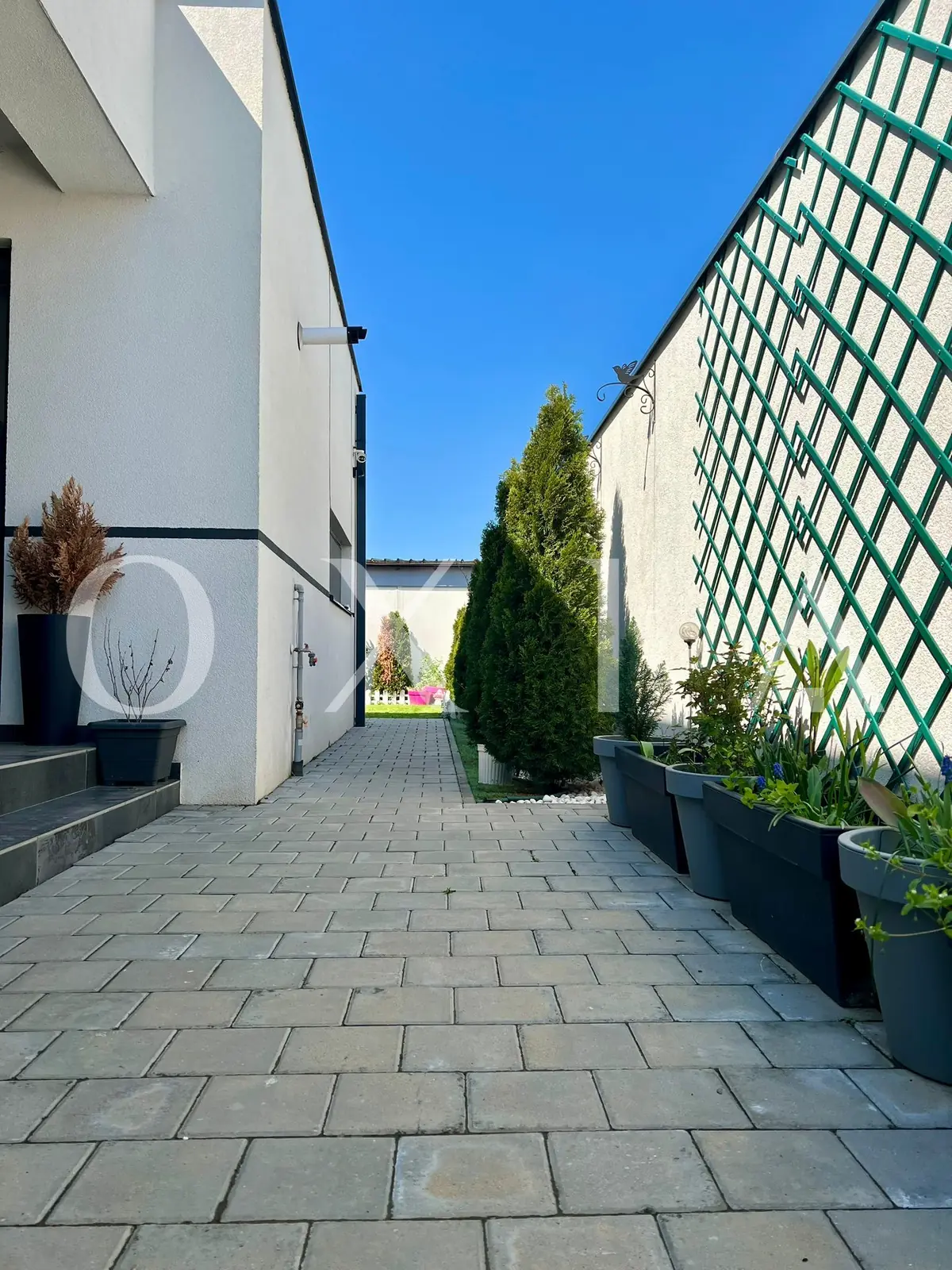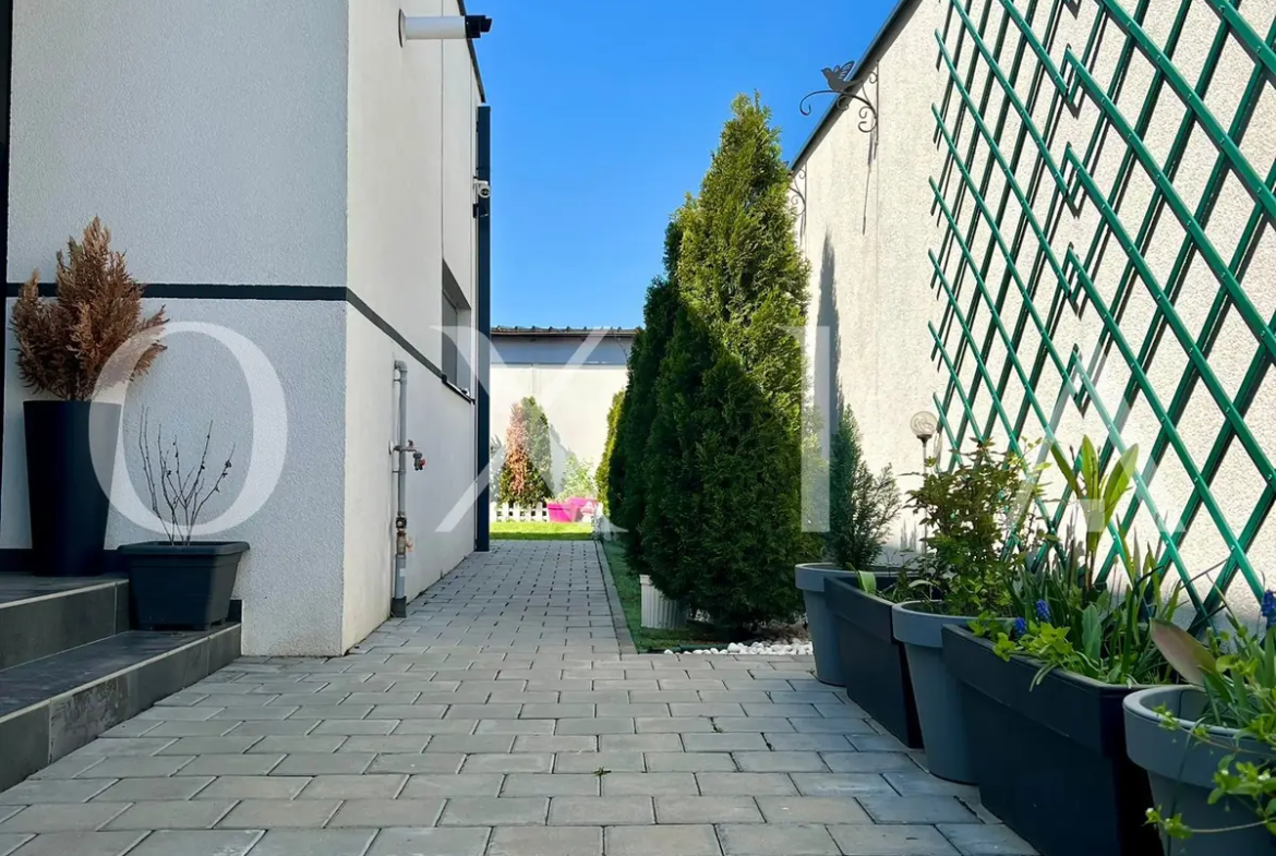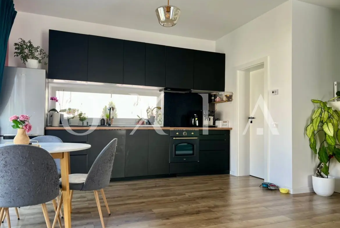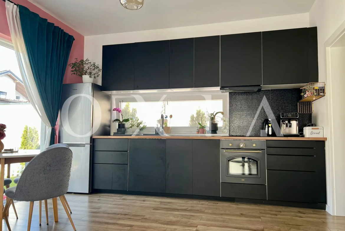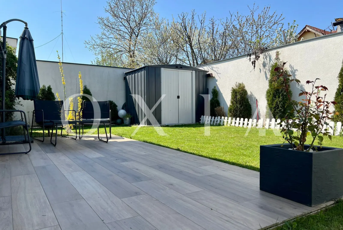 Este o locuinta construita in 2022, parte dintr-un duplex modern, cu regim de inaltime parter, amplasata pe un teren de 300 mp si cu o suprafata utila de 83 mp , fiind compartimentat astfel: