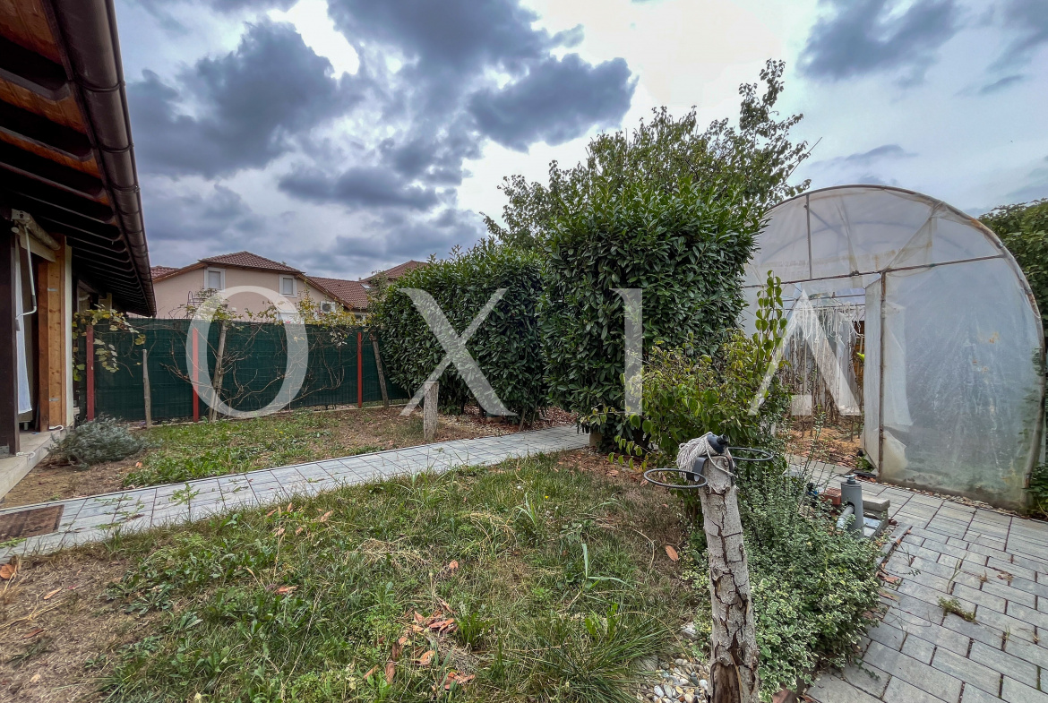 Spatiul exterior este amenajat, beneficiaza de o magazie pentru depozitare, o sera generoasa, sistem de irigatie , sistem de alarma, .