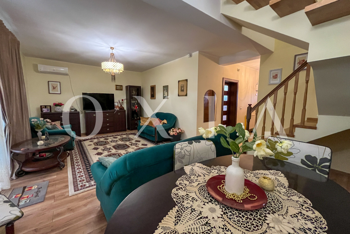 OXIA prezinta spre vanzare casa P+E situata in ansamblu rezidential (capat), in Dumbravita, zona Lac – Padure, cu suprafata terenului de 331 mp, suprafata utila de 113 MP + 15 MP terasa acoperita, compartimentata astfel: