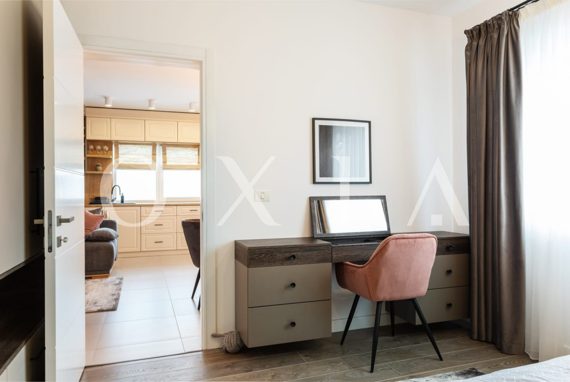 Apartamentul este amenajat integral de catre designer, cu atentie la detalii, finisaje premium si un concept modern, armonios, fiind pregatit pentru mutare imediata sau inchiriere.