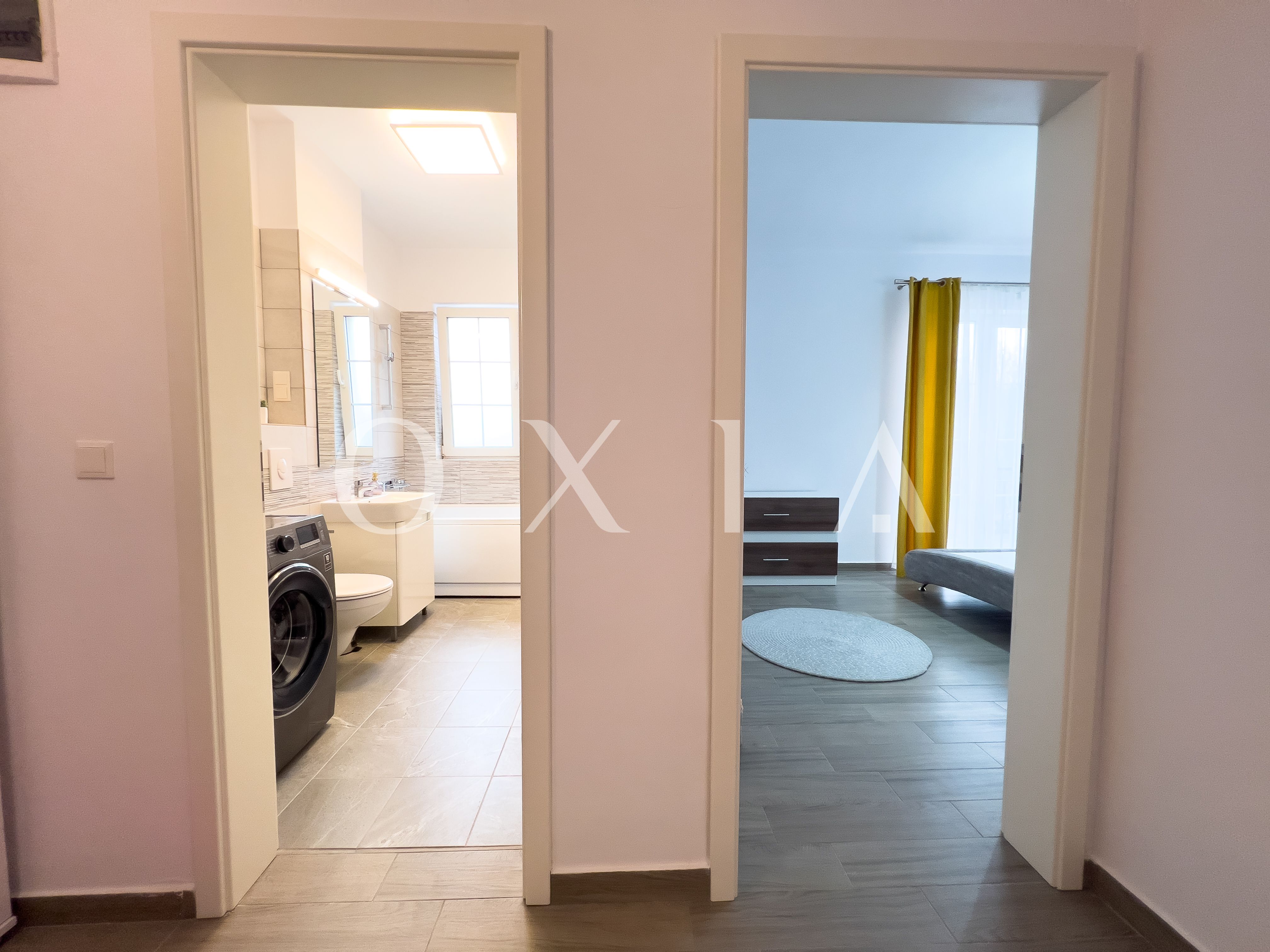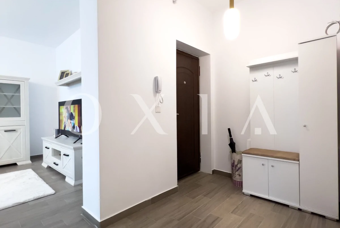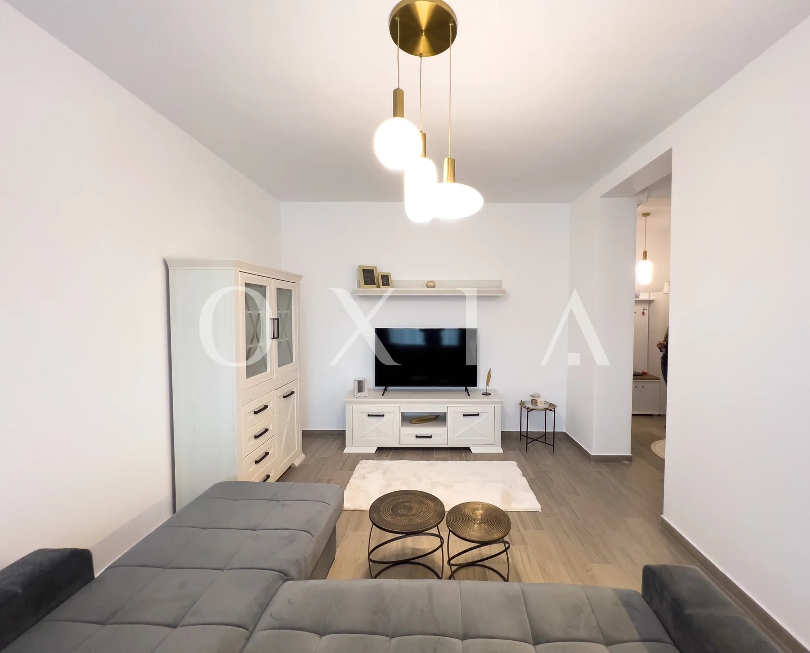 OXIA prezinta in exclusivitate spre inchiriere apartament cu 2 camere in Dumbravita, strada Tarcului, situat in imobil P+2E, la etajul 1, decomandat, cu suprafata de 52 MP utili + 8 MP terasa, compartimentat astfel: