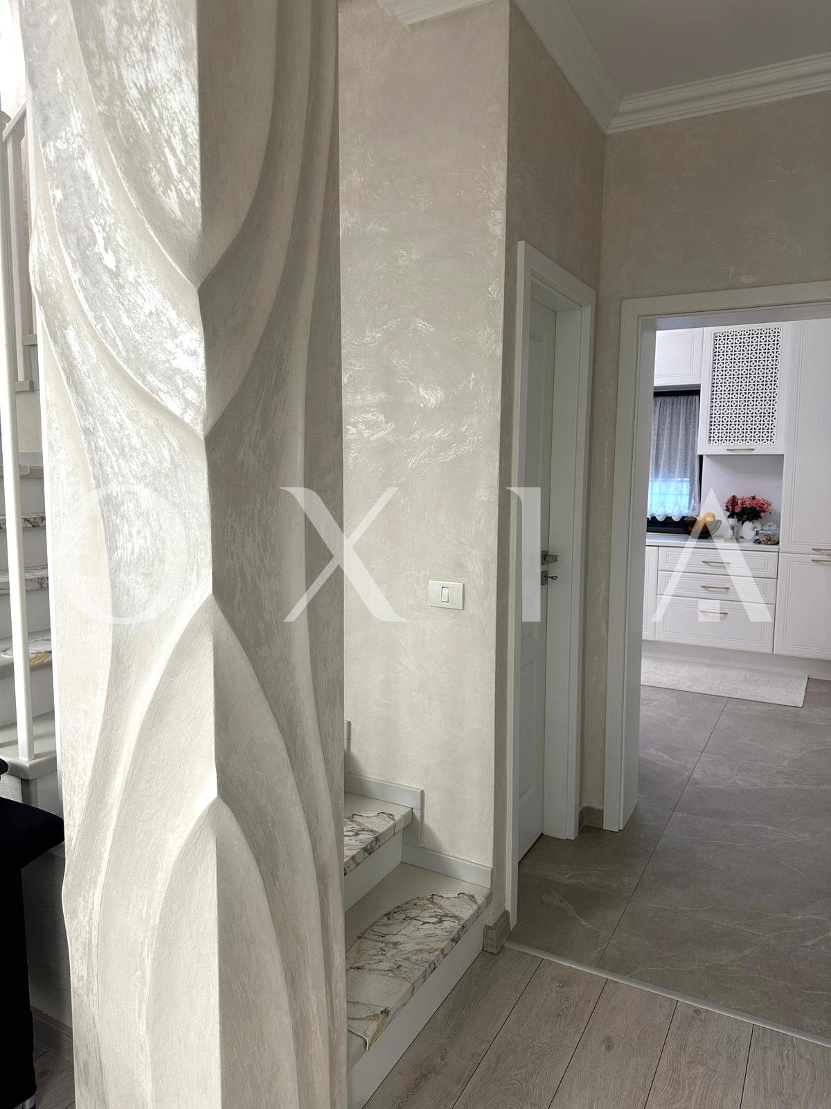 Casa beneficiaza de amenajari moderne: Usa intrare PVC, usi interioare celulare, ferestre PVC cu geam termopan tripan ,placi de gresie/faianta, scara din lemn masiv, etc.