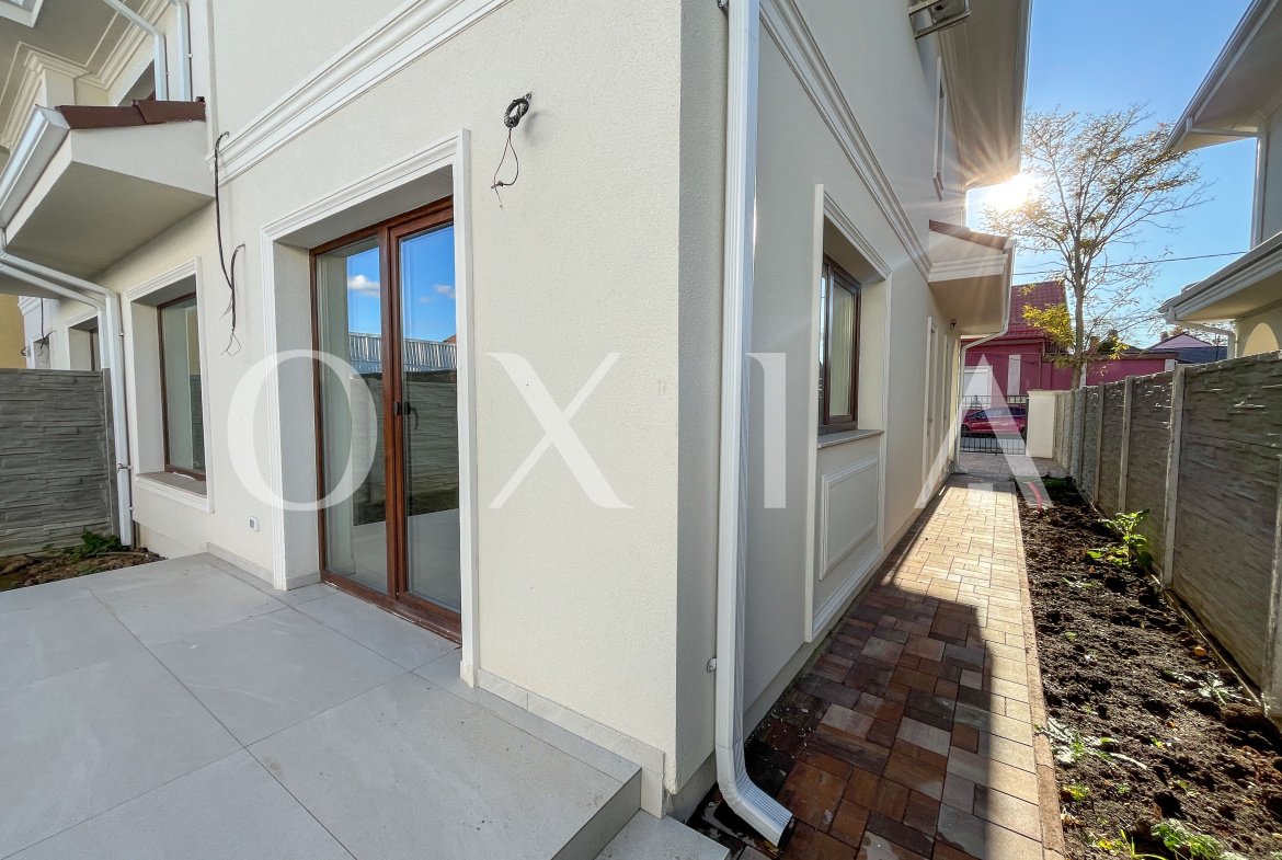 OXIA The Real Estate Agency prezinta spre vanzare casa in unitate tip dulpex cu regim de inaltime P+E , in Timisoara in apropiere de Alfa Center, cu suprafata terenului de 250 MP, suprafata utila de 114 MP + 10 MP terasa , compartimentata astfel: