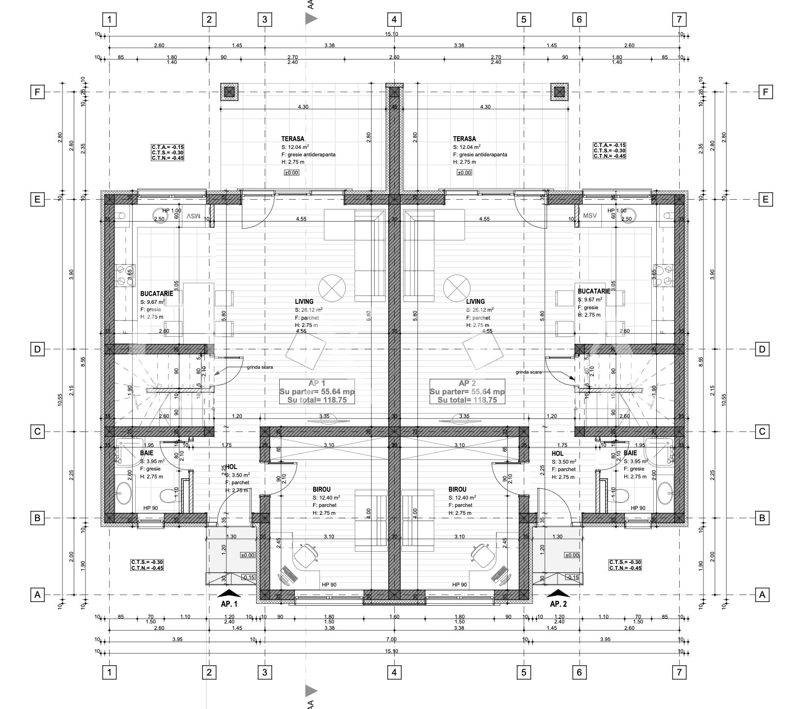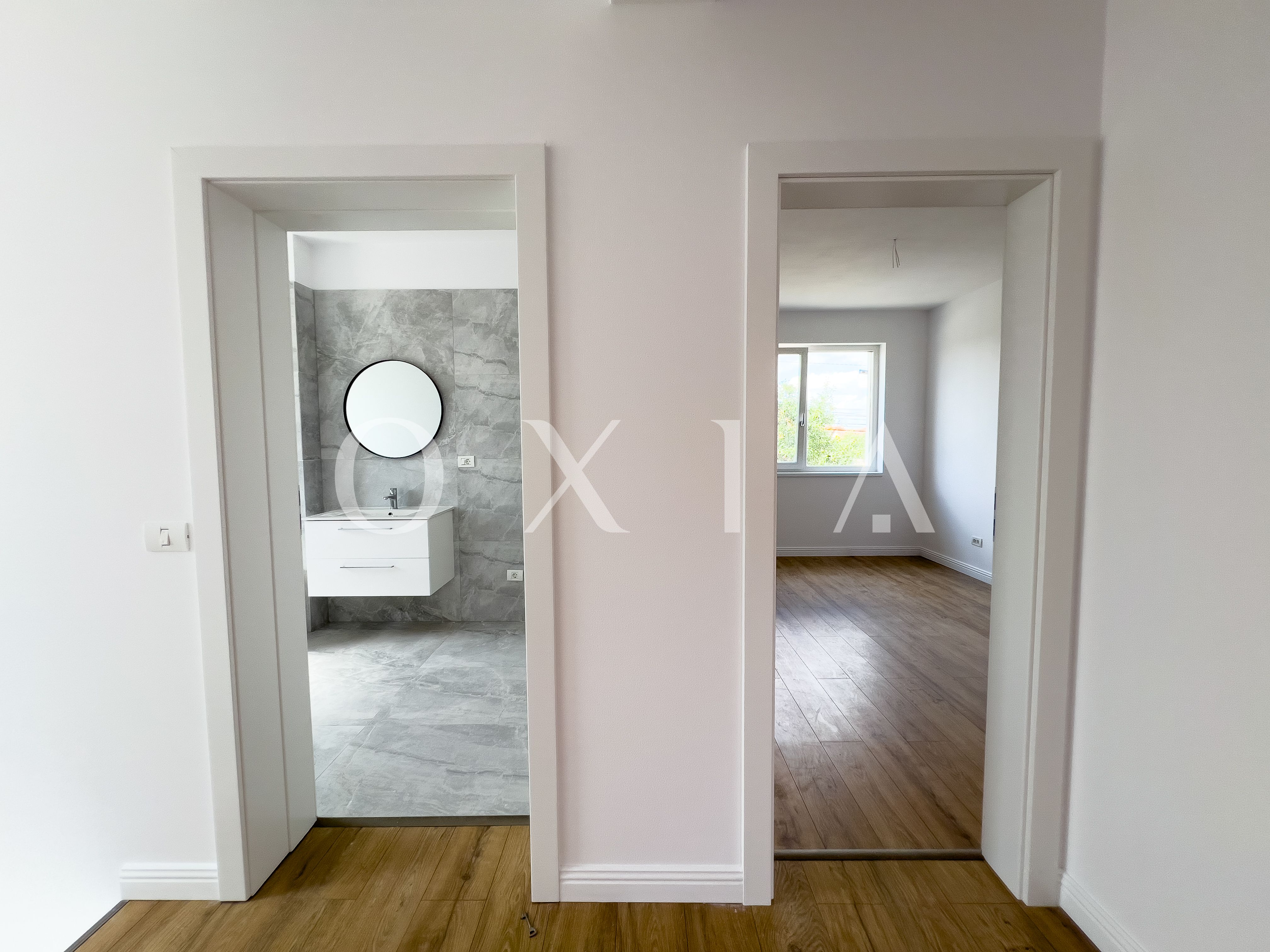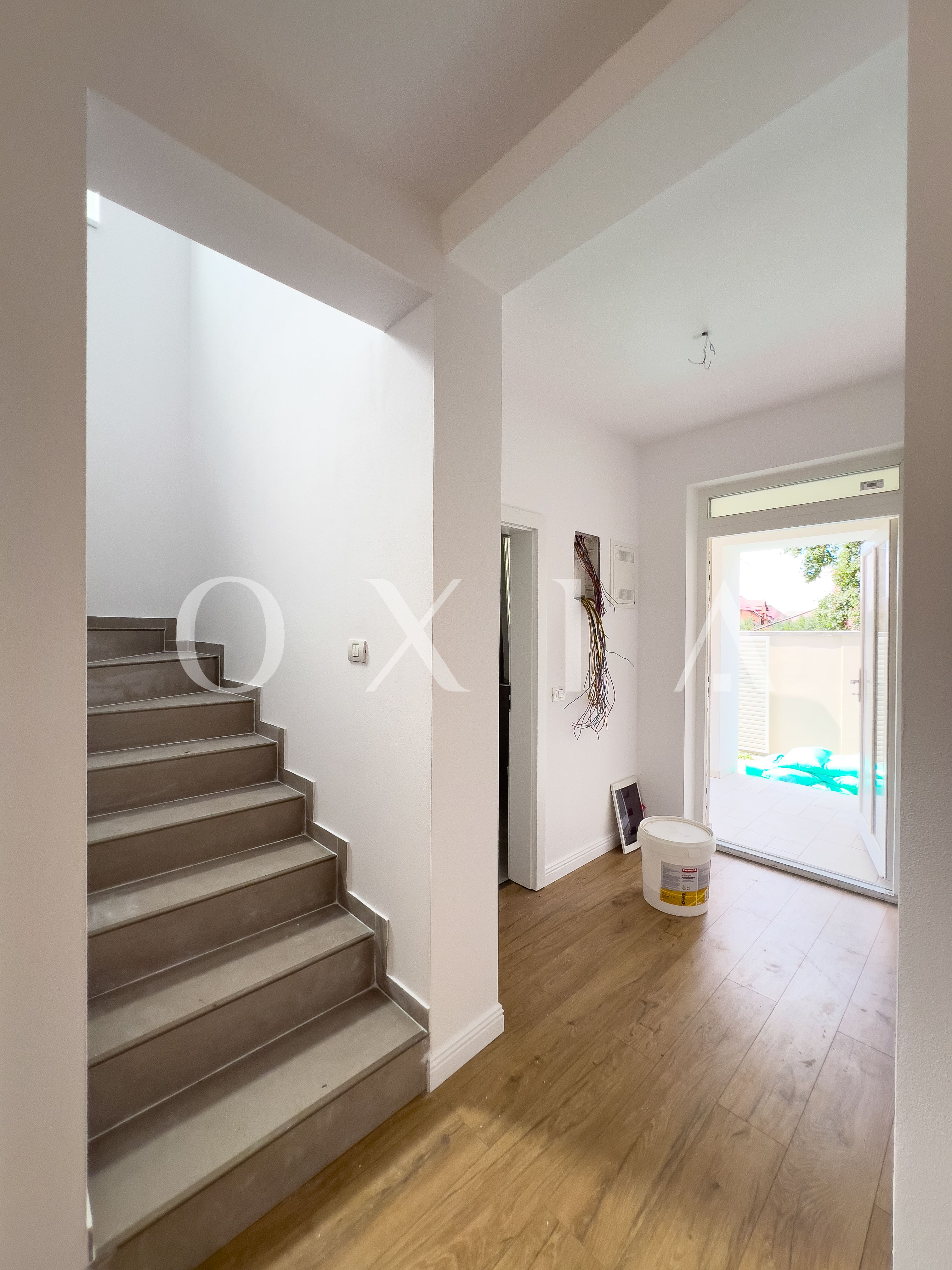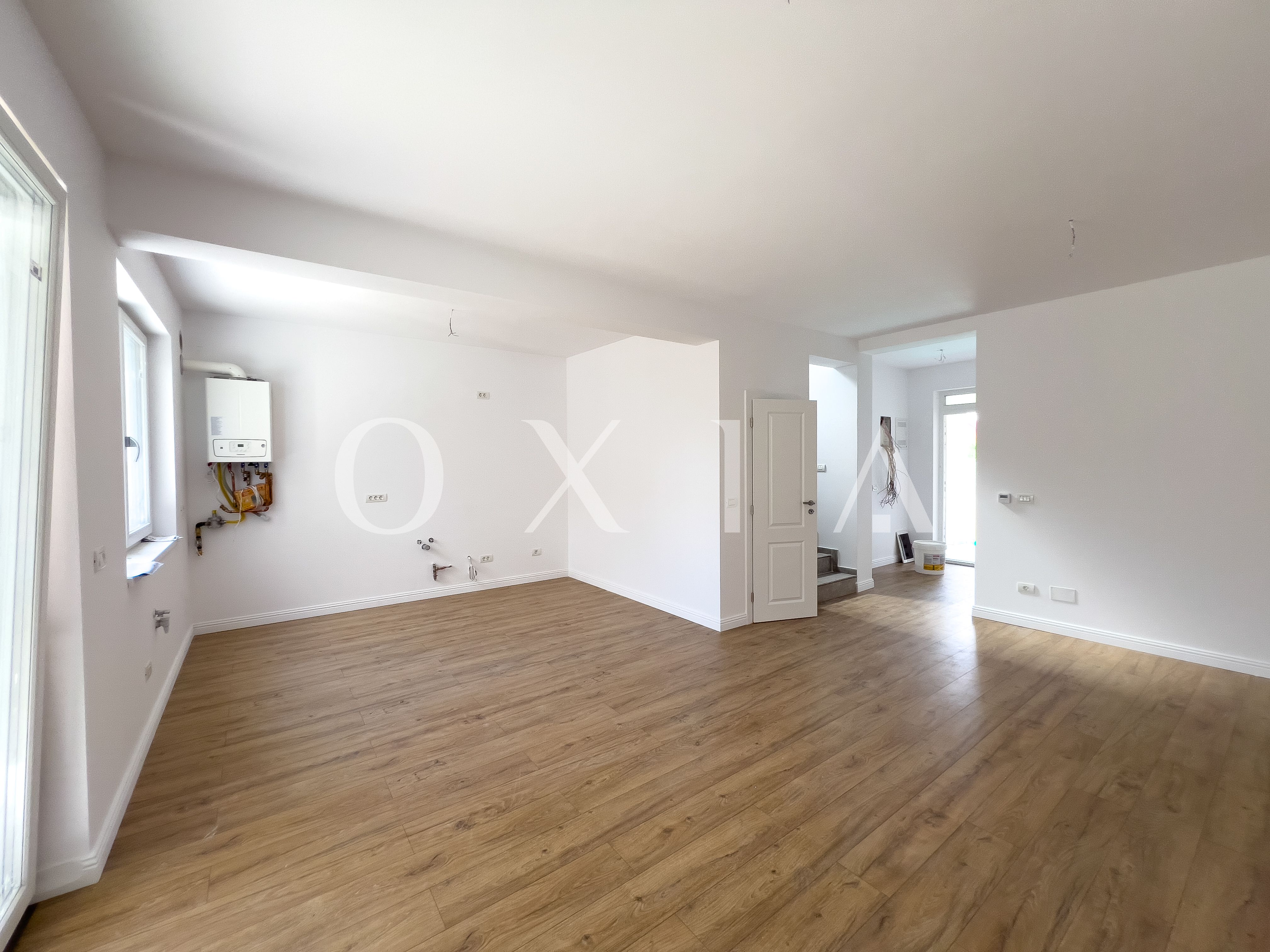 OXIA prezinta spre vanzare unitate in Duplex situat in Giroc, vatra satului, la asfalt, cu suprafata terenului de 200 mp, suprafata construita de 160 mp (amprenta casei la sol este de aproximativ 90 mp), suprafata utila de 120 mp + 17 mp terasa acoperita, compartimentata astfel: