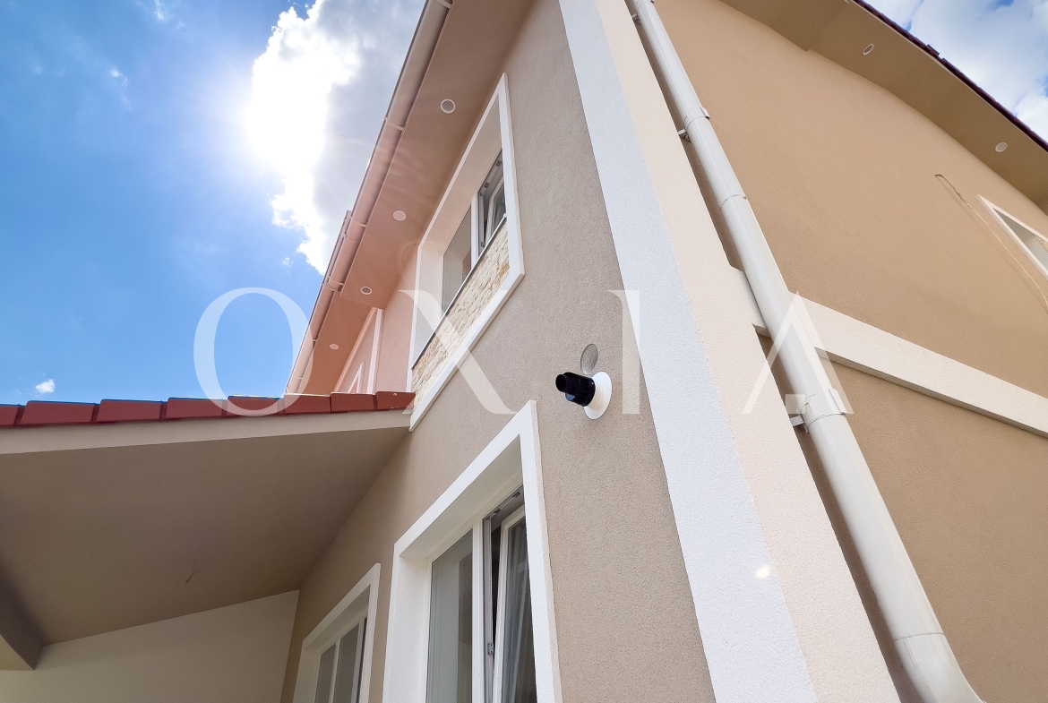 Casa este construita din caramida, acoperita cu tigla si izolata cu polistiren.