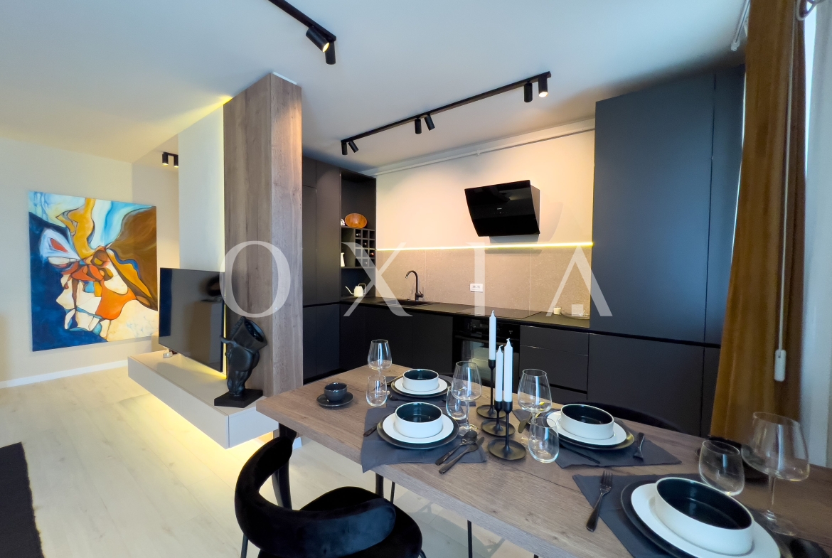 Un detaliu remarcabil este amenajarea apartamentului, gandita si realizata de un designer renumit.