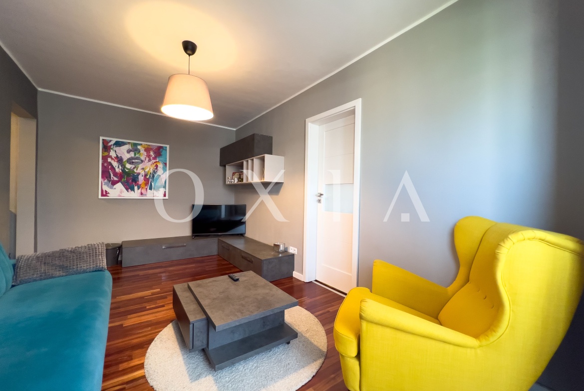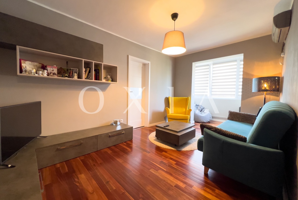Apartamentul se vinde mobilat si utilat (plita, cuptor, hota, masina de spalat rufe cu uscator, combina frigorifica, sistem de climatizare ).