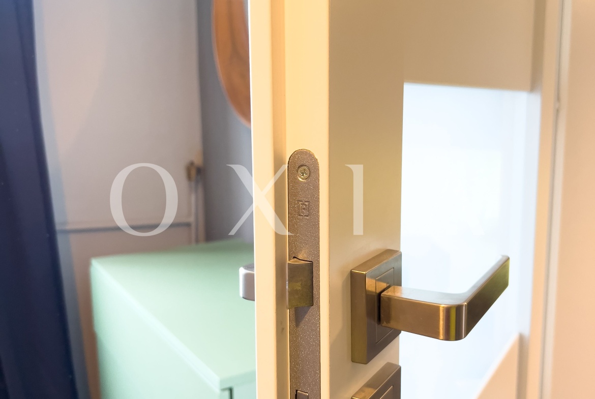 Proprietatea este recent renovata si beneficiaza de amenajari moderne: usa intare metalica tripla antifonata, usi interioare PortaDoors, placi de gresie/faianta Tempini, obiecte sanitare Kludi&Franke, parchet din lemn, parchet Curupau, ferestre PVC cu geam termopan, jaluzele Trident, site, vopsea lavabila, etc.