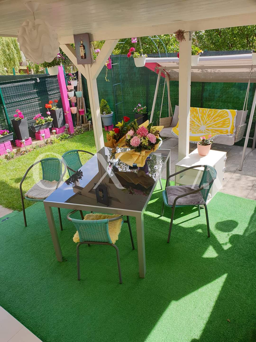 Terasa are fundatie si acoperis din tabla Lindab, izolatie cu vata bazaltica si antifonat, tevi pt incalzire prevazute( transformabila in living)