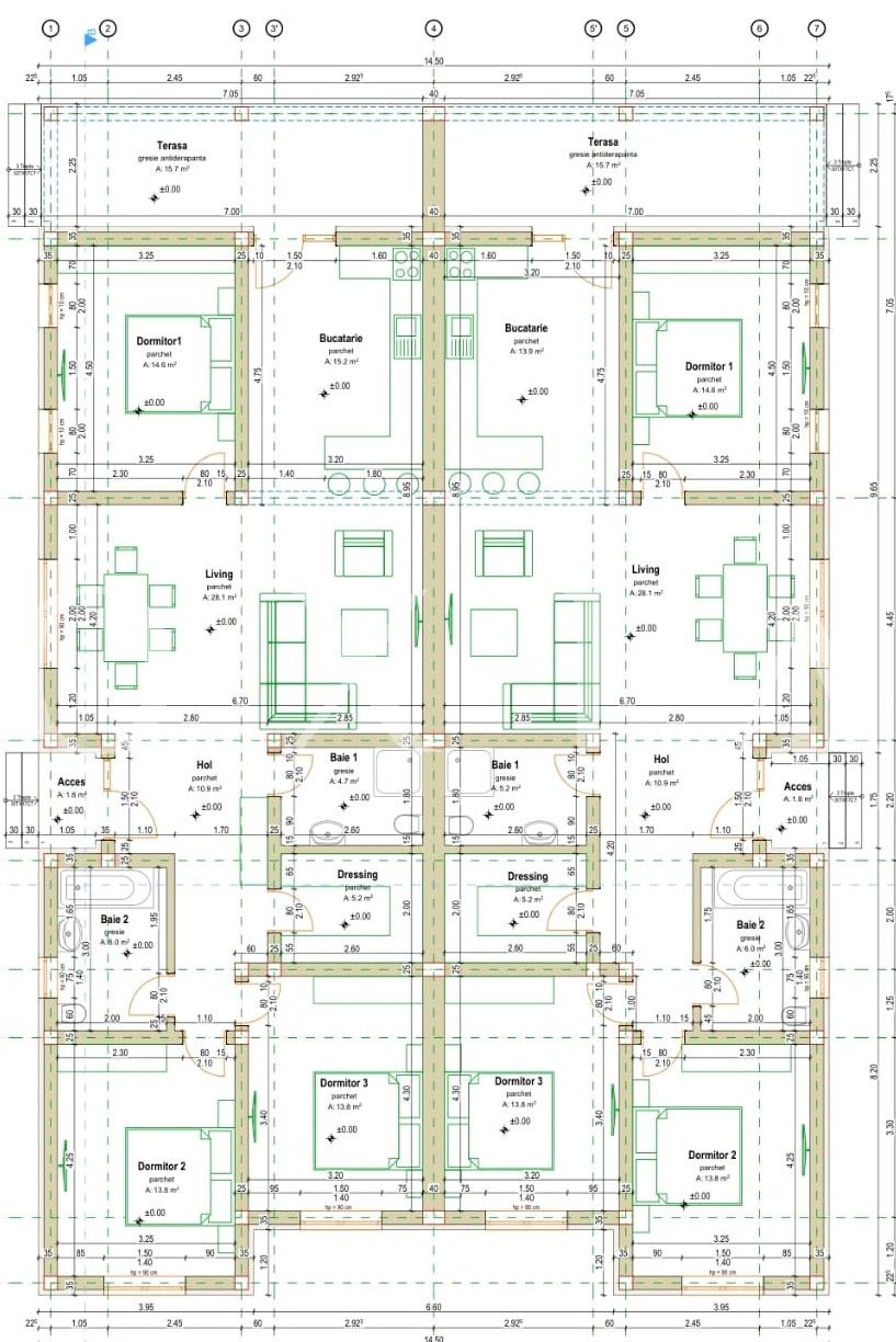 Pentru o intimitate si izolatie fonica cat mai sporita acest duplex are perete despartitor de 40 cm.