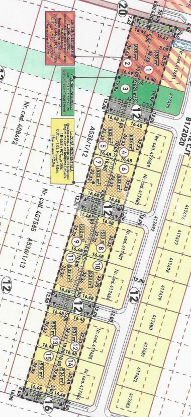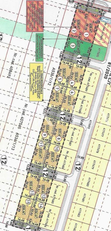 12 parcele de case individuale/duplexuri: 10 -533 mp, 2- 536 mp, 1 – 532 mp, front stradal 16.48 ml