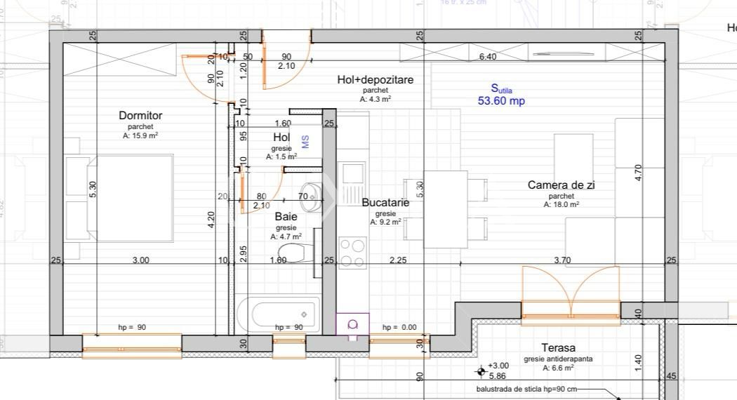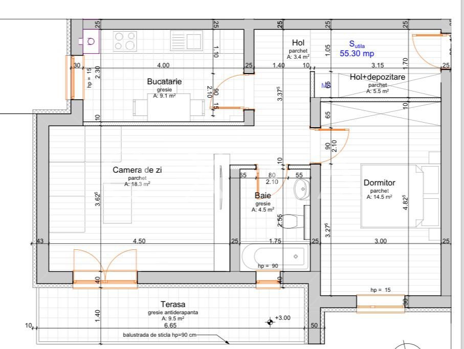 Apartamente cu 3 camere suprafete de 71.7 mp cu terasa 27 mp si 74 mp cu terasa de 20 mp.