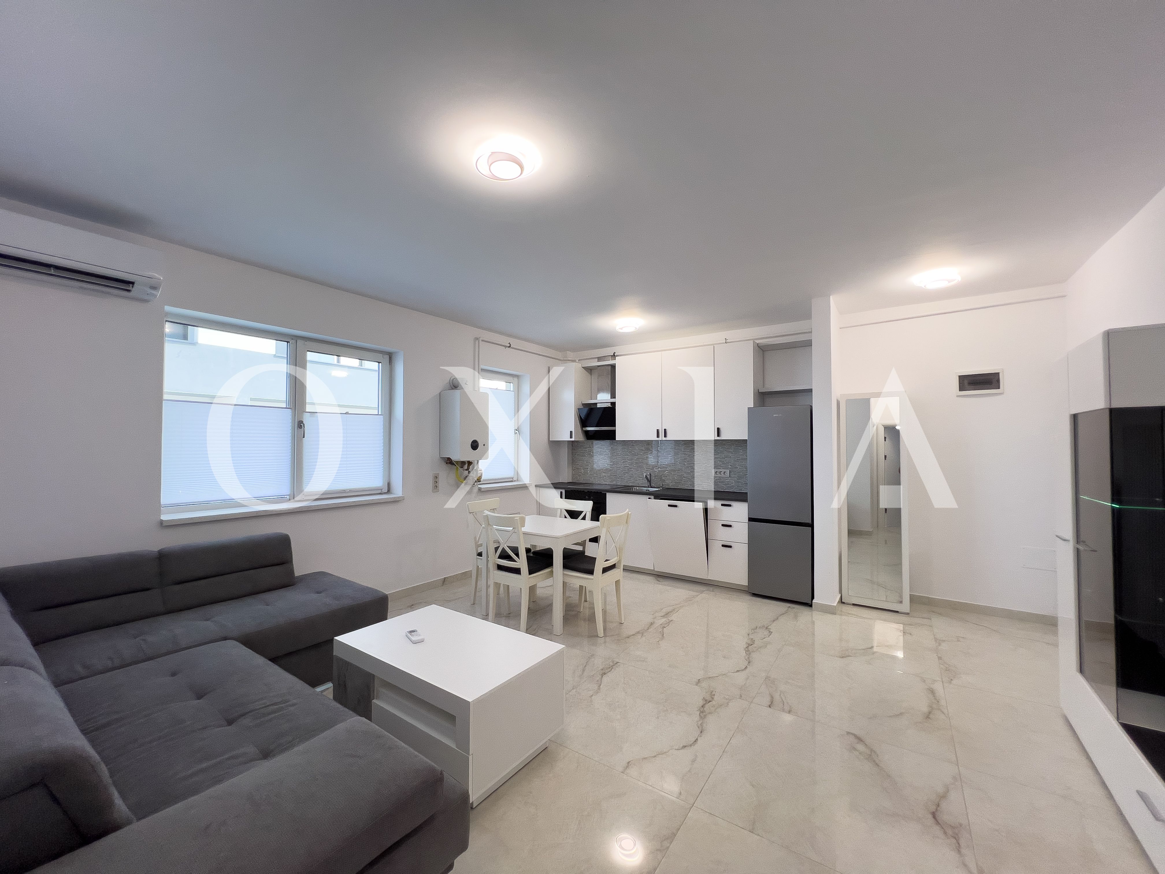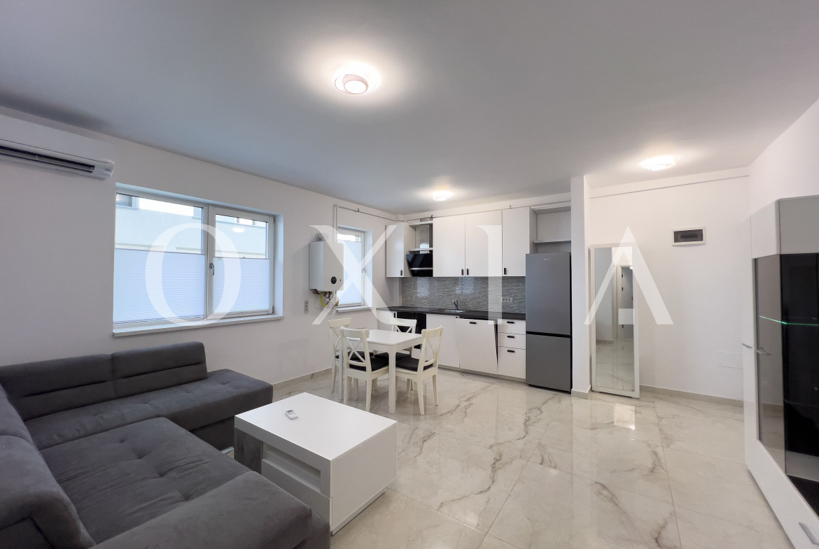 OXIA prezinta spre inchiriere apartament cu doua camere in Giroc, Bulevardul Sudului, situat la parterul unui imobil cu trei etaje, cu suprafata de 47 MP utili, compartimentat astfel:
