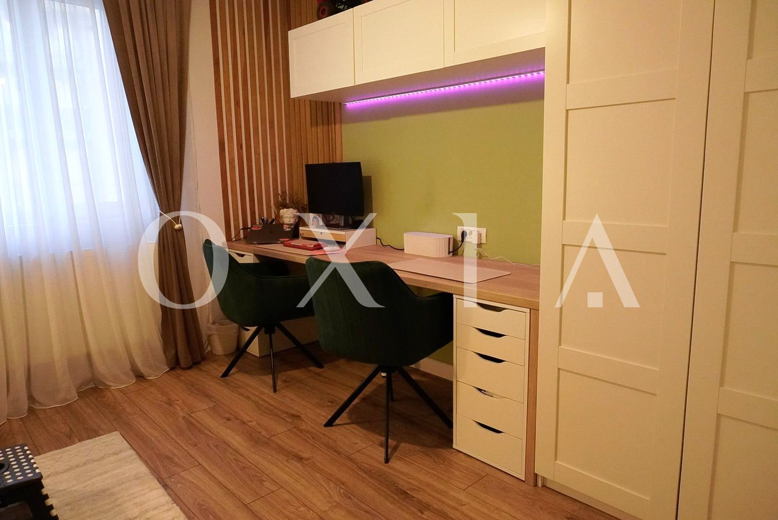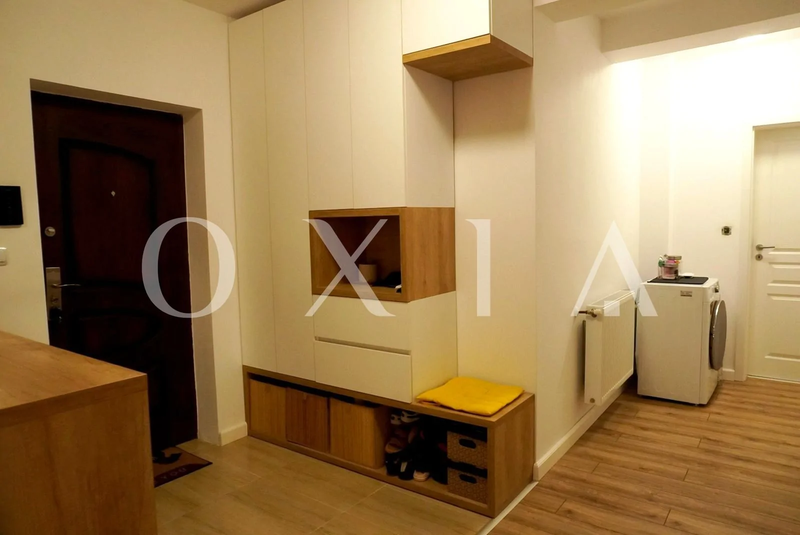 Apartamentul dispune de amenajari moderne: usa intrare metalica, usi interioare celulare, gresie/faianta, parchet, ferestre PVC cu geam termopan, vopsea lavabila, mobilier executat pe comanda, etc.
