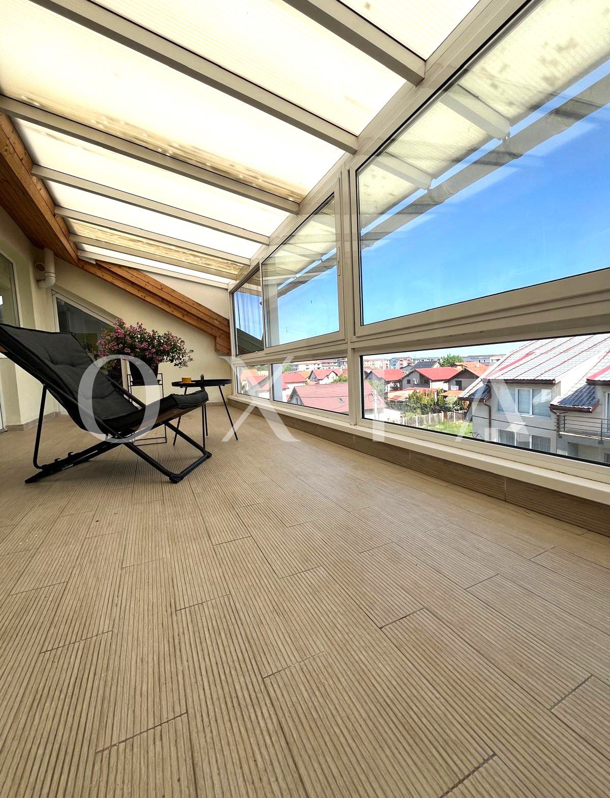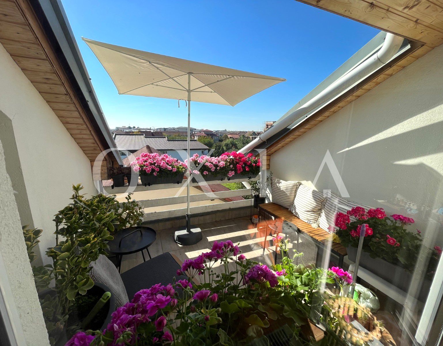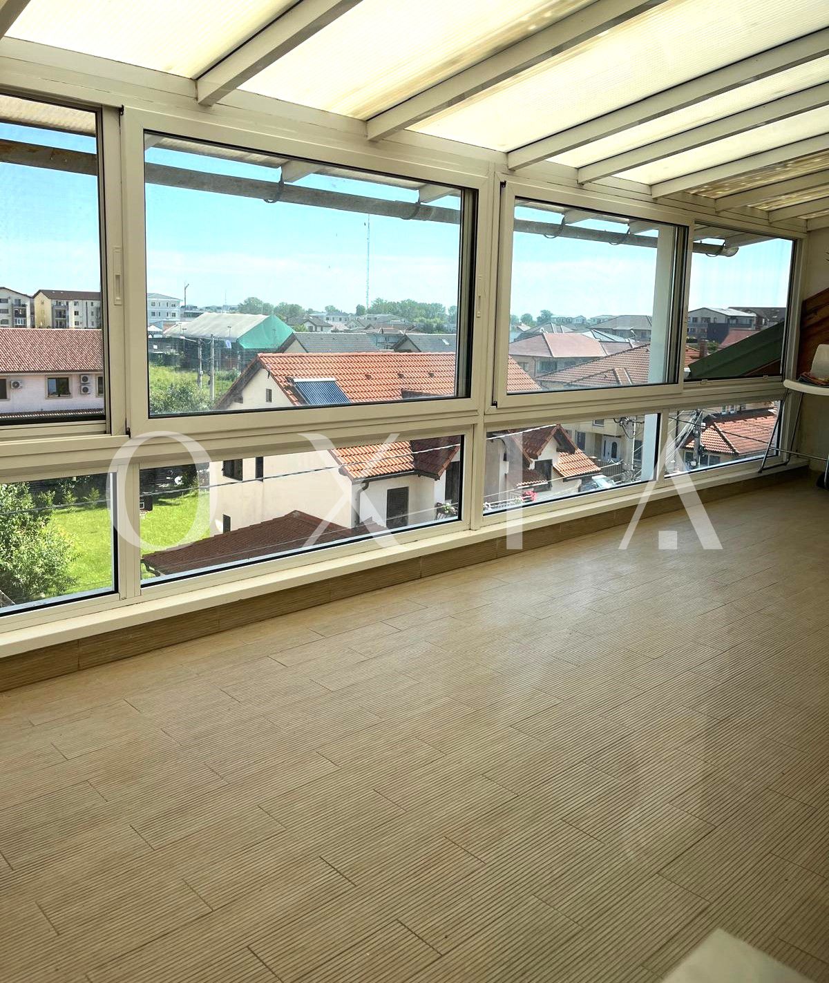 OXIA prezinta spre vanzare apartament spatios, situat in Giroc/Cartierul Planetelor, la 3/3 + Pod, imobil din 2008, decomandat, cu suprafata de 115 mp utili + doua terase de 27 mp (20 mp tarasa inchisa + 7 mp terasa deschisa), compartimentat astfel: