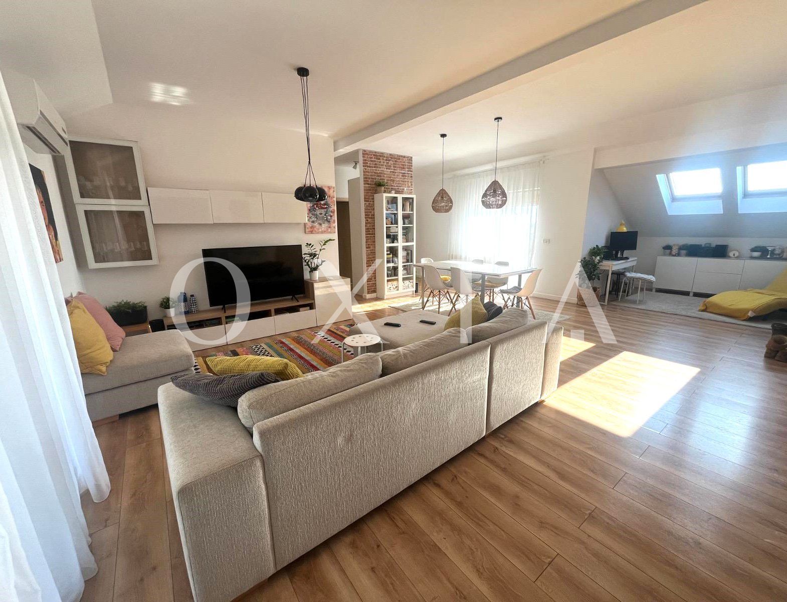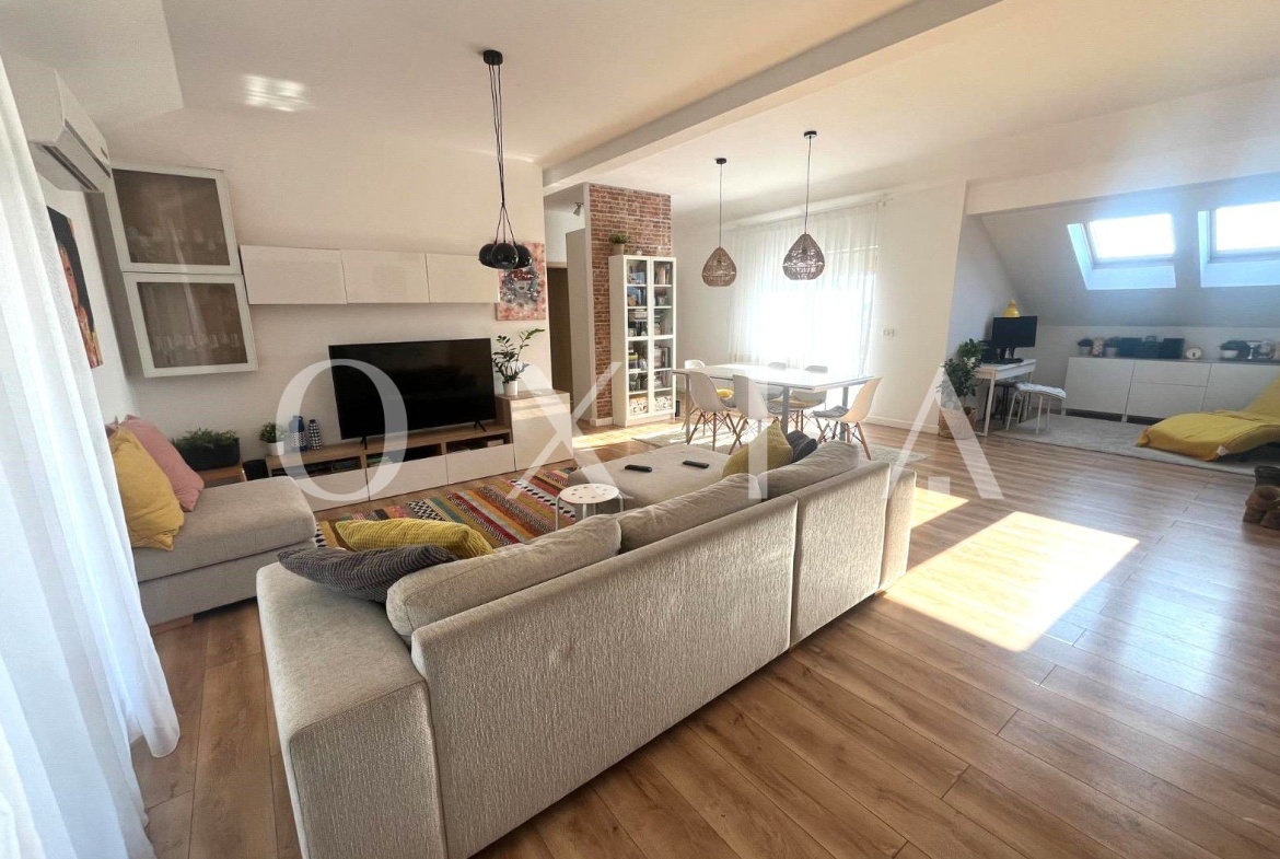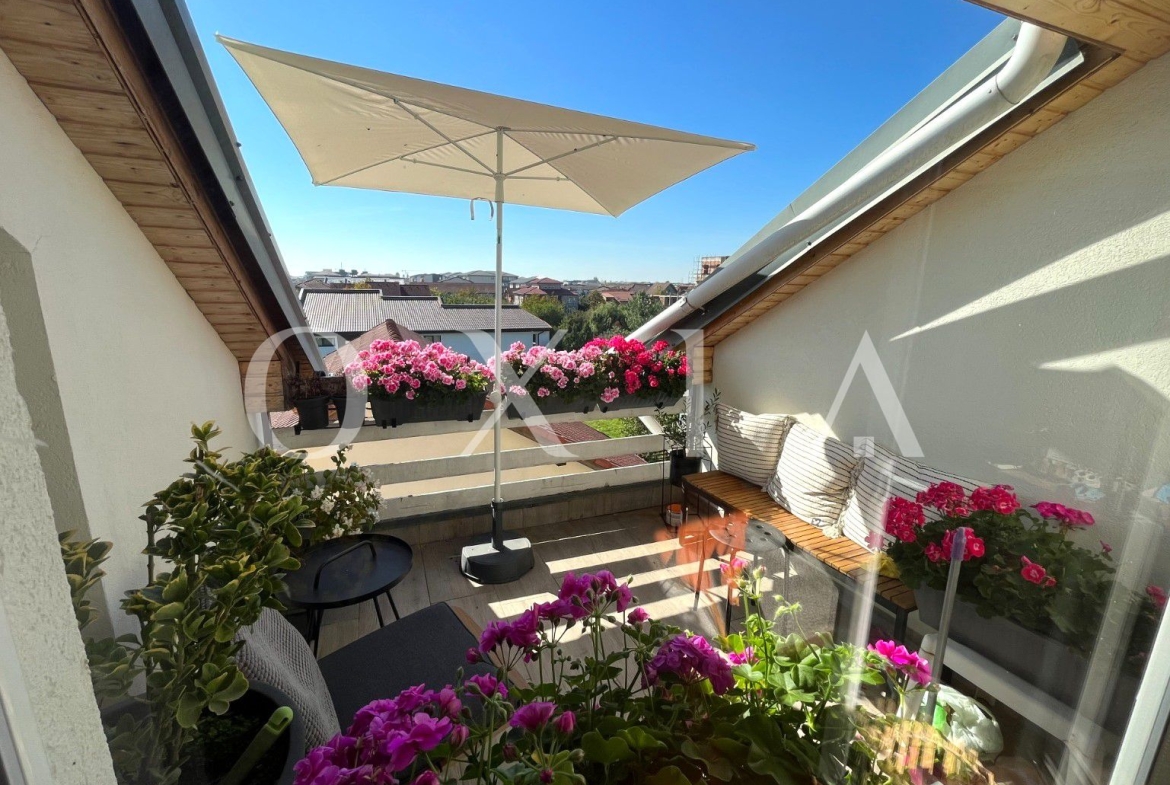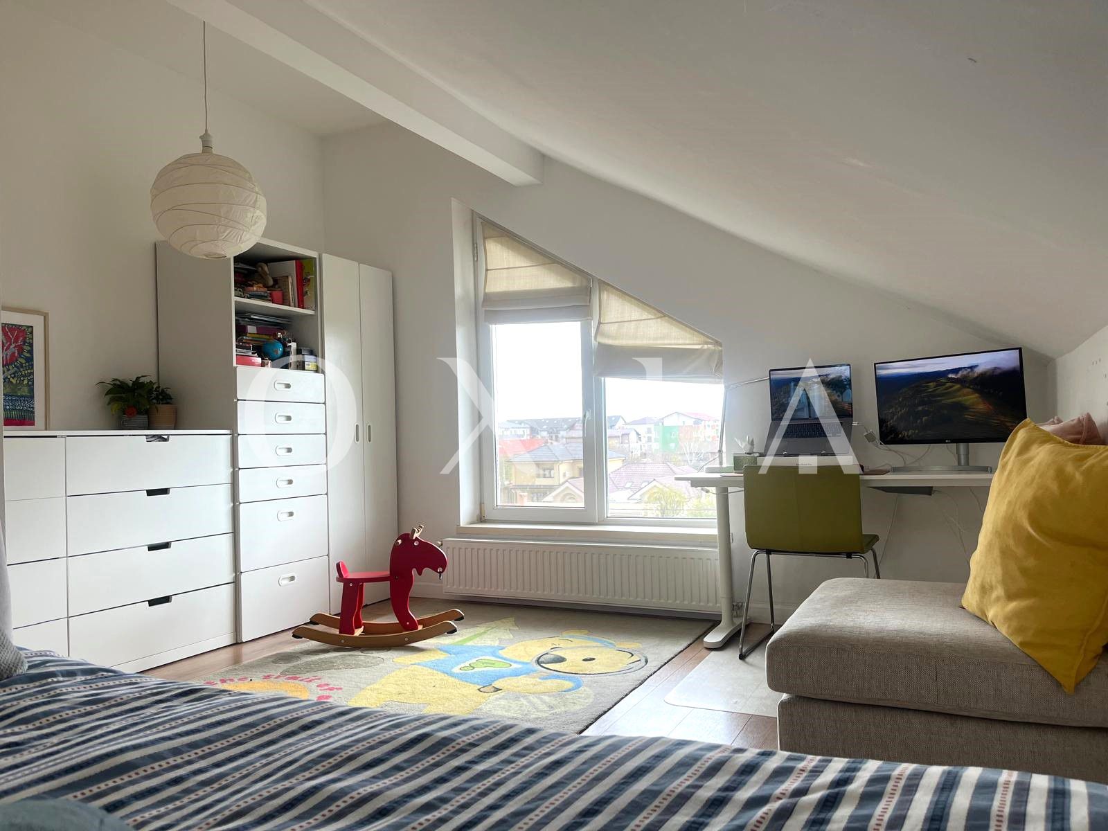 OXIA prezinta spre vanzare apartament spatios, situat in Giroc/Cartierul Planetelor, la 3/3 + Pod, imobil din 2008, decomandat, cu suprafata de 115 mp utili + doua terase de 27 mp (20 mp tarasa inchisa + 7 mp terasa deschisa), compartimentat astfel: