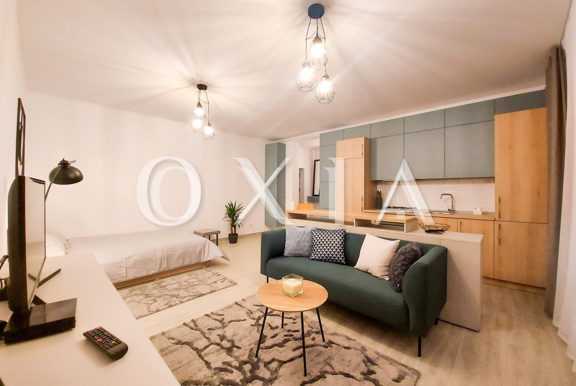 OXIA prezinta spre vanzare studio situat in Giroc-Chisoda, la parter/3, cu suprafata de 40 MP + 20 MP terasa, compartimentat astfel:
