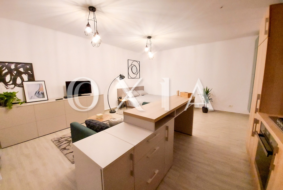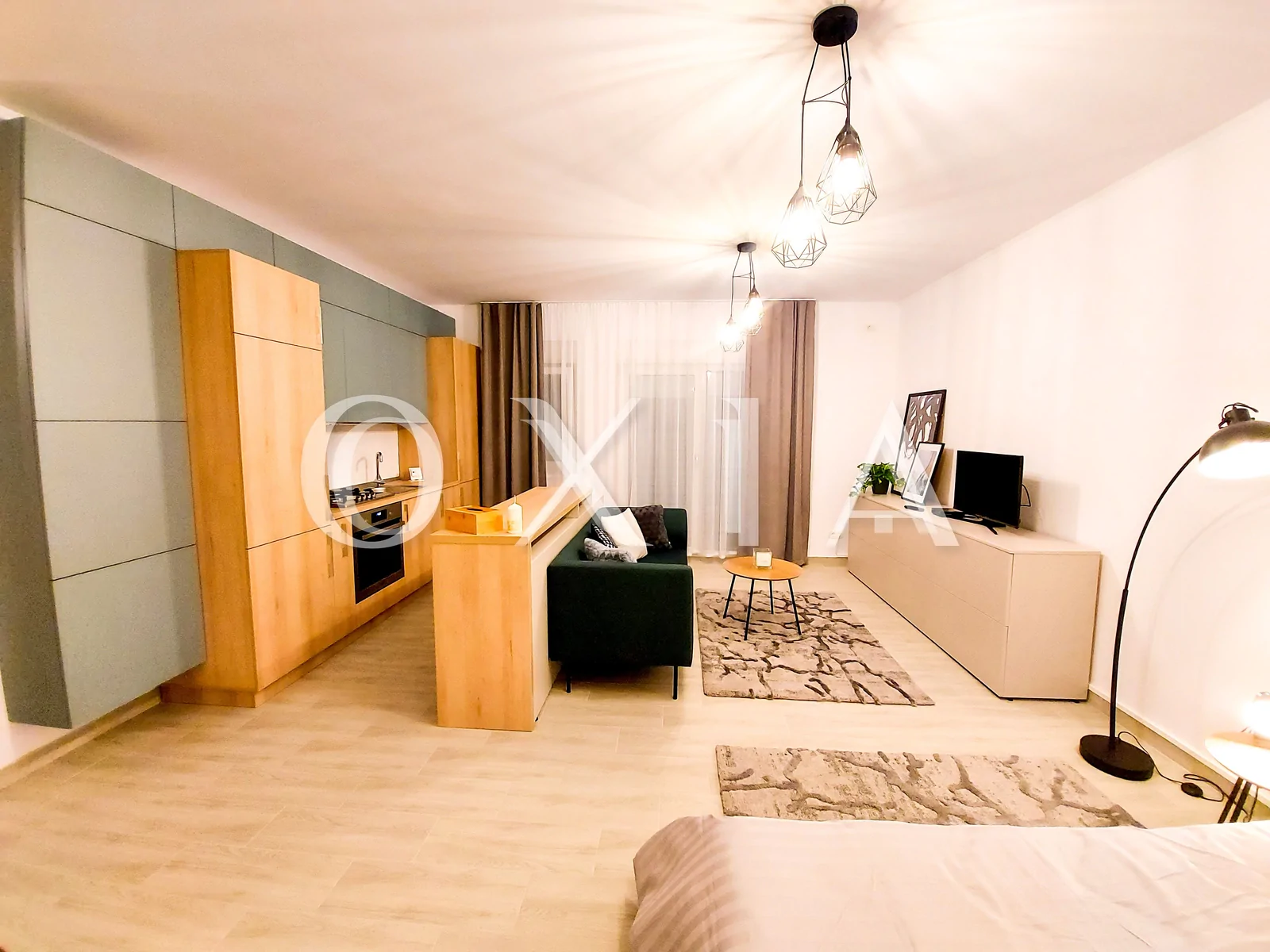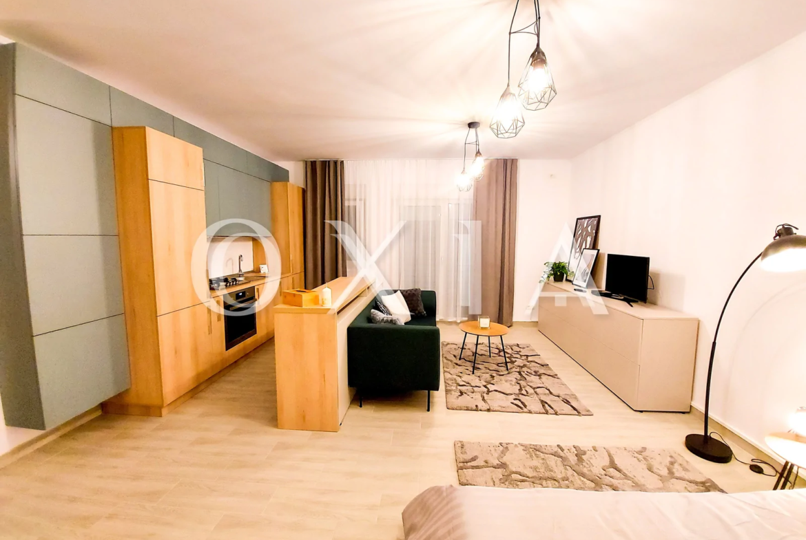 OXIA prezinta spre vanzare studio situat in Giroc-Chisoda, la parter/3, cu suprafata de 40 MP + 20 MP terasa, compartimentat astfel: