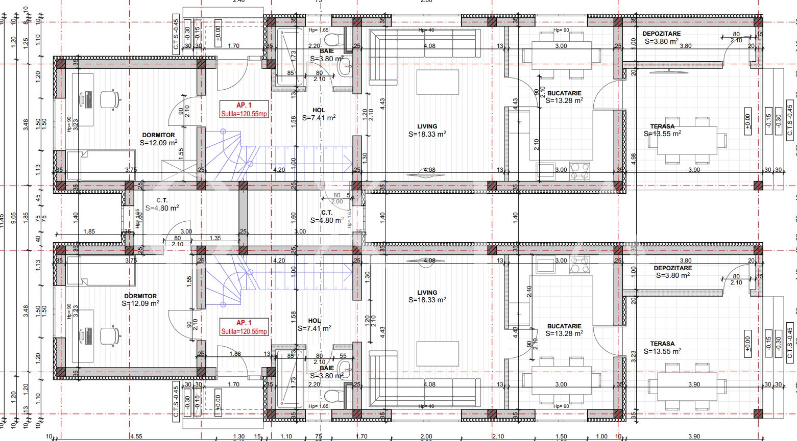 OXIA prezinta spre vanzare duplex despartit prin camera tehnica, cu regim de inaltime P+1 in Giroc zona Bulevardului Armatei, cu suprafata terenului de 330 mp, suprafata utila de 120 mp + terasa acoperita de 9 mp, compartimentat astfel: