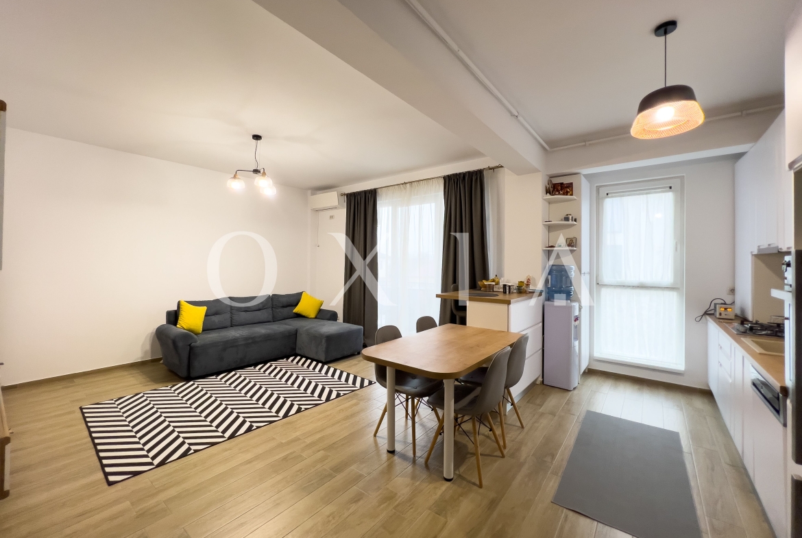 OXIA prezinta in exclusivitate spre inchiriere apartament cu 3 camere la intrarea in Localitatea Giroc, langa benzinaria ESO, situat la imobil P+3E finalizat in anul 2020, la etajul 1, spatios, cu suprafata de 70 MP utili + 6 MP balcon, compartimentat astfel:
