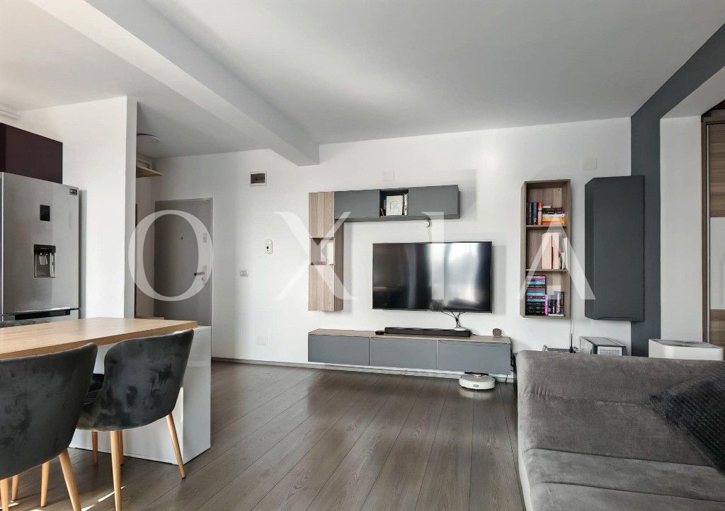 OXIA prezinta spre vanzare apartament cu 3 camere, situat in Giroc/Zona Eso, la etajul 3/3 + pod cu acces din apartament, imobil din 2015, semidecomandat, cu suprafata de 67 mp si terasa de 8 mp, compartimentat asfel: