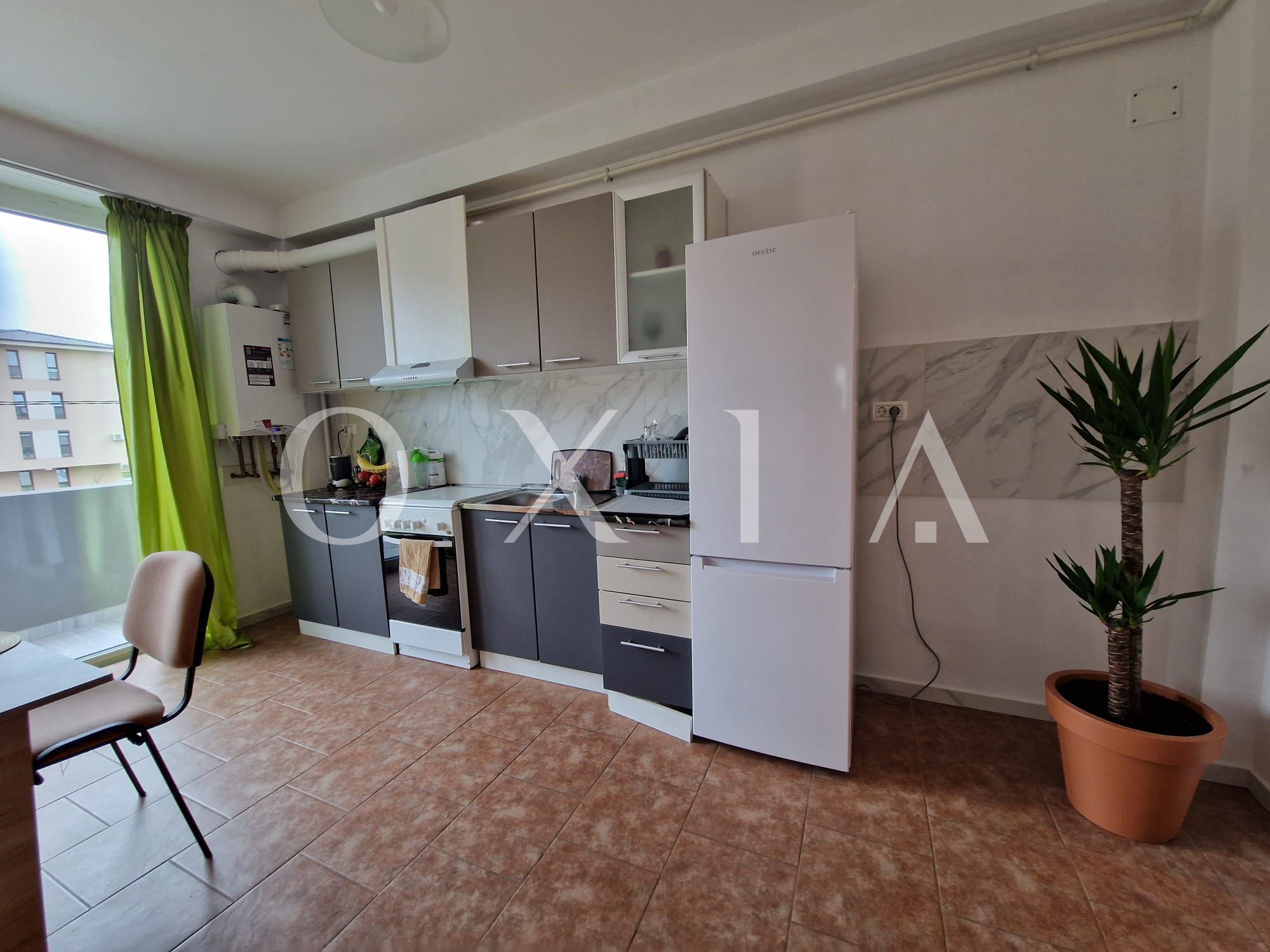 OXIA prezinta spre inchiriere apartament cu 2 camere in Giroc, in apropierea benzinariei Esso, situat la etajul 1 din 3 cu lift, semidecomandat, cu suprafata de 50 MP utili plus balcon de 5 mp, compartimentat astfel: