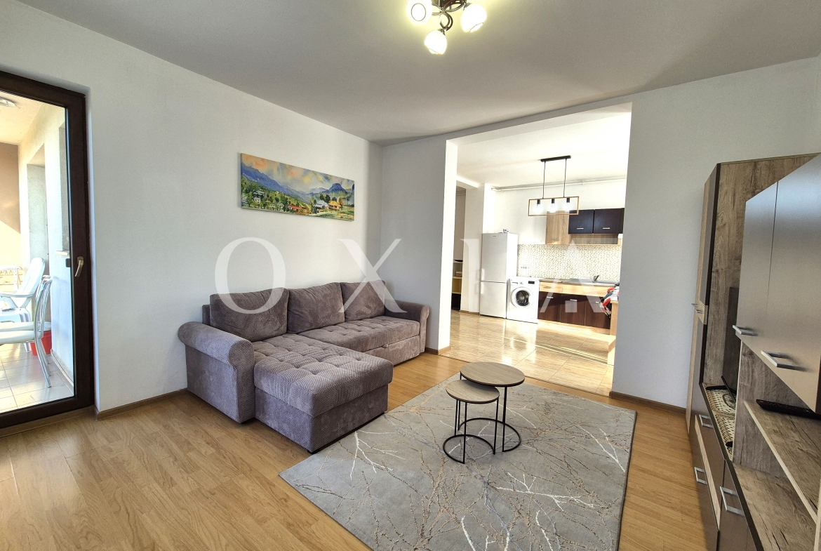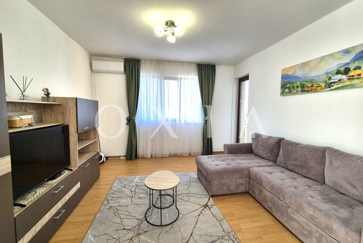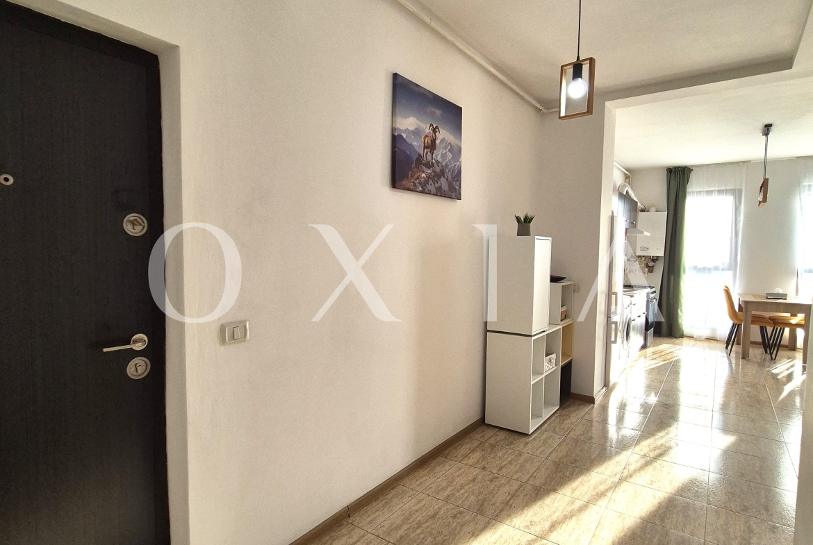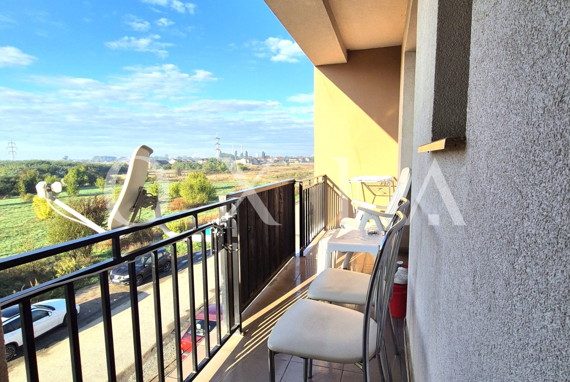 OXIA prezinta spre inchiriere apartament cu 2 camere in Giroc, Zona Esso, pe strada Bulevardul Aviatiei, situat in imobil P+3E, la etajul 2, semidecomandat, cu suprafata de 56 MP utili + terasa de 5 MP, compartimentat astfel: