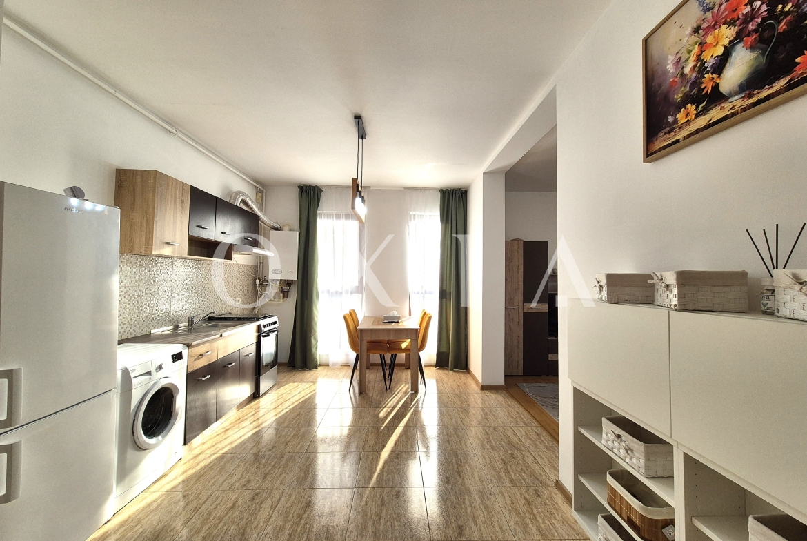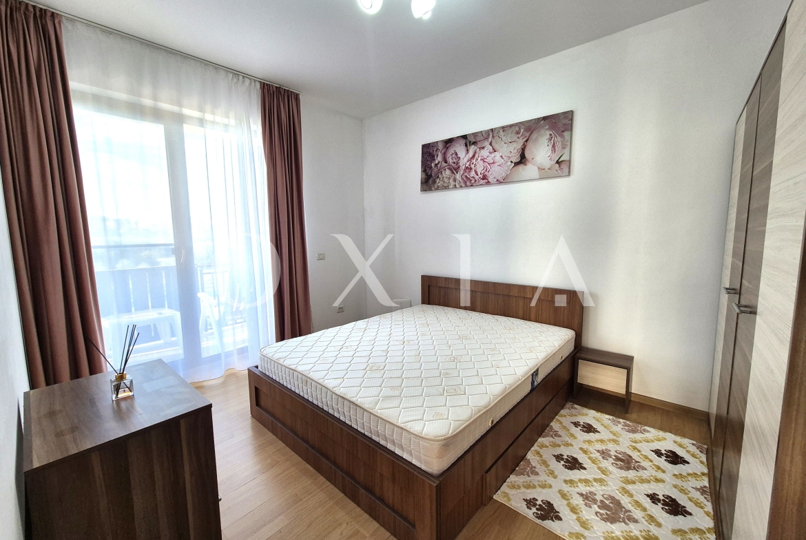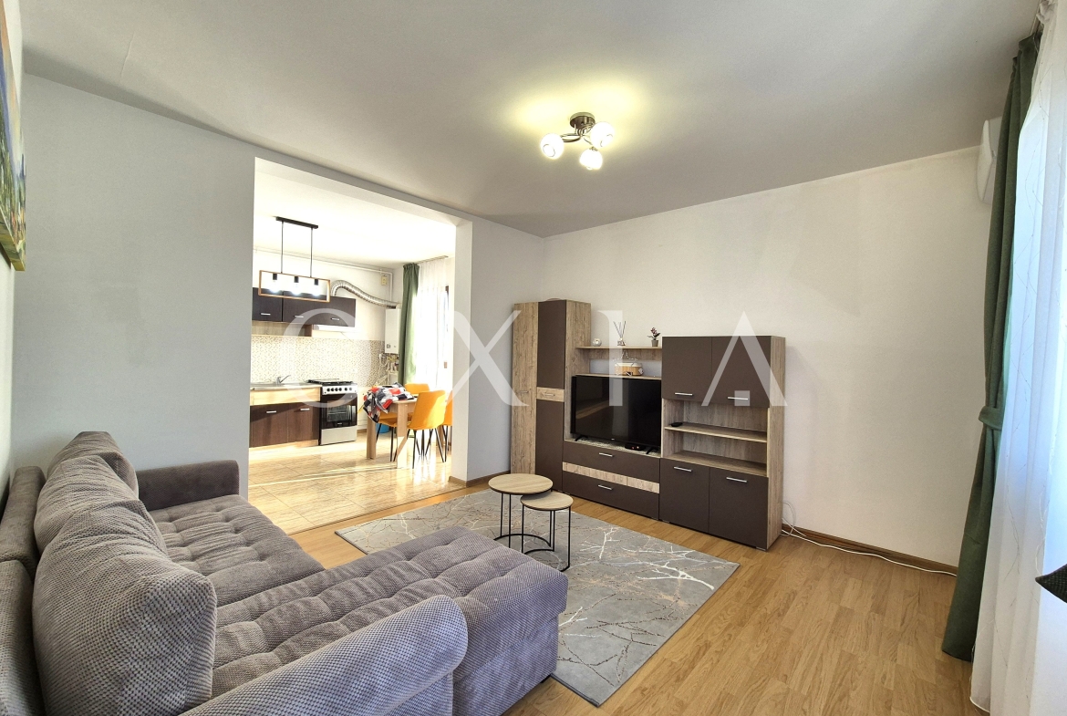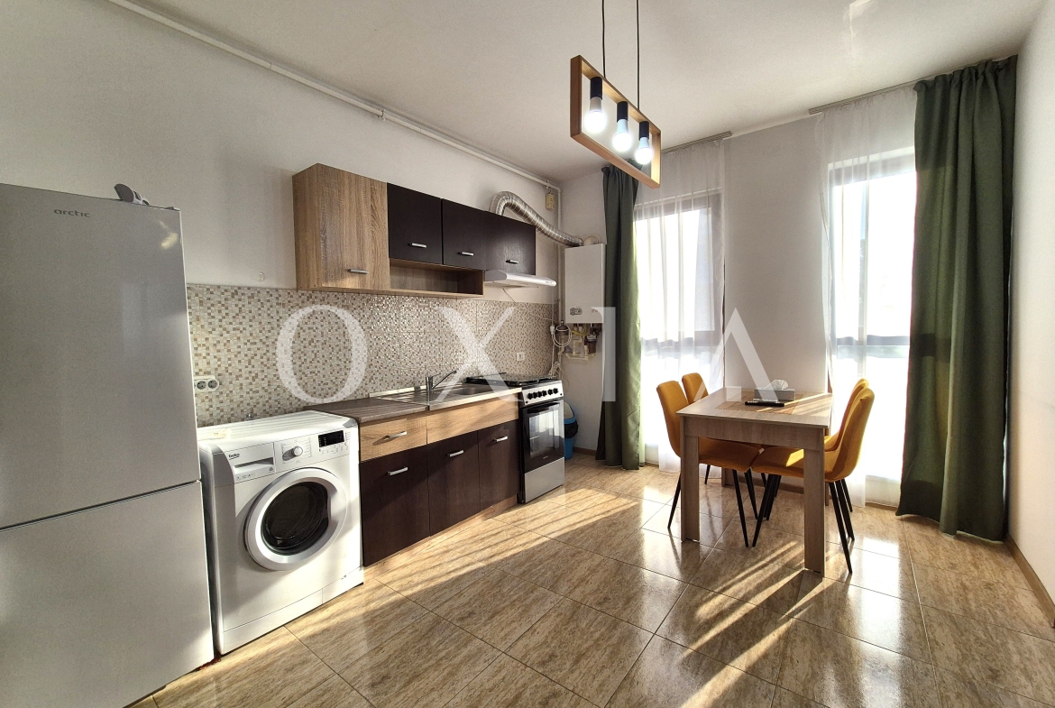 OXIA prezinta spre inchiriere apartament cu 2 camere in Giroc, Zona Esso, pe strada Bulevardul Aviatiei, situat in imobil P+3E, la etajul 2, semidecomandat, cu suprafata de 56 MP utili + terasa de 5 MP, compartimentat astfel: