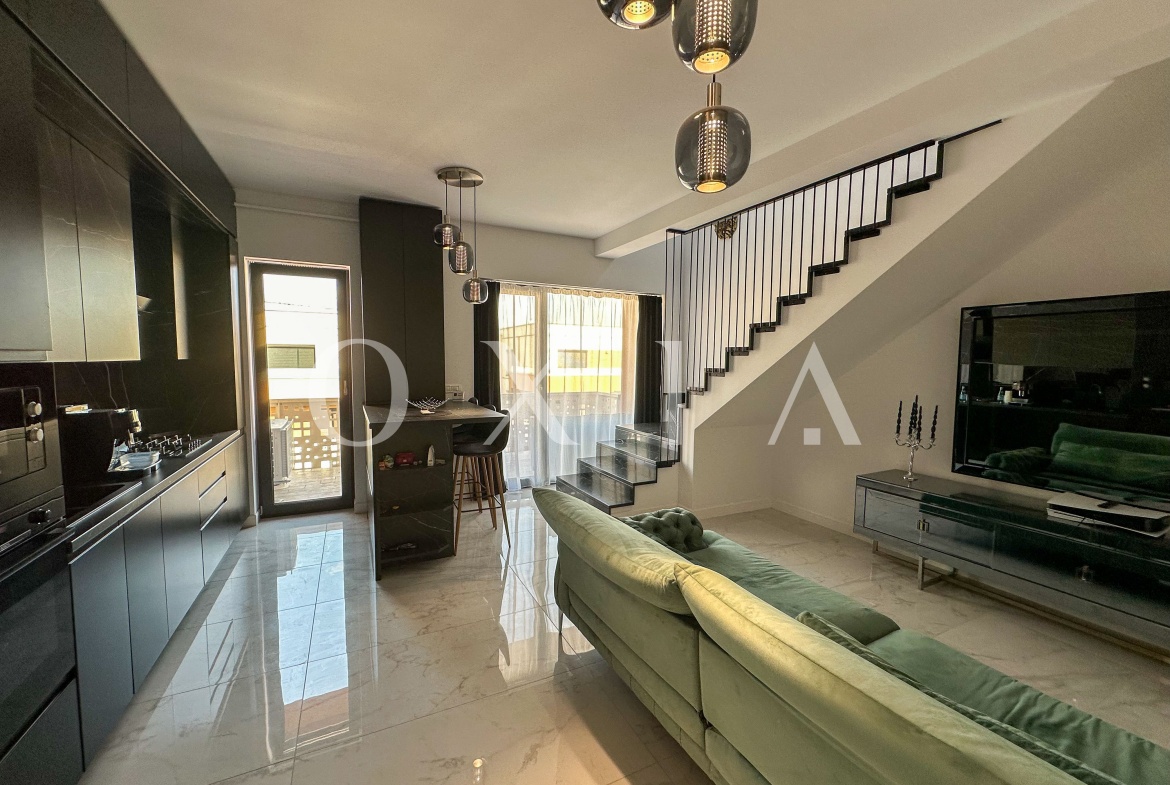 OXIA va prezinta spre vanzare un apartament deosebit, dispus pe doua nivele, situat in ansamblu rezidential Future Residence din Giroc, la etajul 5, imobil nou, finalizat in 2023, echipat cu ascensor modern.