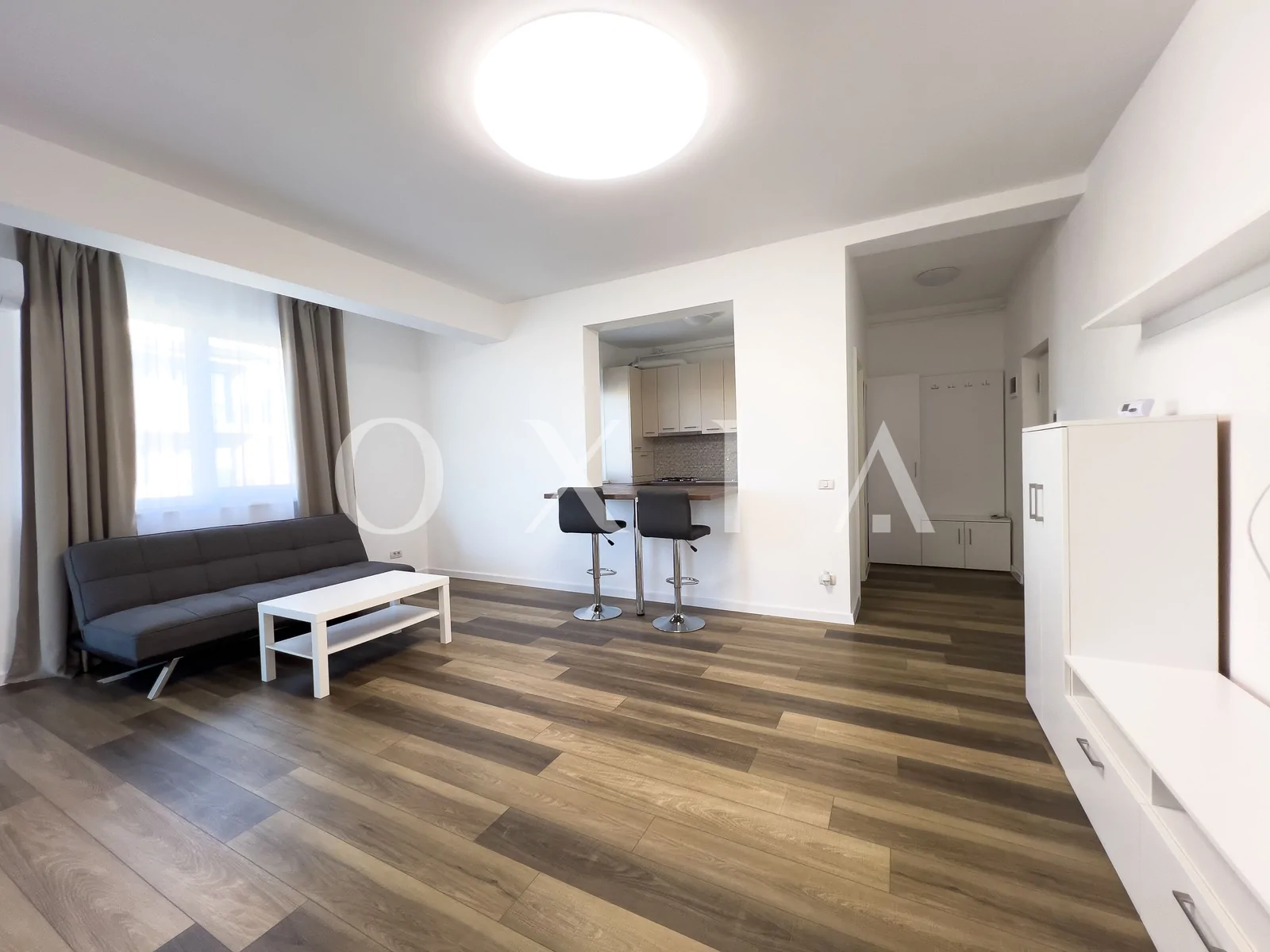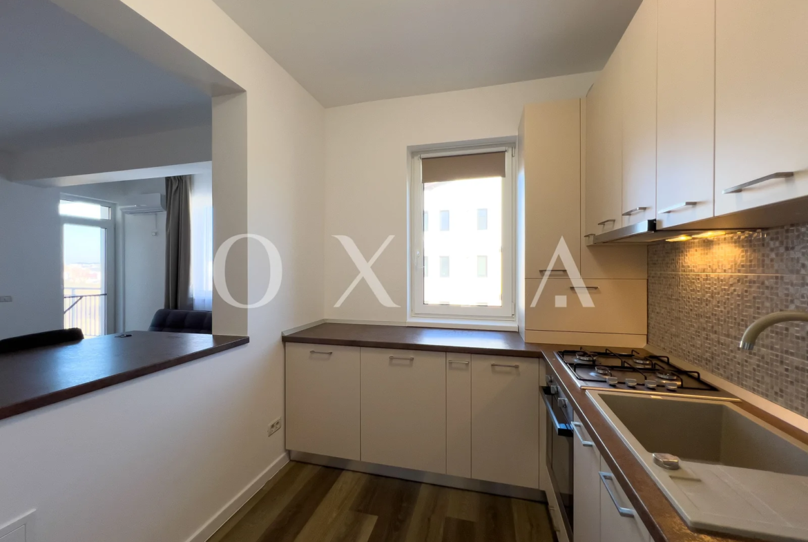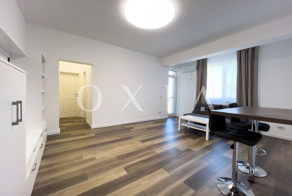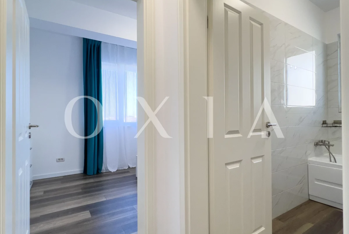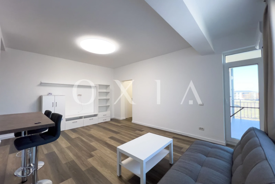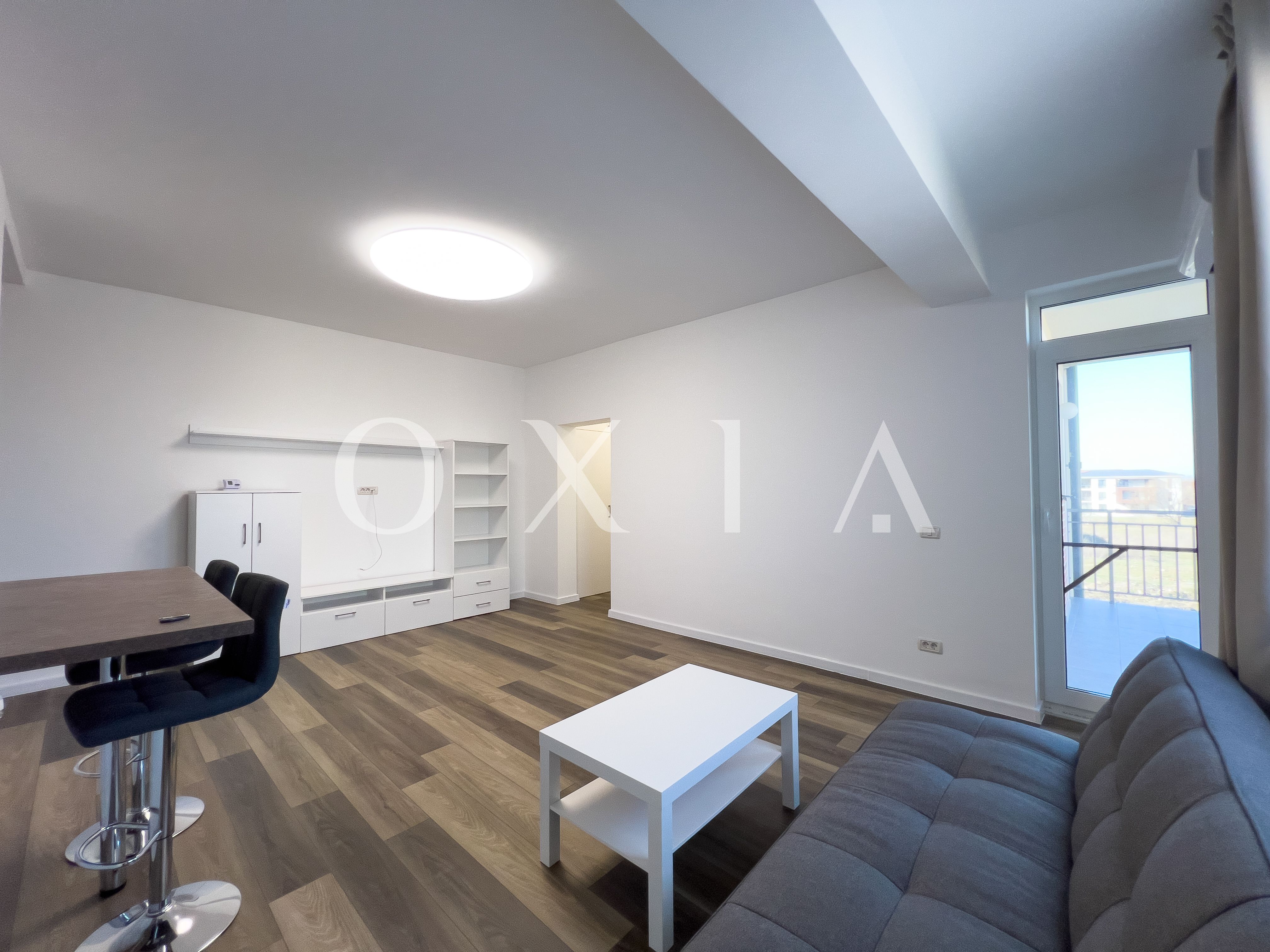 OXIA prezinta spre inchiriere apartament cu 2 camere situat in Giroc, in spatele hotelului IQ,in imobil P+3E, la etajul 2, cu suprafata de 56 MP utili + 6 MP balcon, semidecomandat, compartimentat astfel: