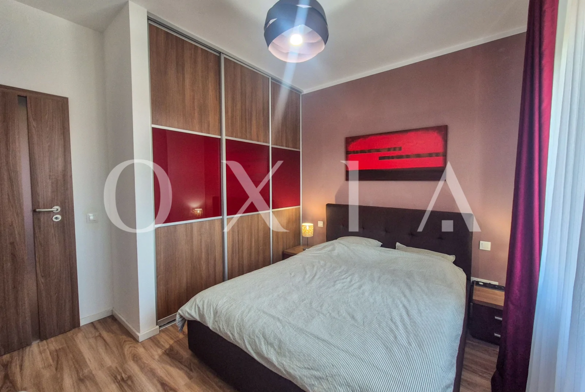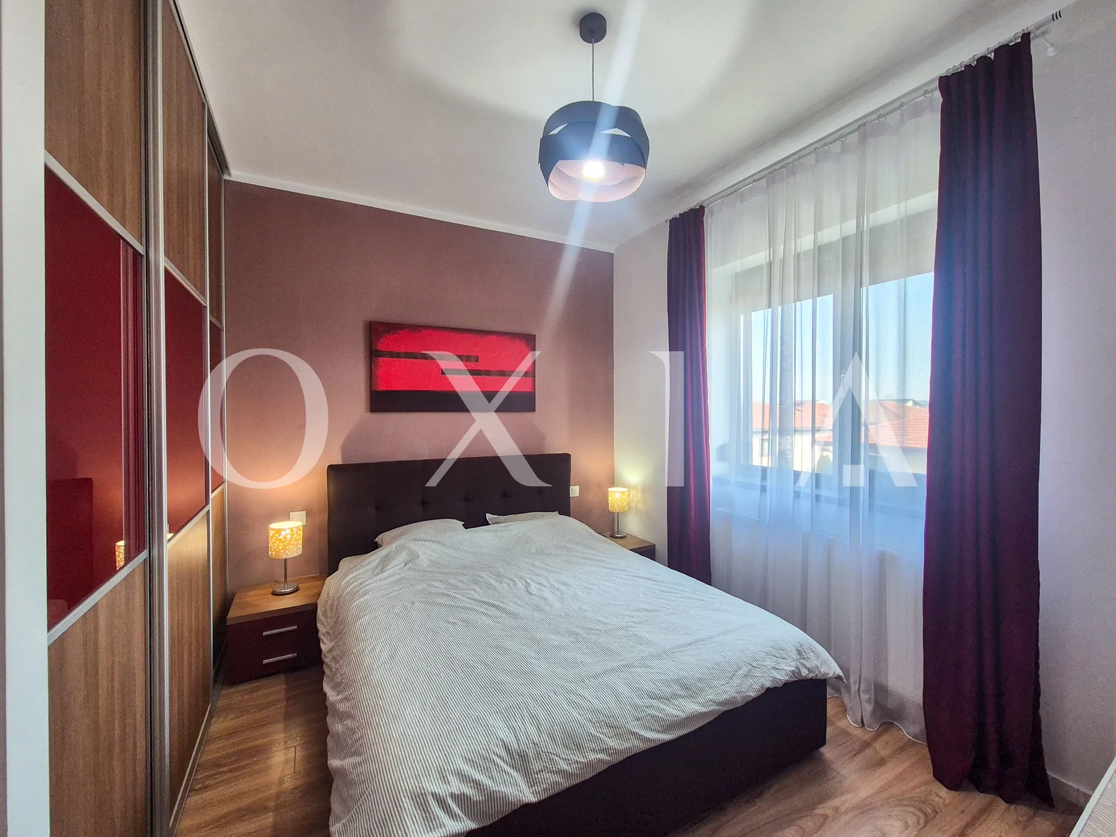 Apartamentul dispune de amenajari moderne: usa intrare metalica, usi interioare celulare, gresie/faianta, parchet, ferestre PVC cu geam termopan, vopsea lavabila, mobilier executat pe comanda, etc.