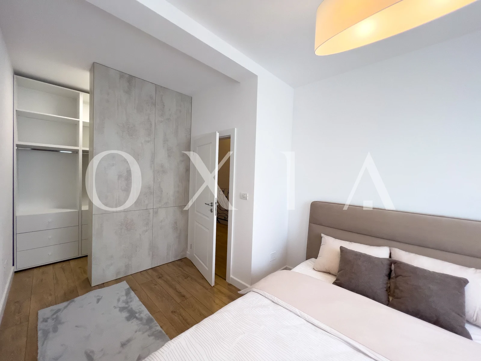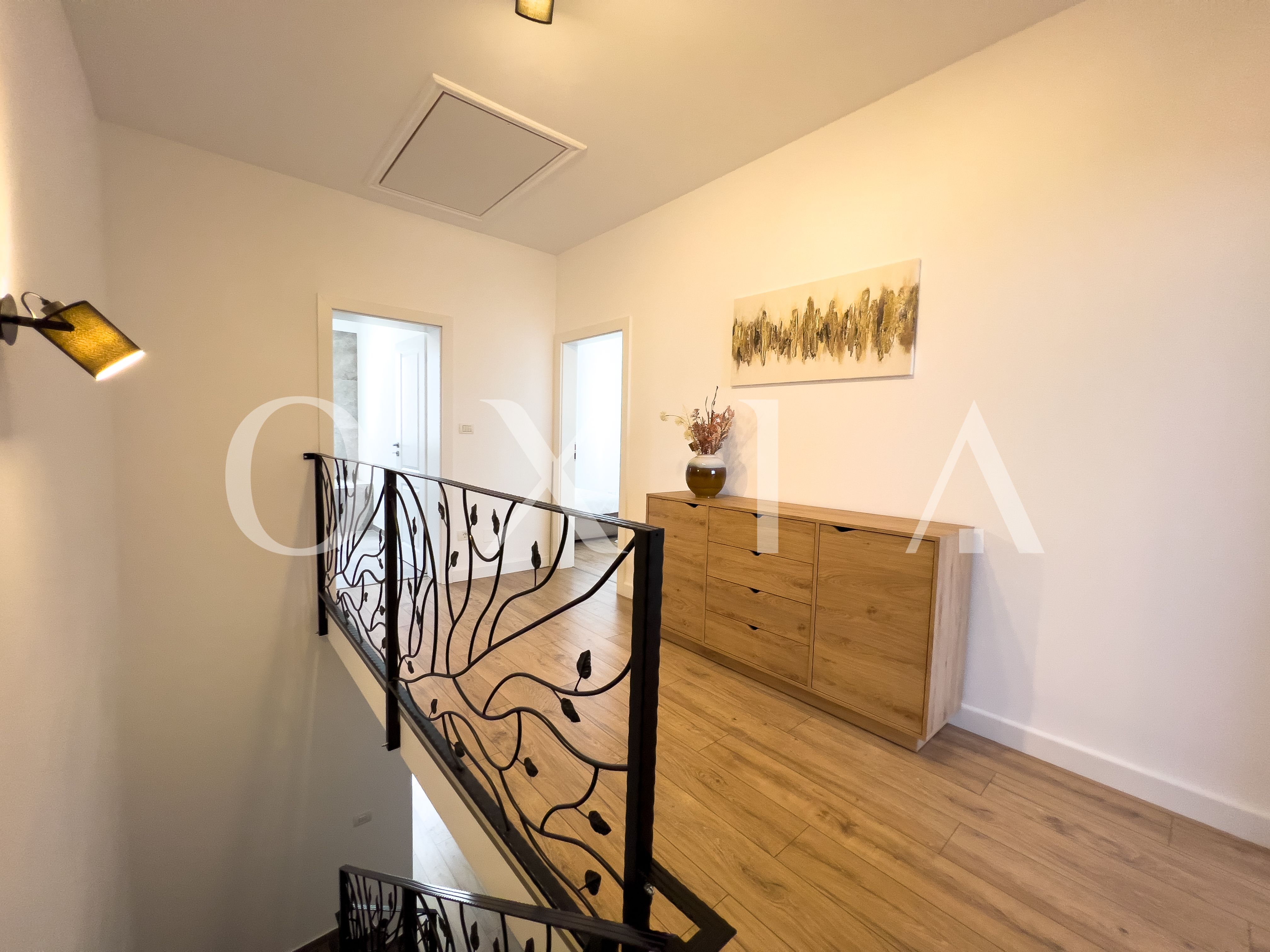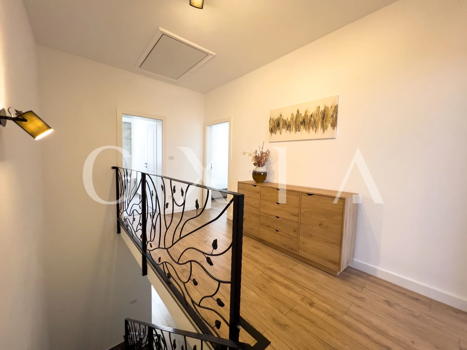 Etaj: hol foarte lat, 2 dormitoare fiecare cu dresing propriu, baie.