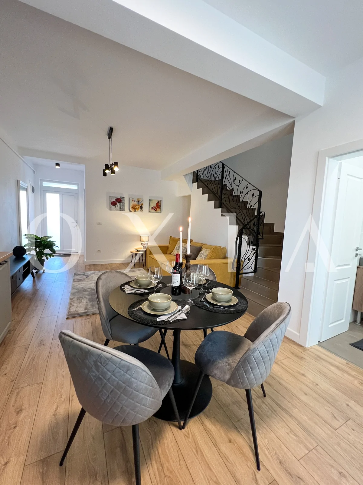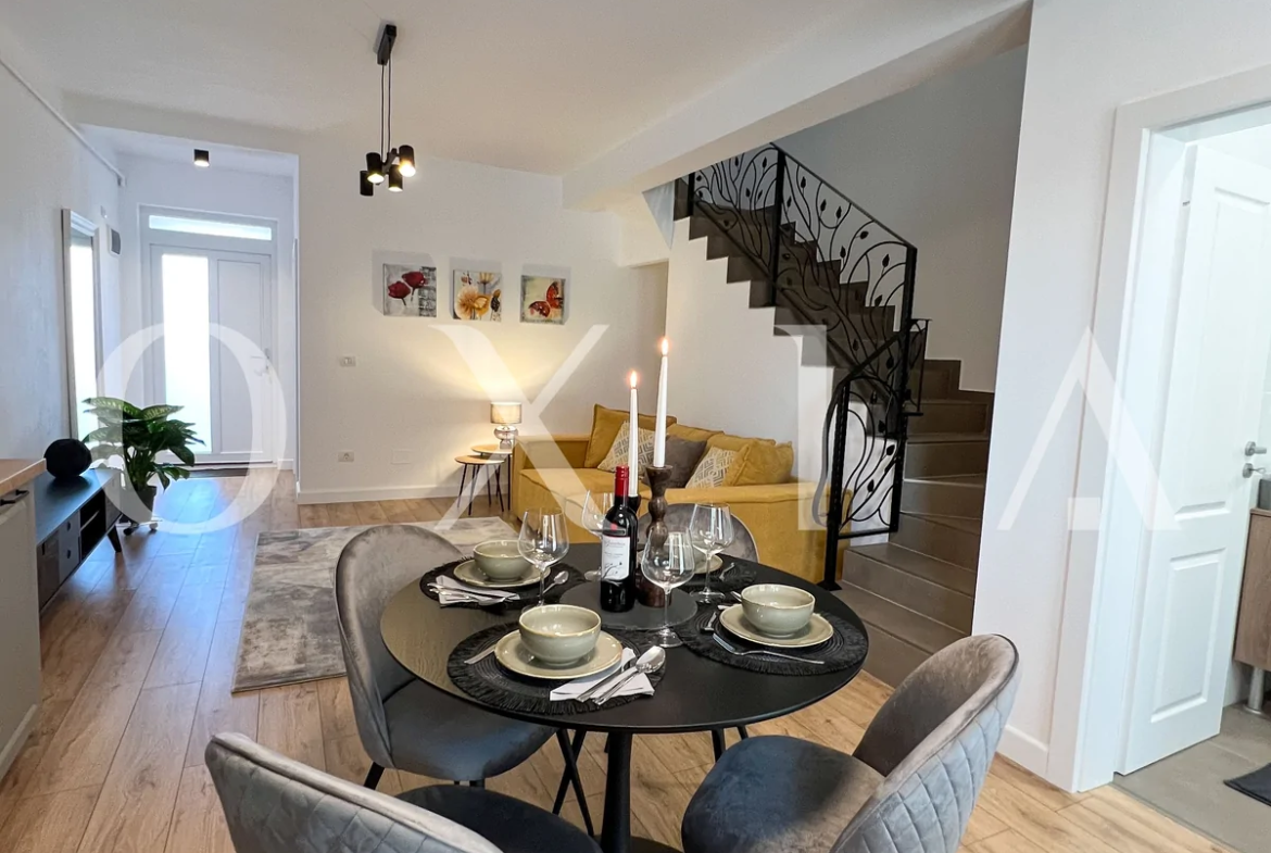 Imobilul beneficiaza de finisaje moderne: geamuri termopan cu 3 foi de sticla (tripan), instalatie electrica pe cupru.