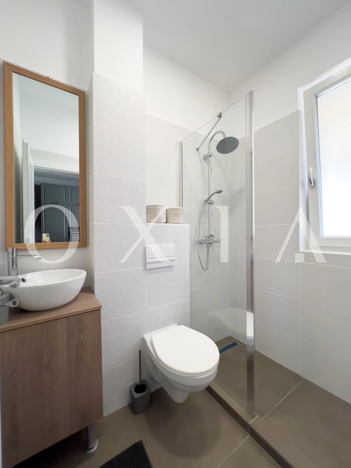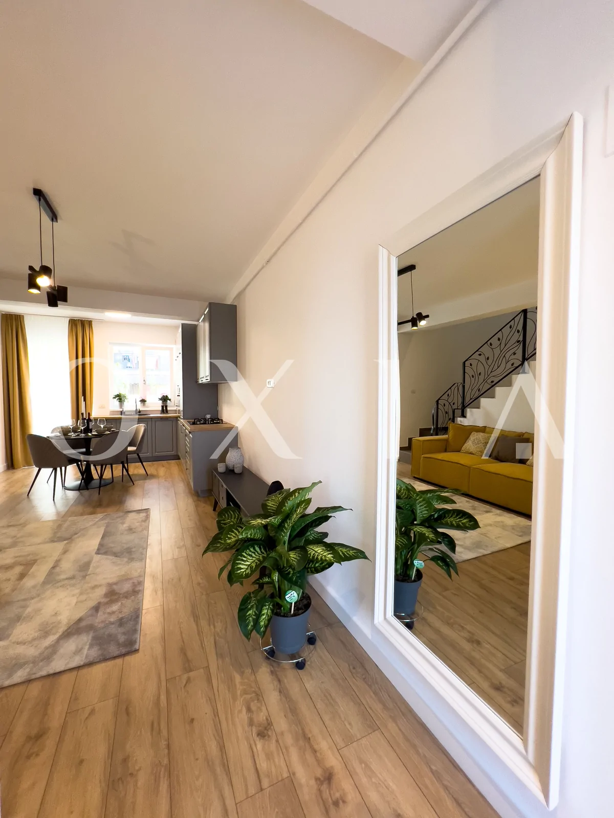 OXIA prezinta spre vanzare casa in Giroc, intr-un ansablu rezidential, cu suprafata terenului de 130 mp, suprafata construita de 130mp(amprenta casei la sol este de aproximativ 70mp), suprafata utila de 92 mp + 13 mp terasa partial acoperita, compartimentata astfel: