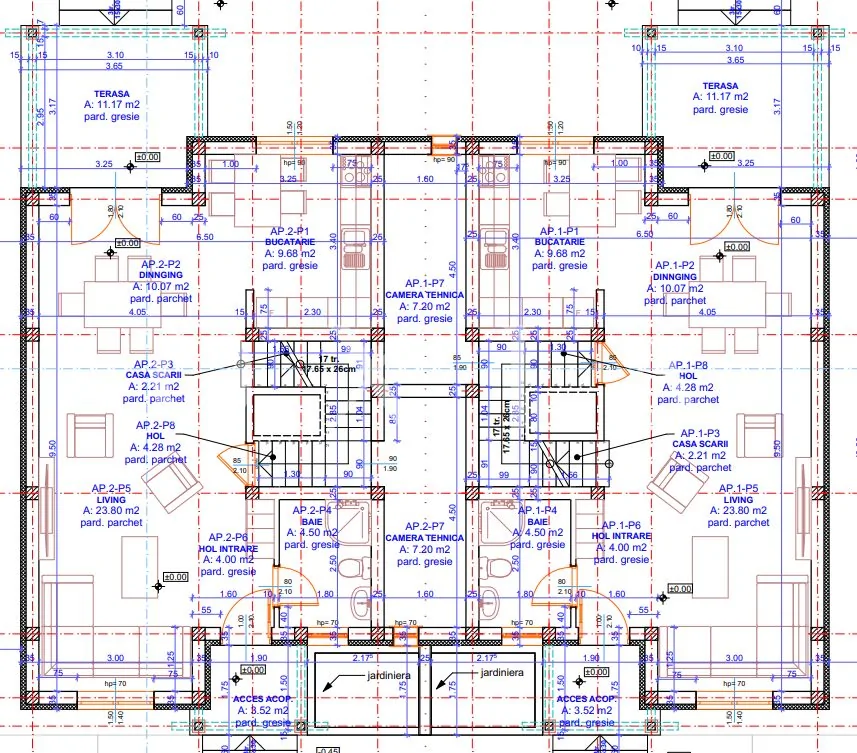 Beneficiaza de amenajari moderne: Usa intrare cu profil aluminiu, usi interioare celulare, ferestre PVC cu geam termopan tripan, placi de gresie/faianta, scara interioara, etc.