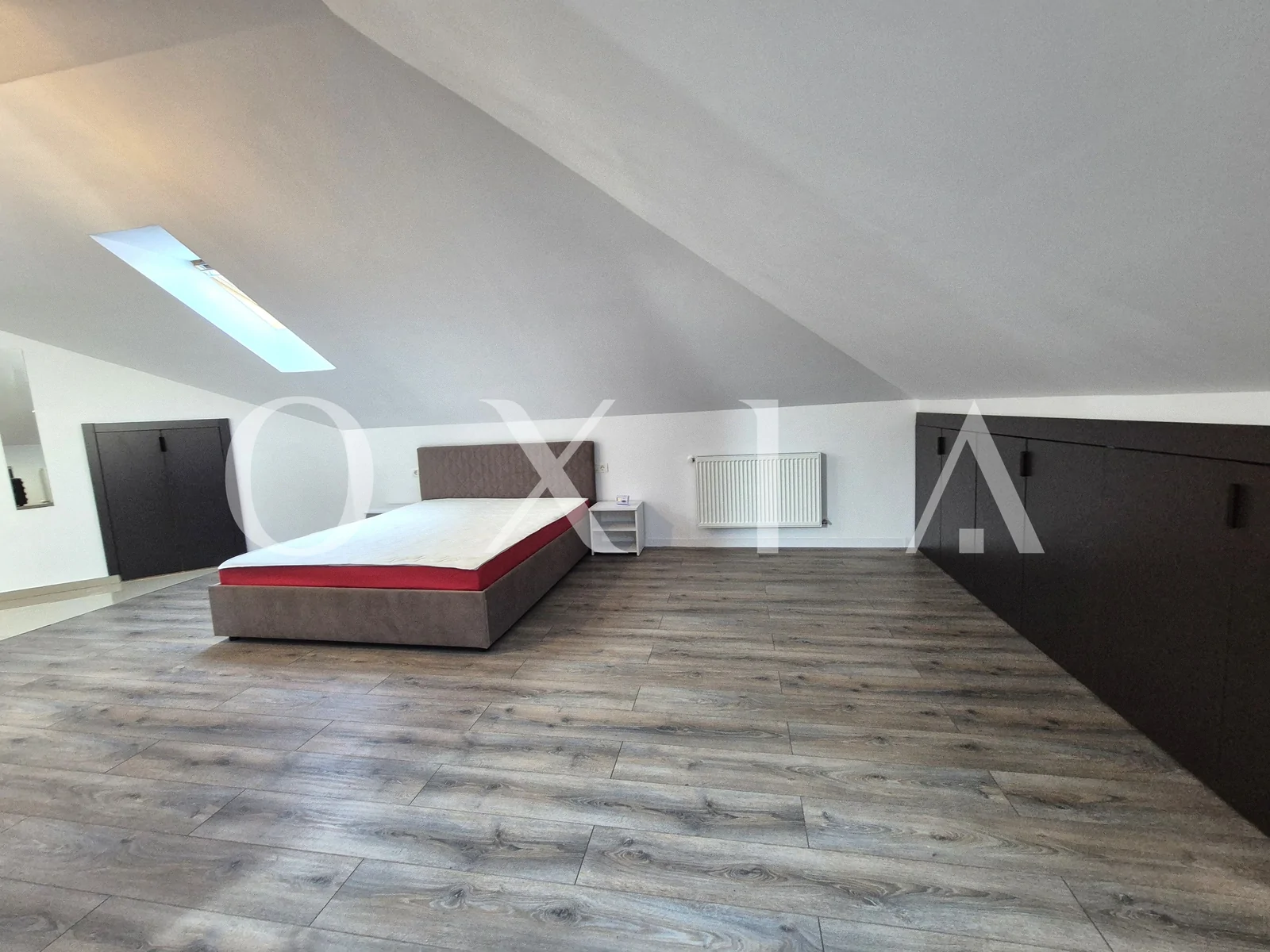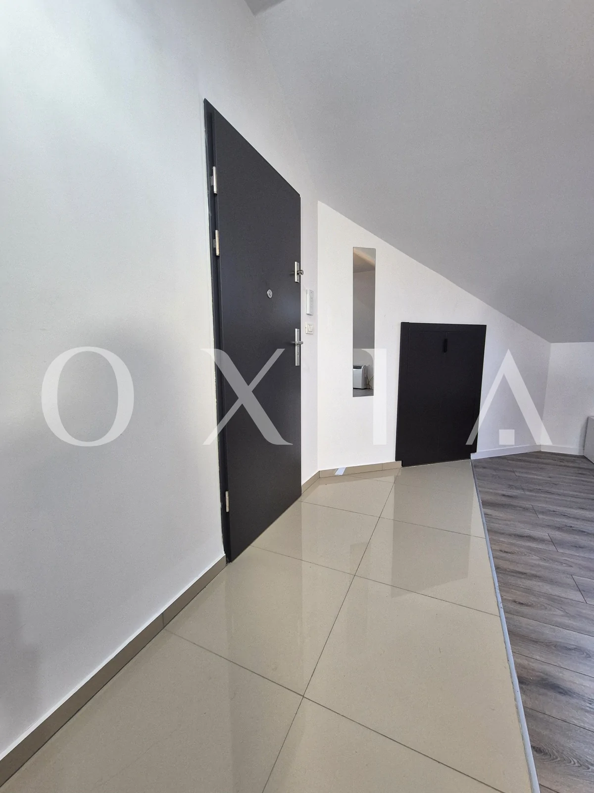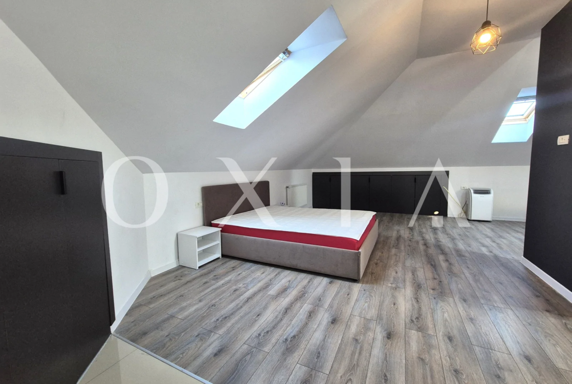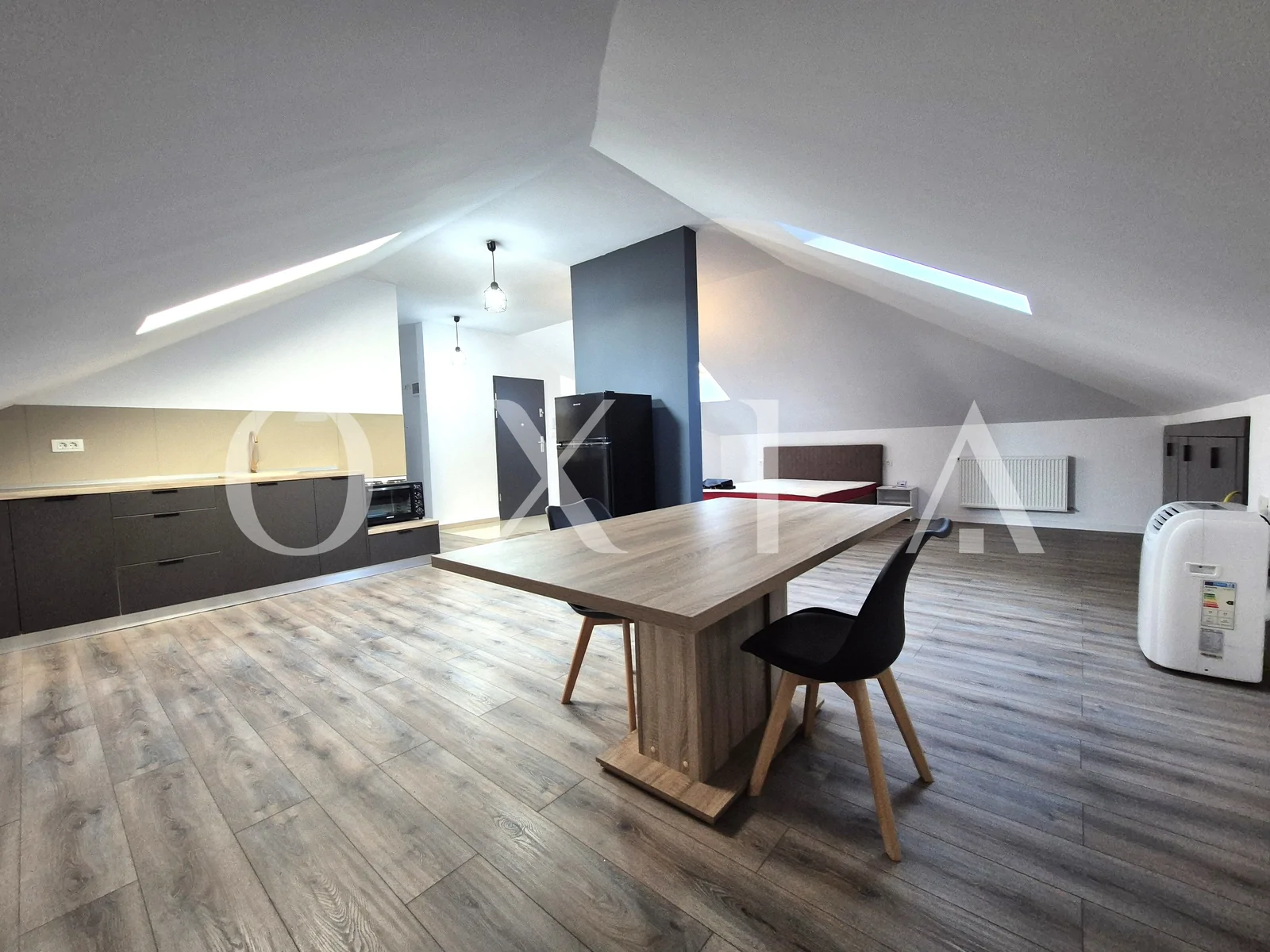 OXIA prezinta spre inchiriere apartament cu 1 camera – tip studio, situat in Giroc aproape de Hotel IQ, la mansarda unui bloc cu 2 etaje, constructie 2022, cu suprafata de 45 mp, compartimentat astfel:
