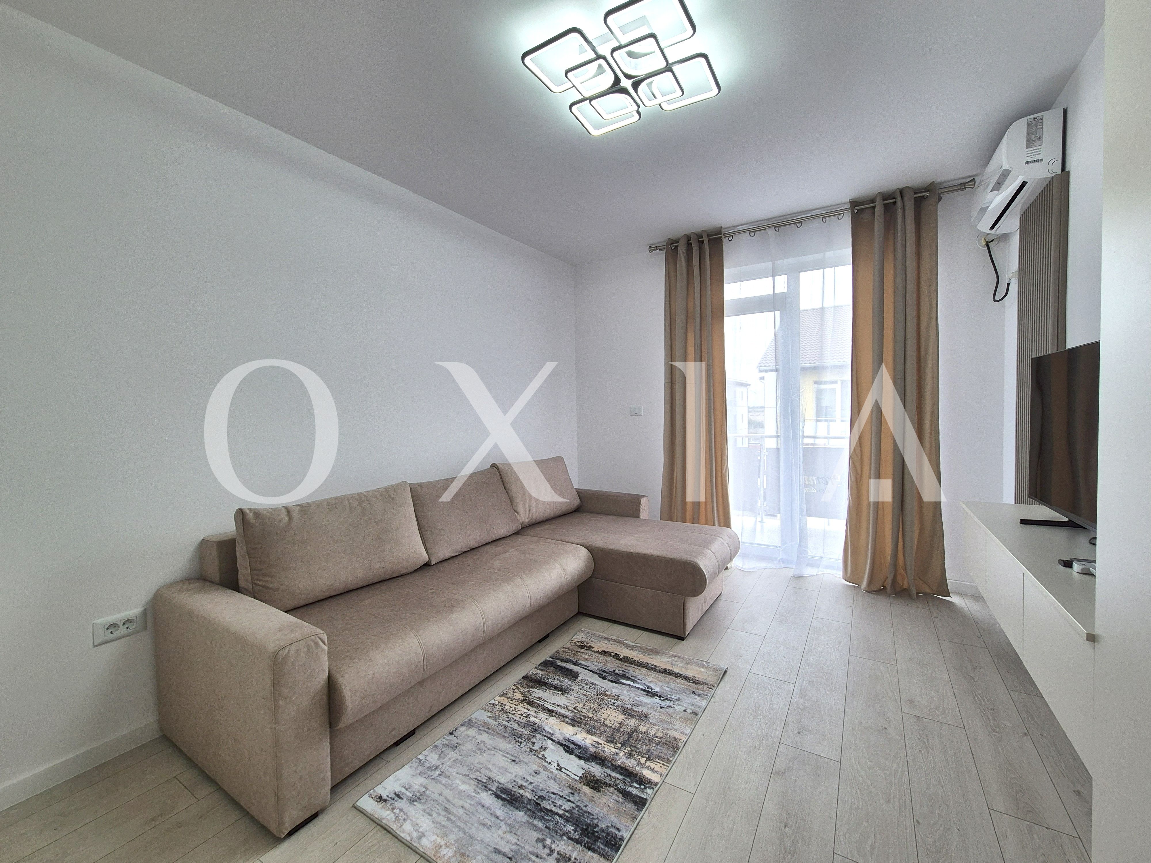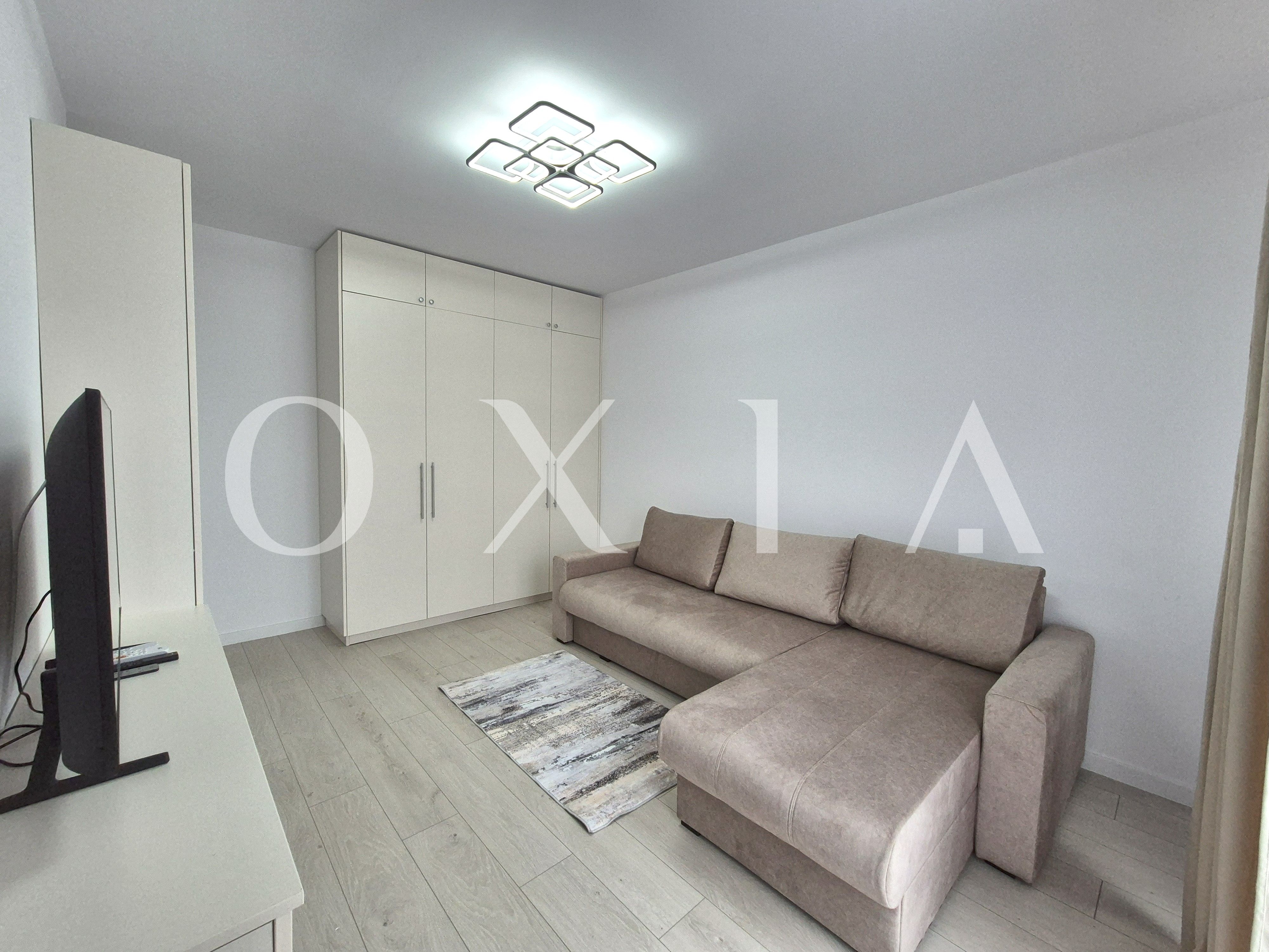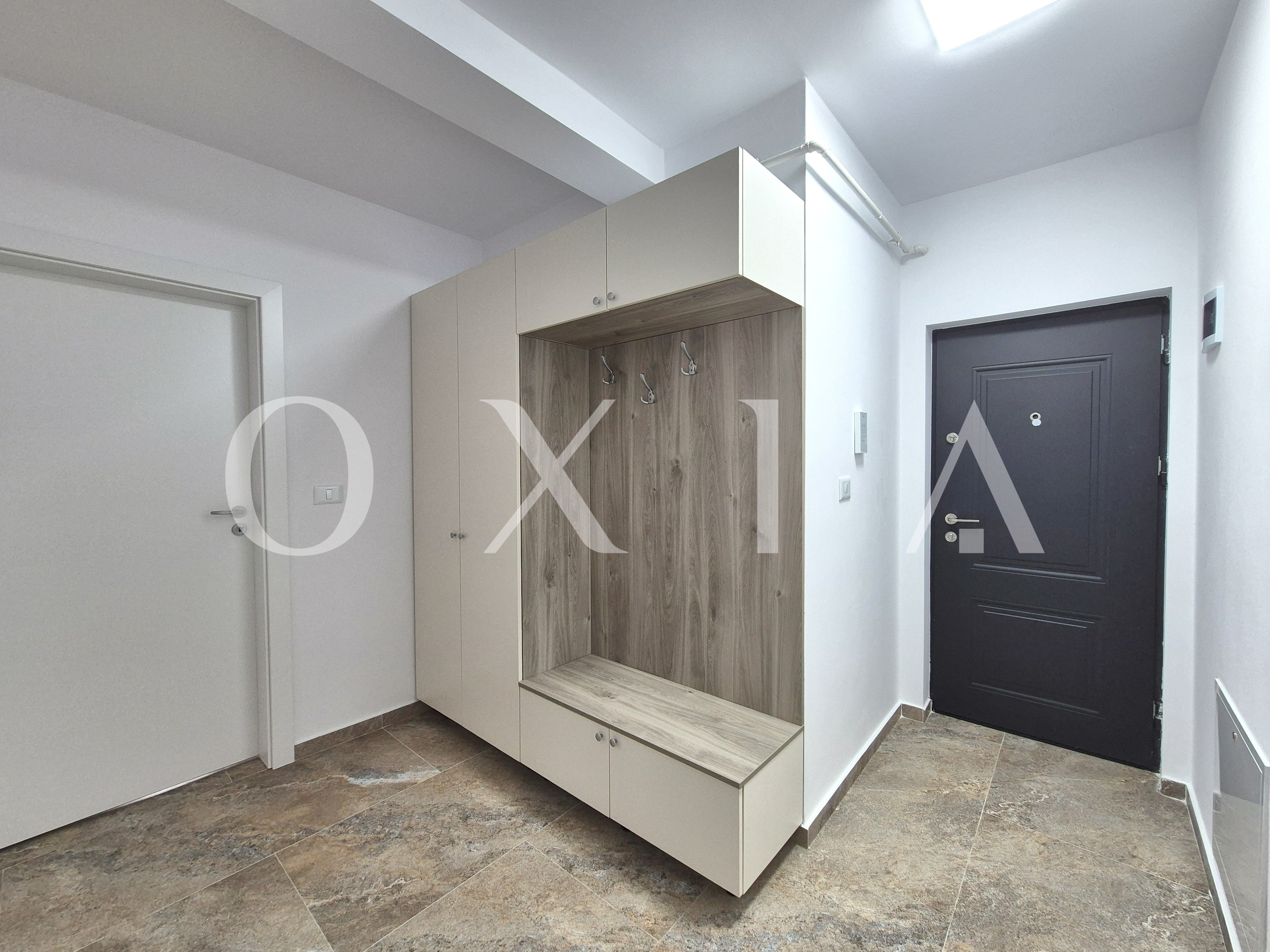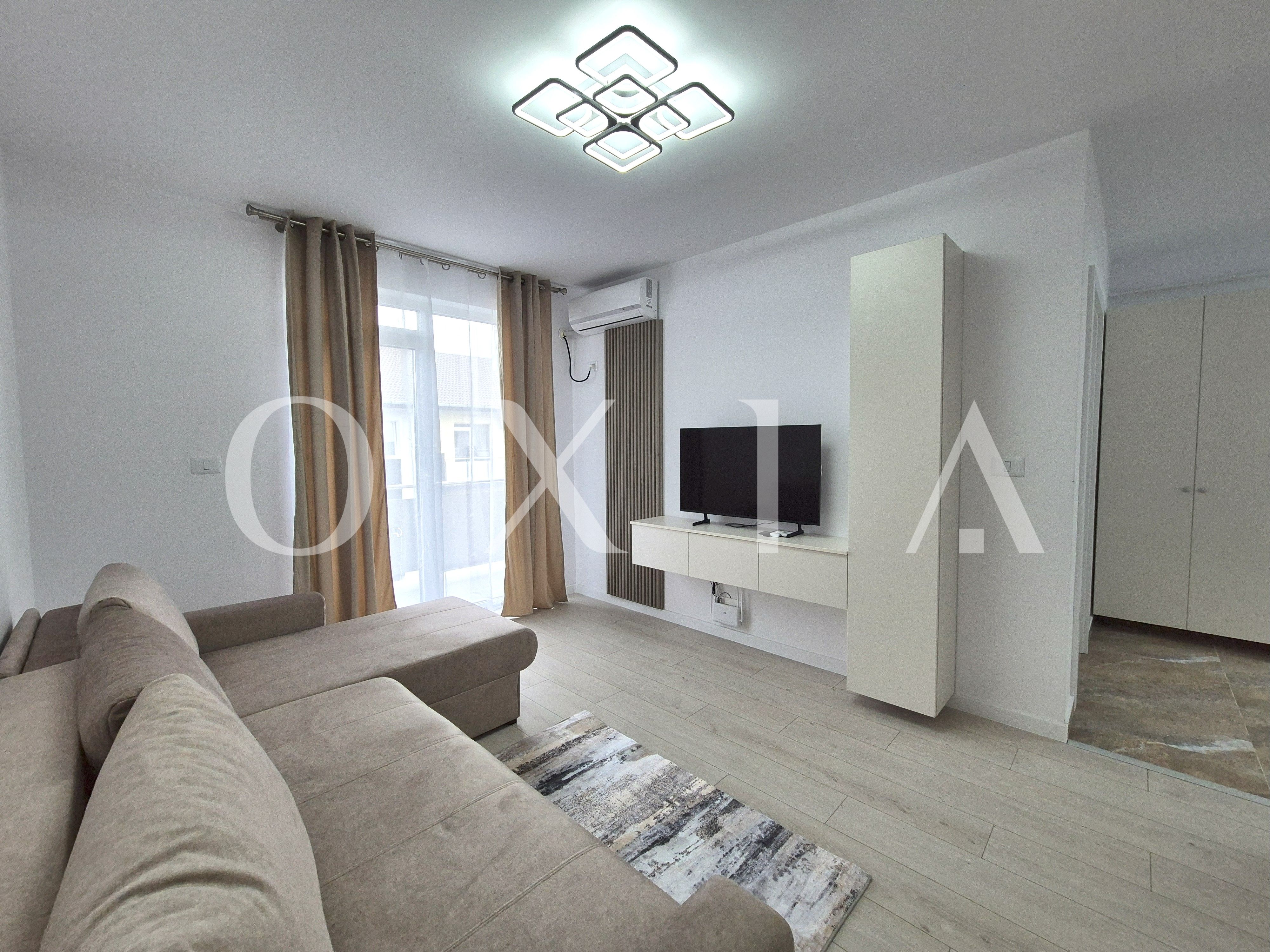 OXIA va ofera spre inchiriere un apartament modern, aflat la prima inchiriere, situat intr-o zona linistita si bine conectata din Giroc, pe strada Ciresului, cu suprafata utila de 35 MP + balcon, compartimentat asfel: