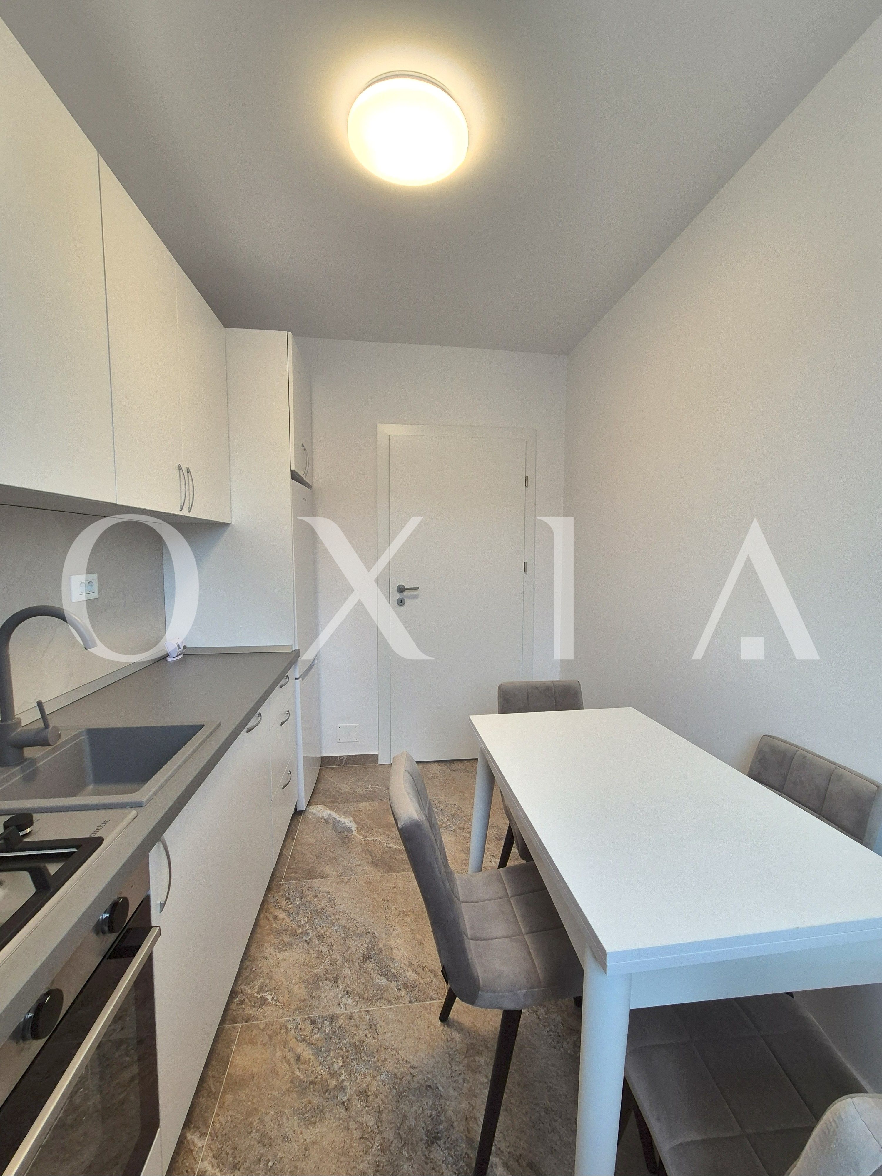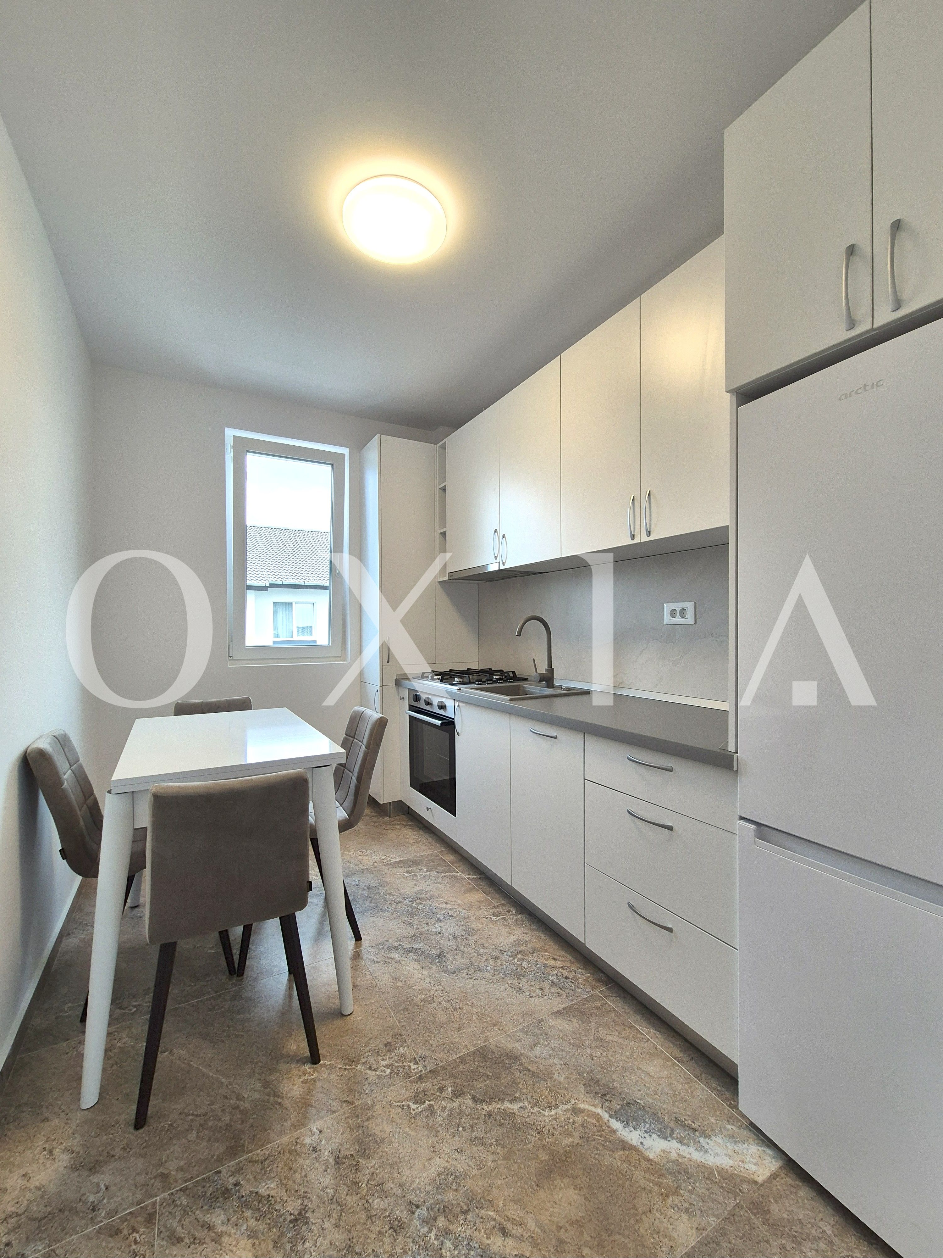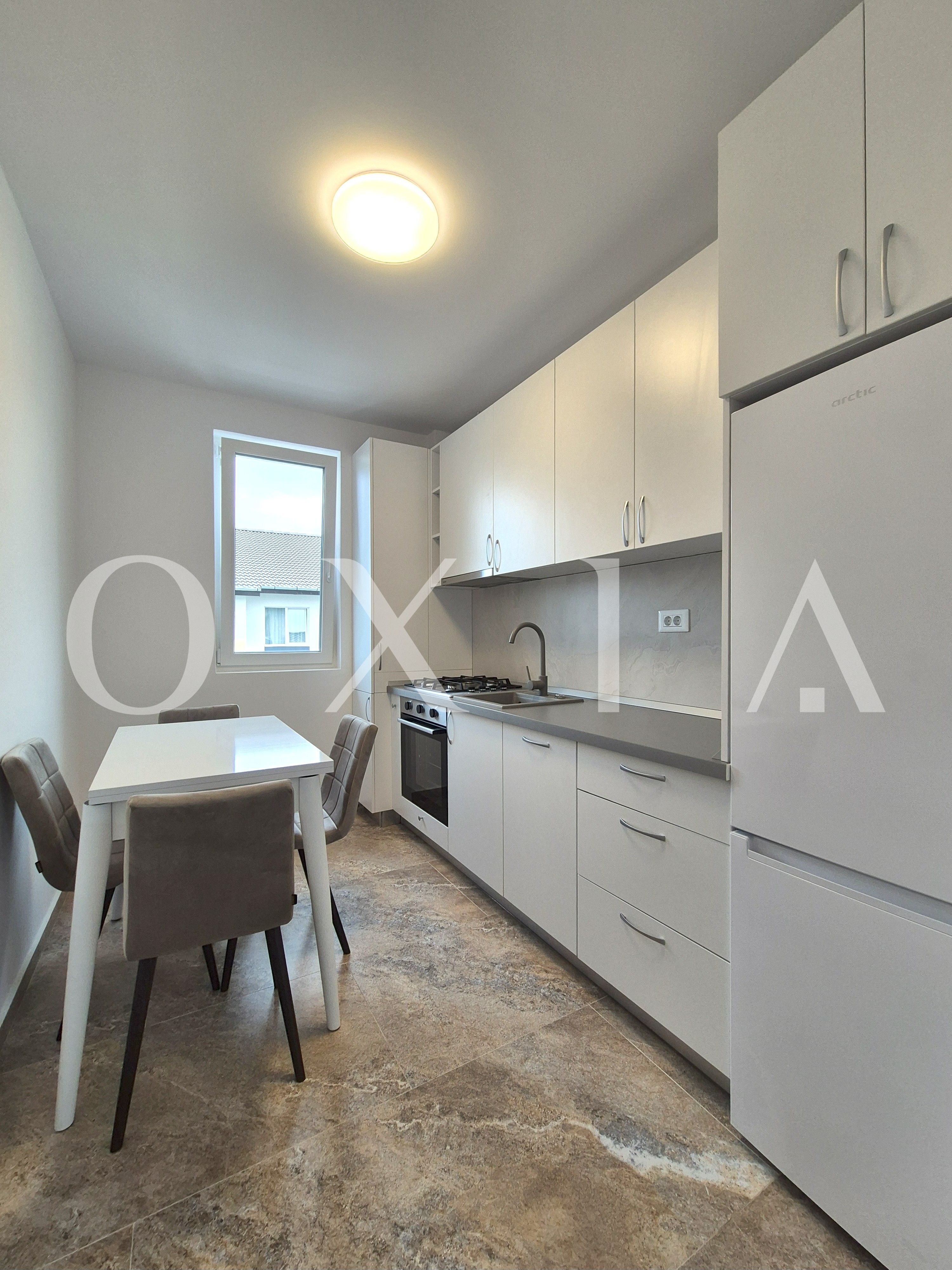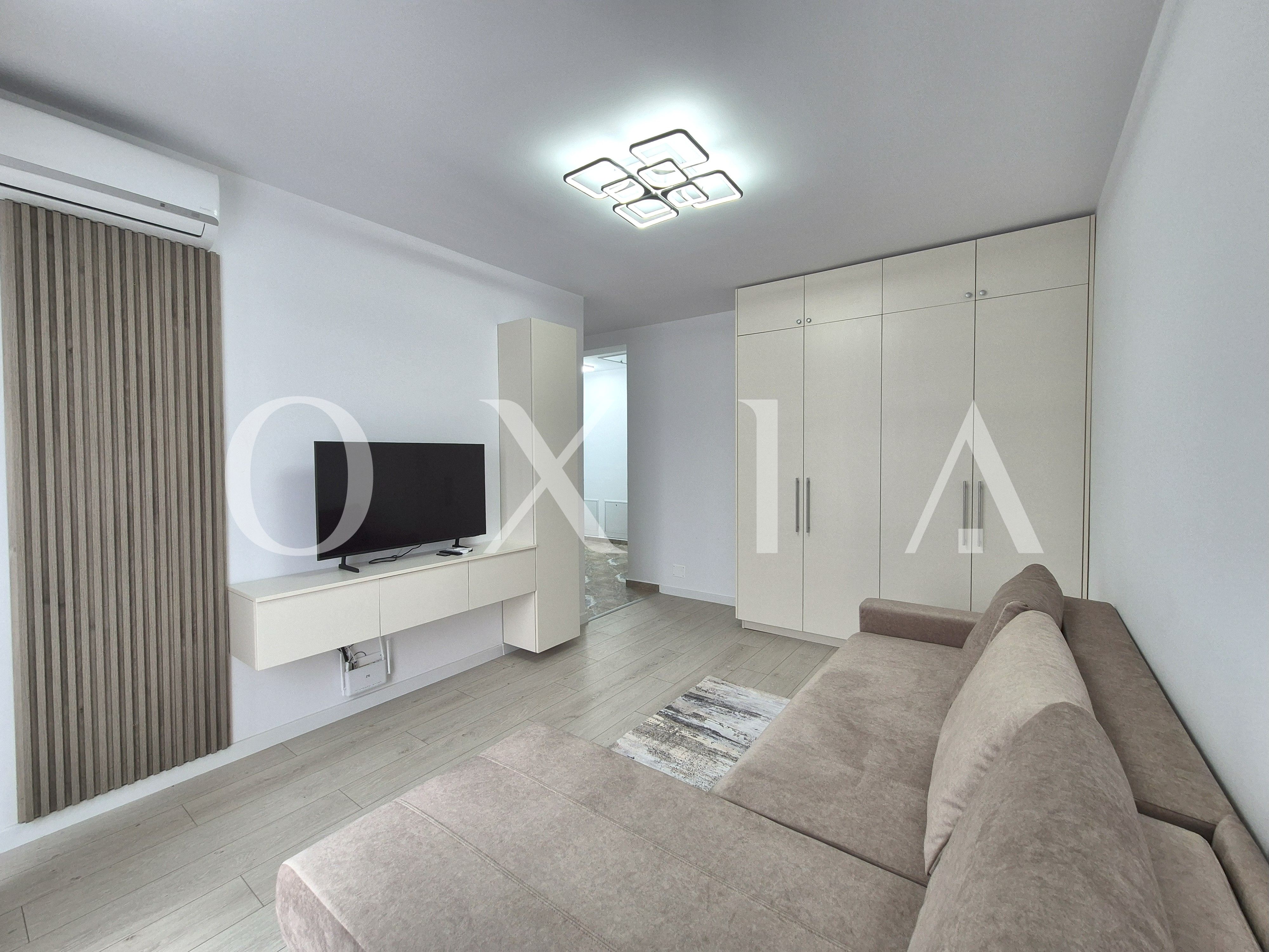 OXIA va ofera spre inchiriere un apartament modern, aflat la prima inchiriere, situat intr-o zona linistita si bine conectata din Giroc, pe strada Ciresului, cu suprafata utila de 35 MP + balcon, compartimentat asfel: