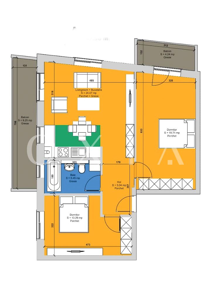 OXIA prezinta spre vanzare in exclusivitate apartament cu 3 camere in Giroc, in spatele Unitatii Militare, Bulevardul Aviatiei, situat in imobil P+4E, la etajul 1 ( imobil cu lift ), cu suprafata de 68 MP utili + 14 MP terase, compartimentat astfel: